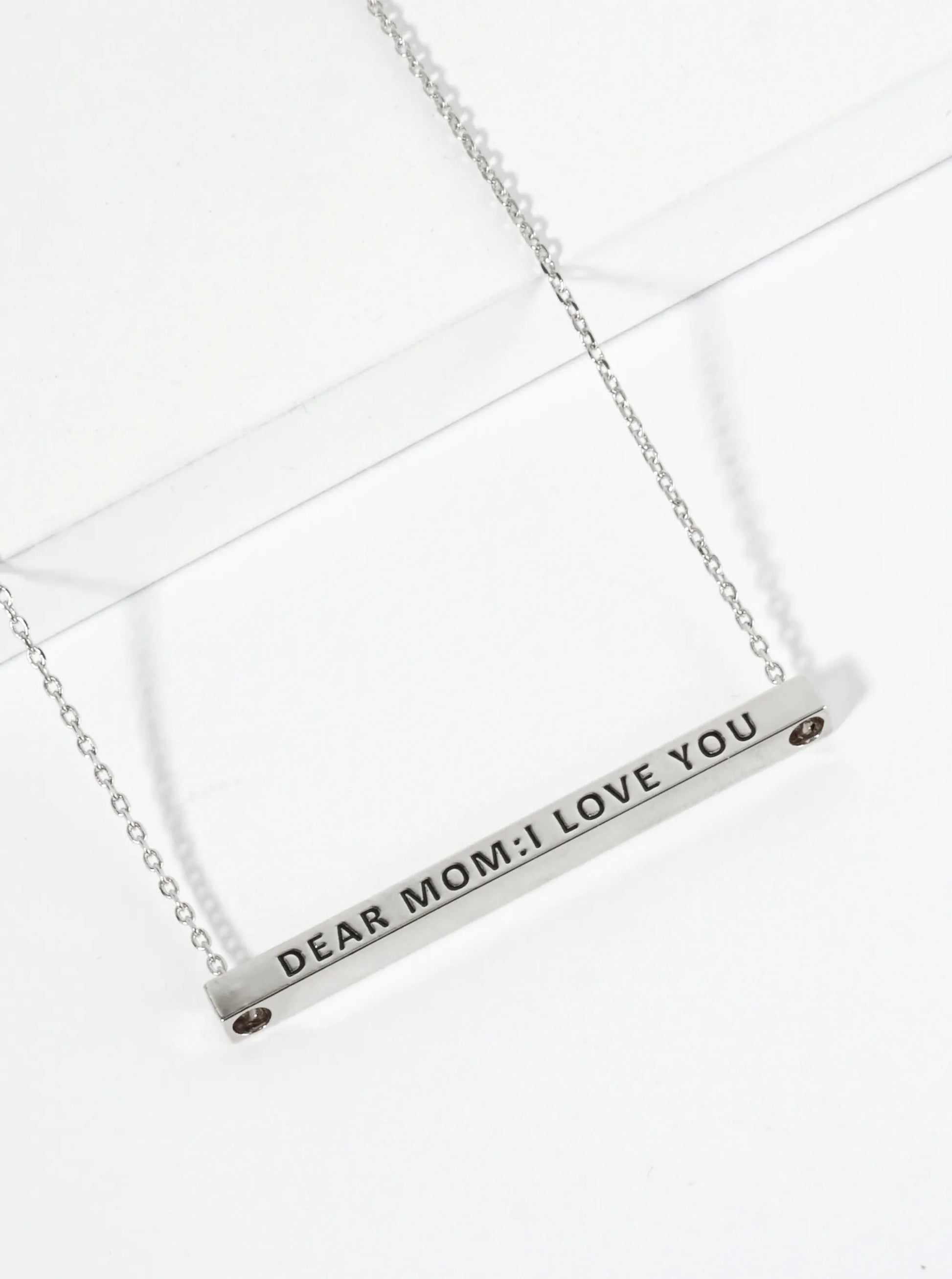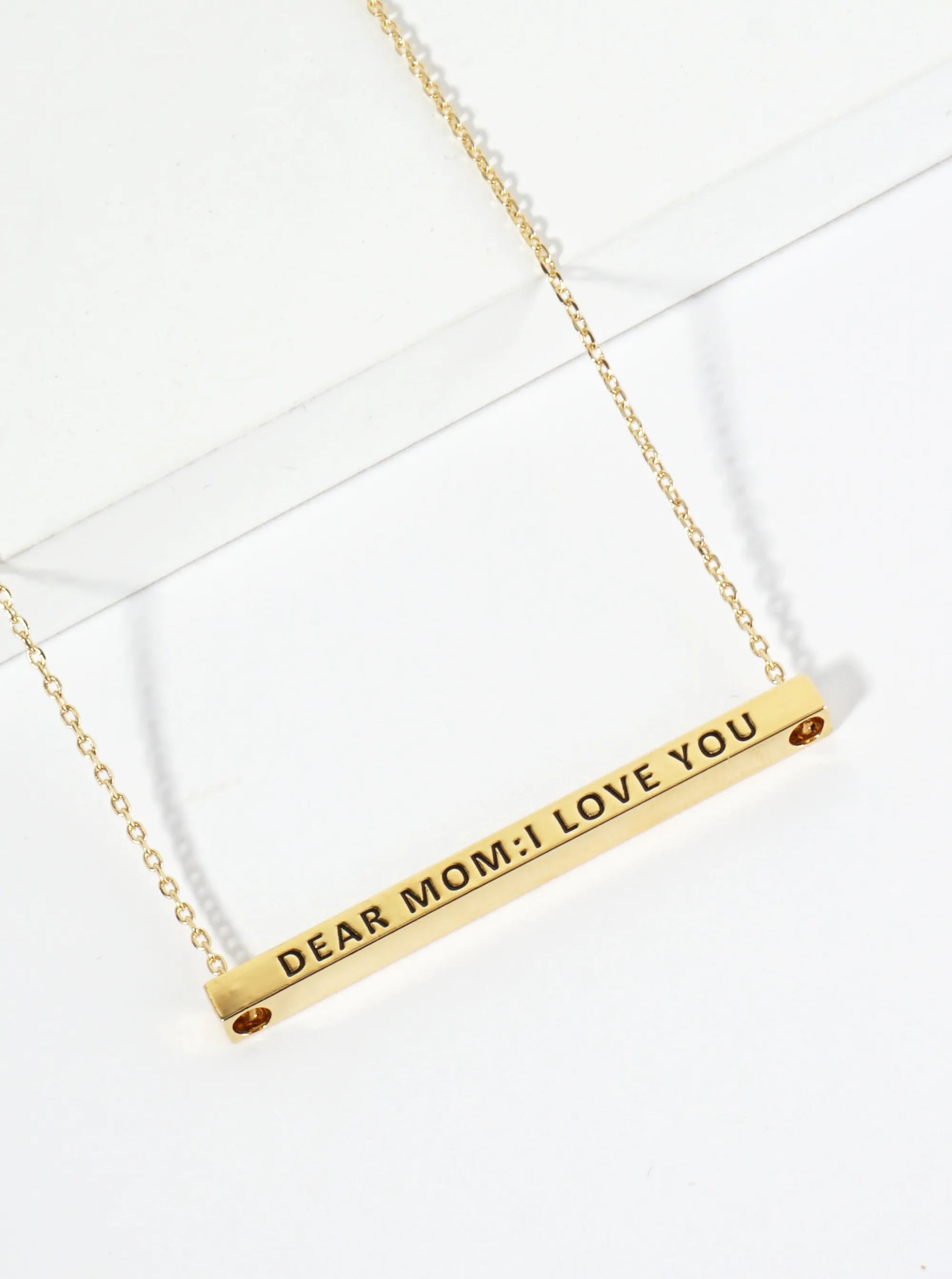 Dear Mom I Love You Engraved 18K Gold Dipped Horizontal Brass Bar Pendant Inspirational Necklace