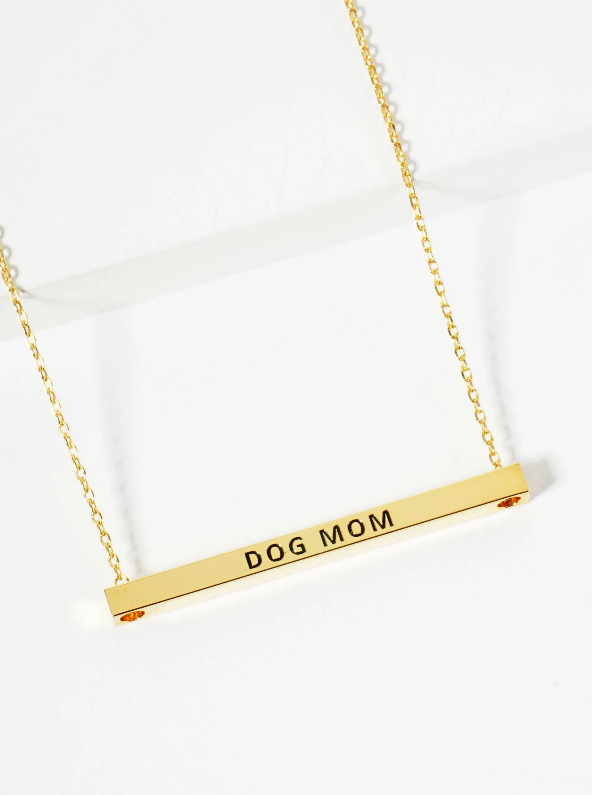 Dog Mom Engraved 18K Gold Dipped Horizontal Brass Bar Pendant Inspirational Necklace