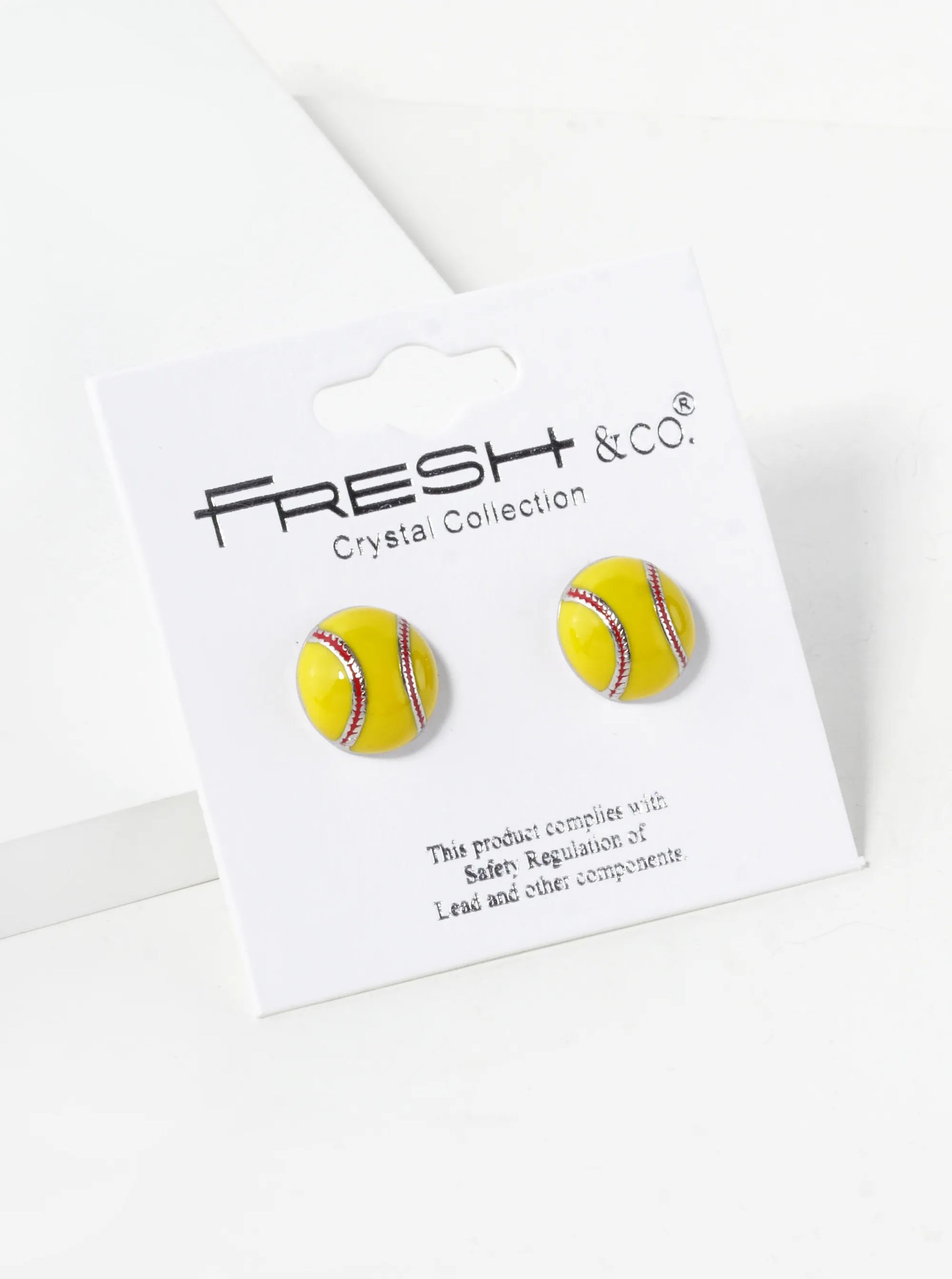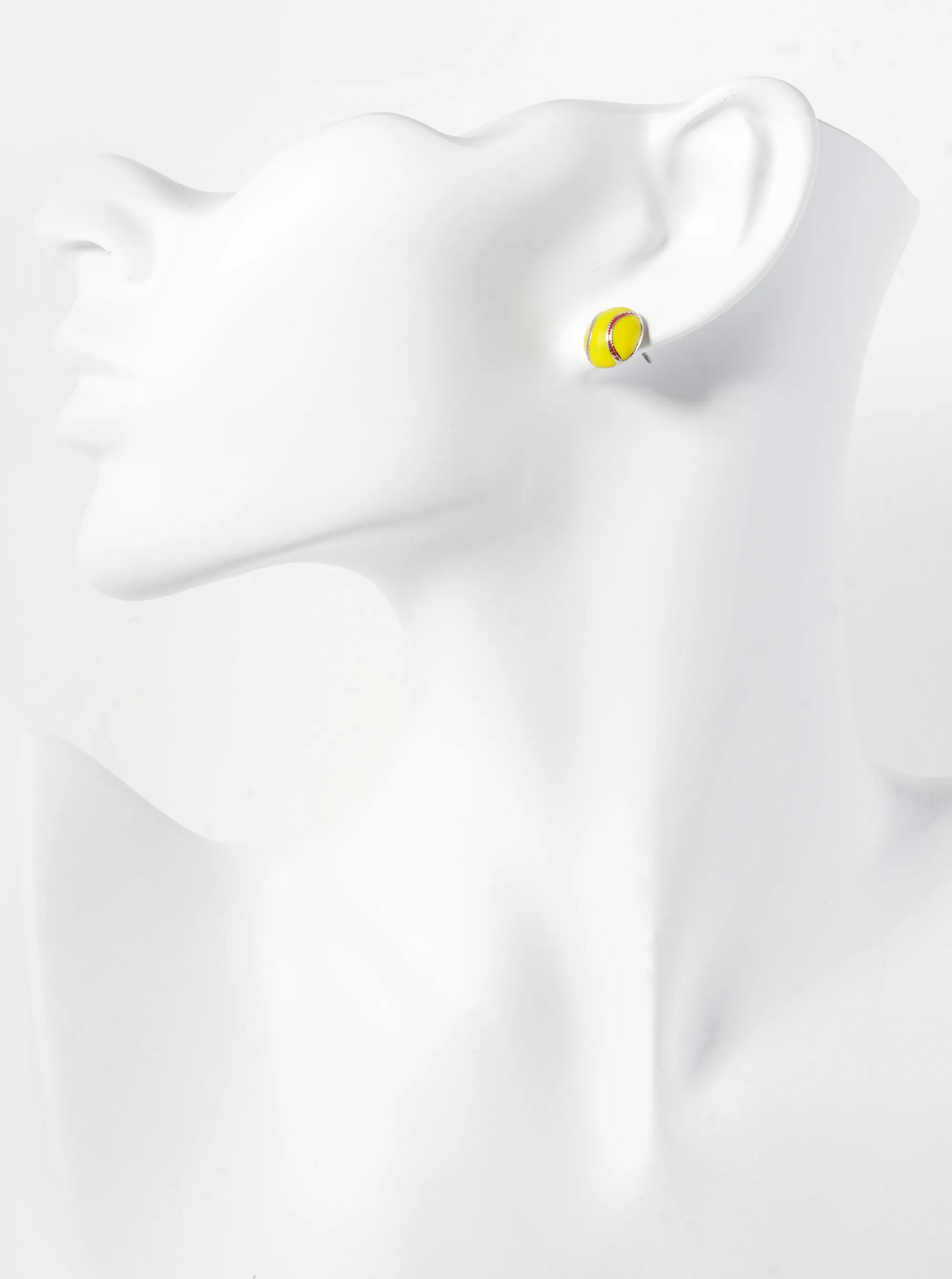 Enamel Filled 10mm Half Circle Baseball Stud Earrings