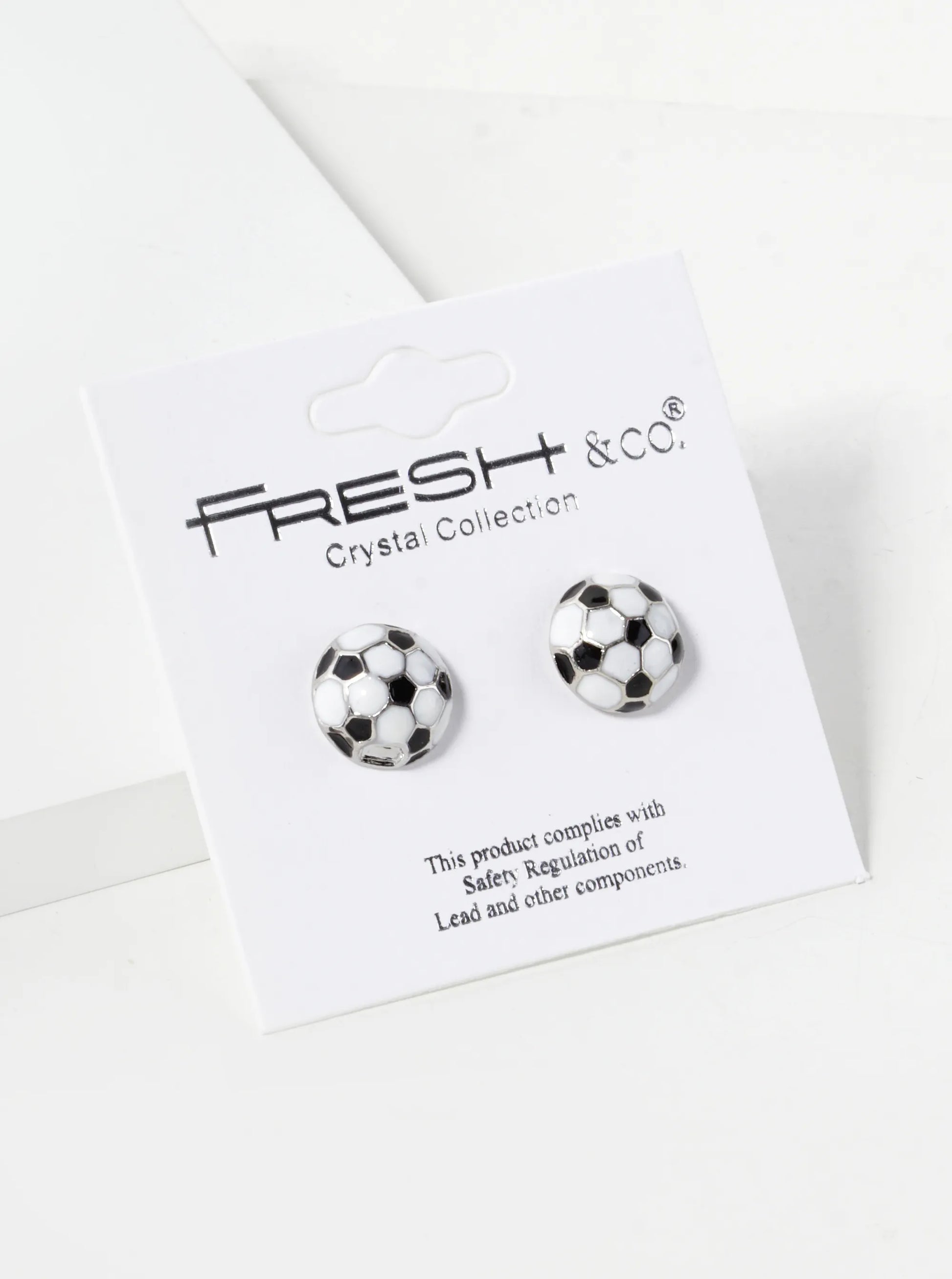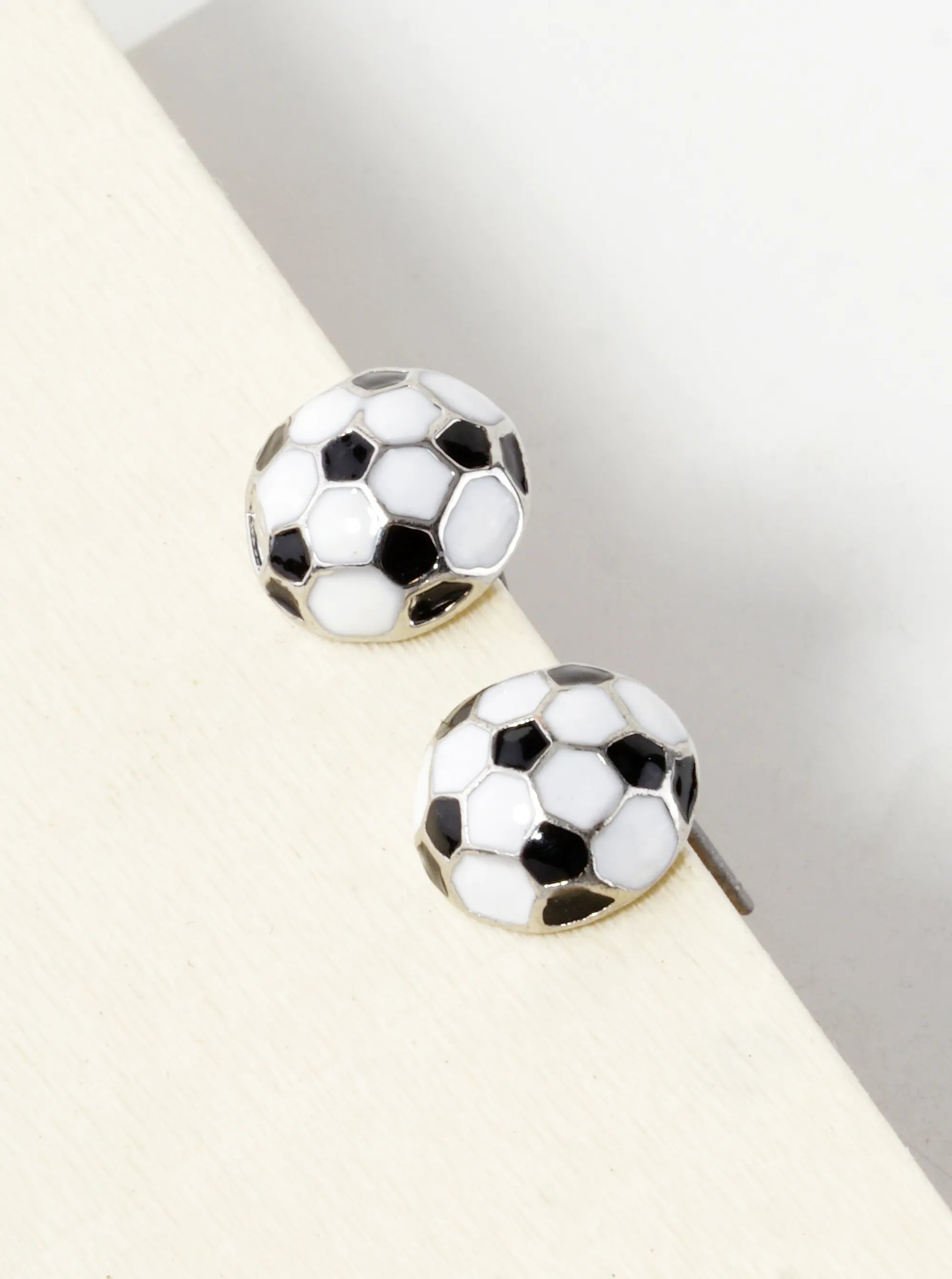 Enamel Filled 10mm Half Circle Soccer Ball Stud Earrings