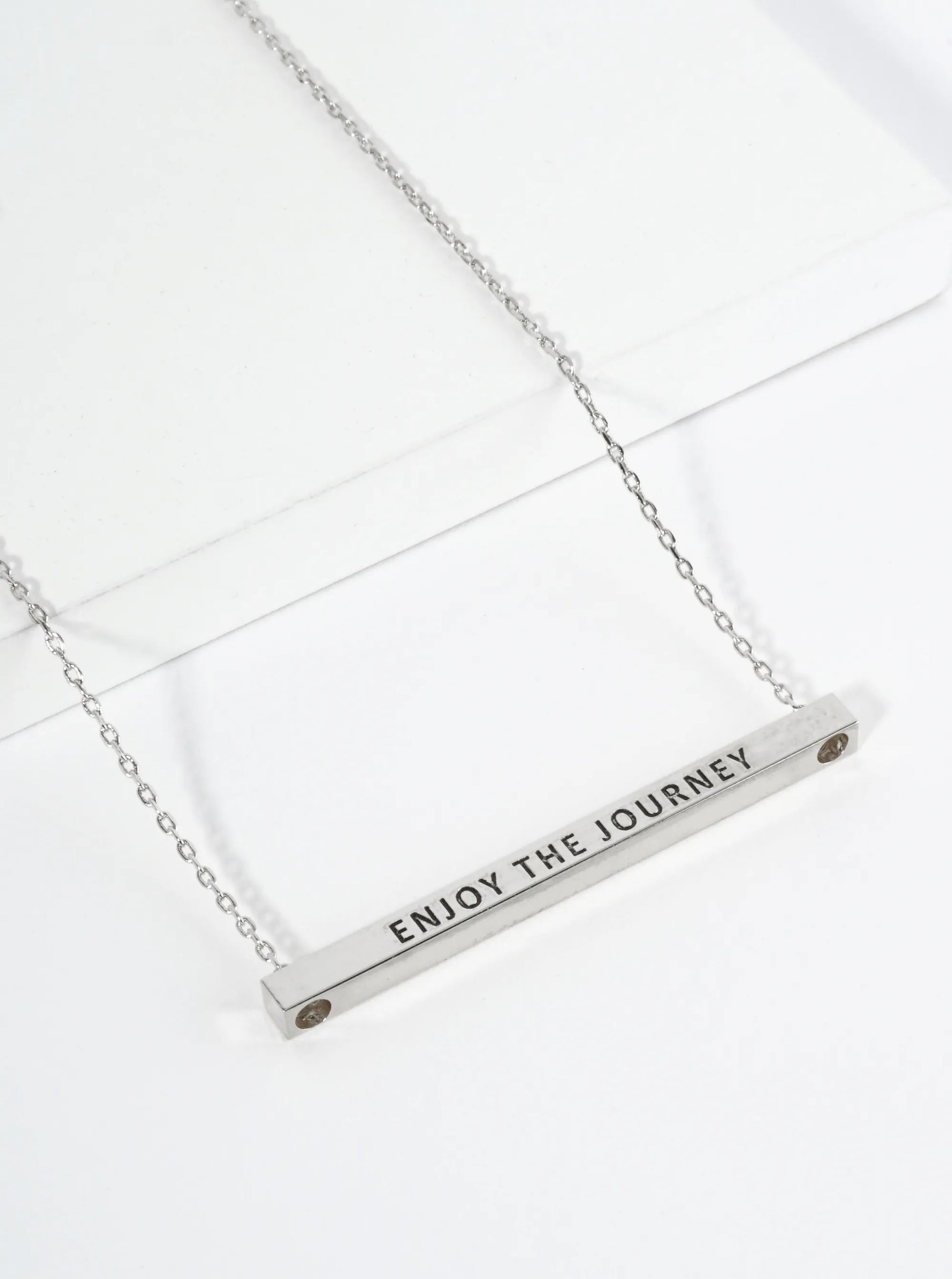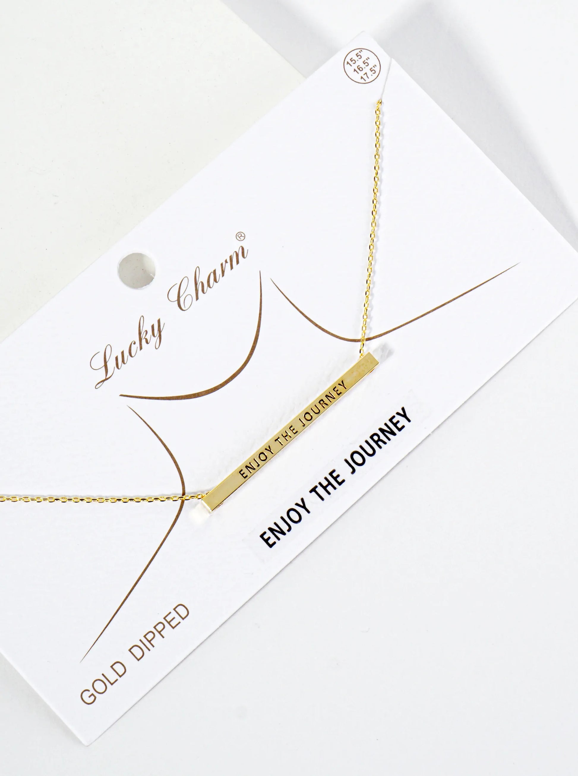 Enjoy The Journey Engraved 18K Gold Dipped Horizontal Brass Bar Pendant Inspirational Necklace
