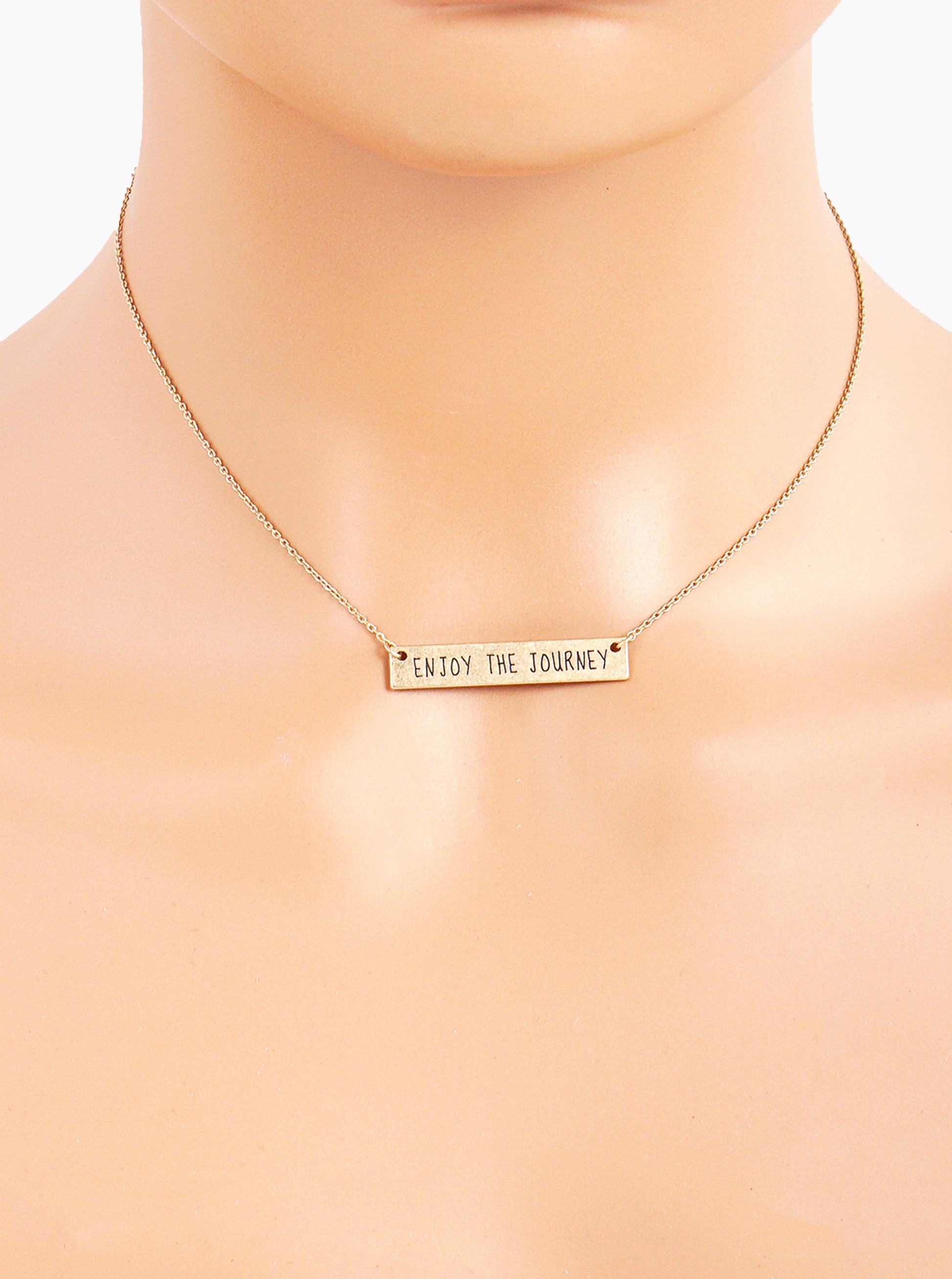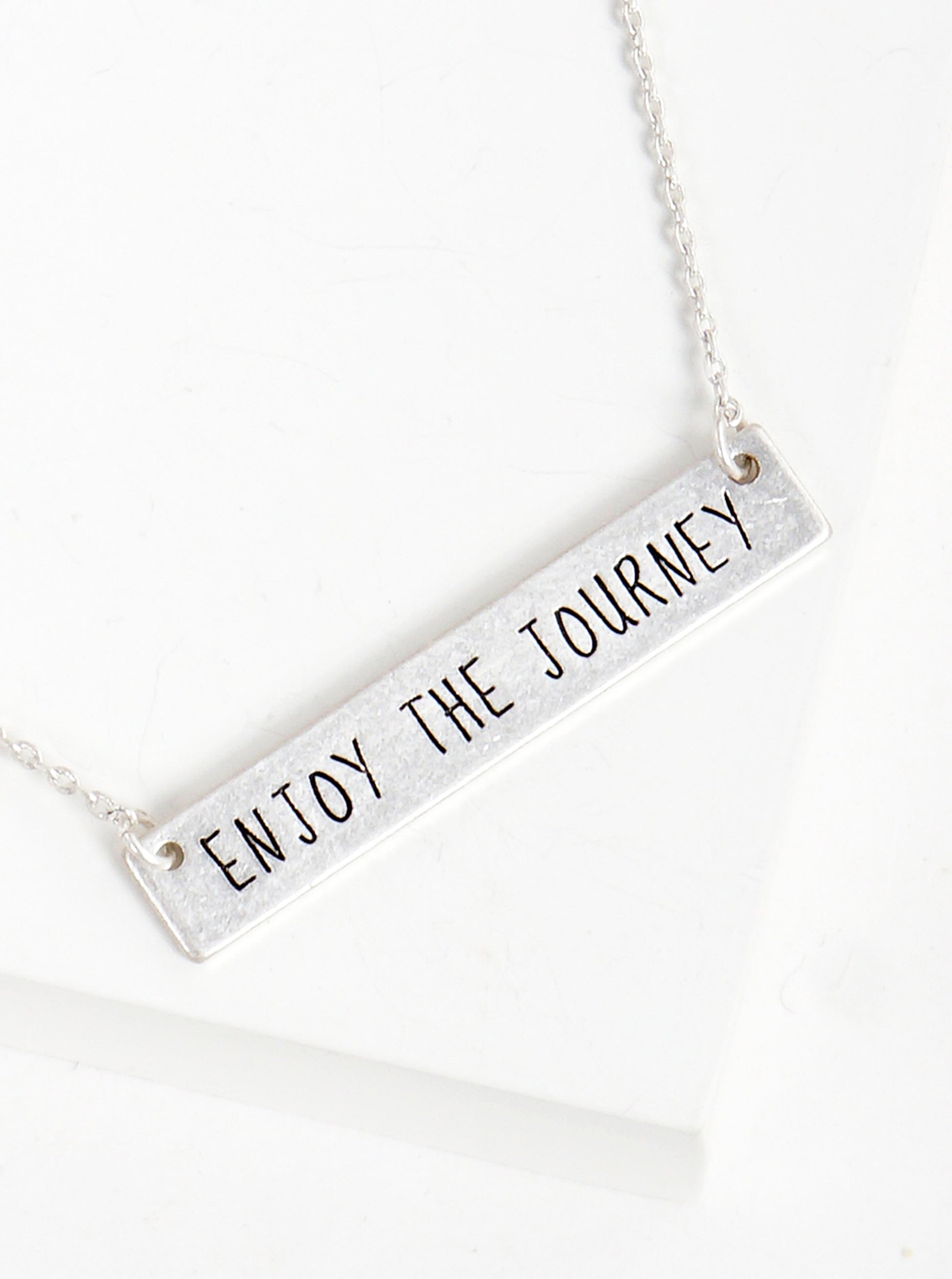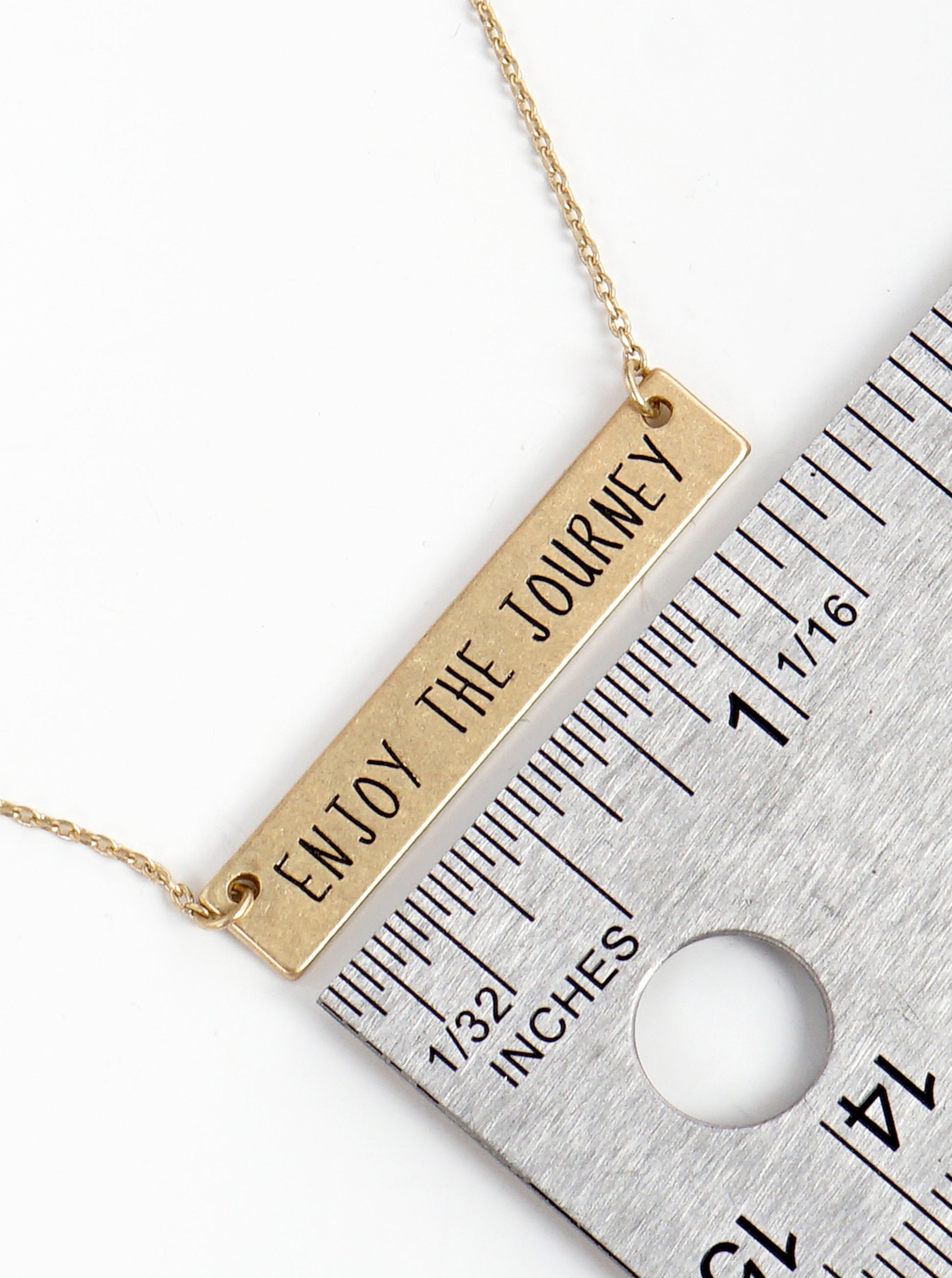 Enjoy The Journey Engraved Horizontal Bar Pendant Necklace