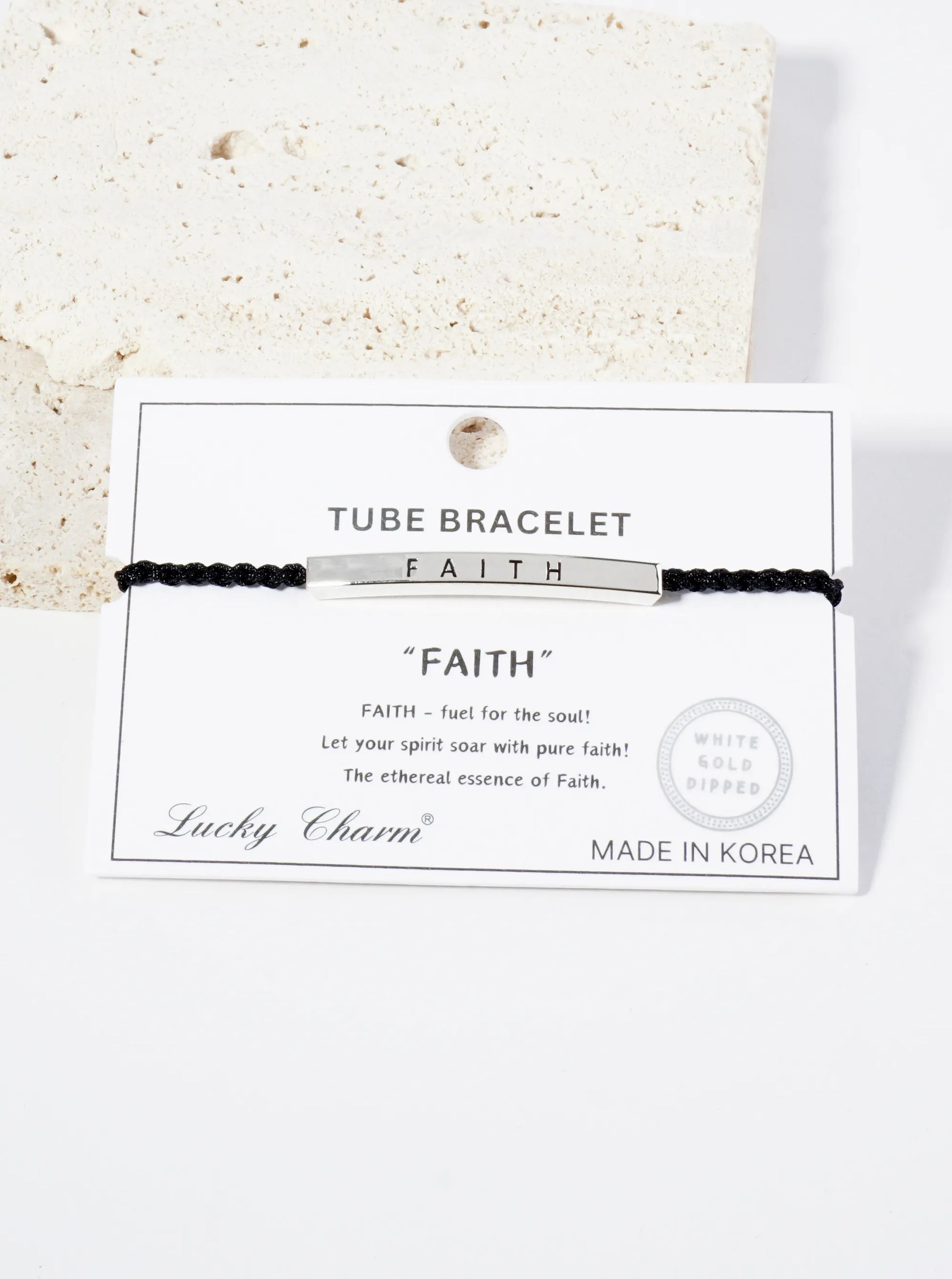 Faith Engraved 18K Gold Dipped Curved Brass Tube Bar Adjustable Pull Tie Bracelet
