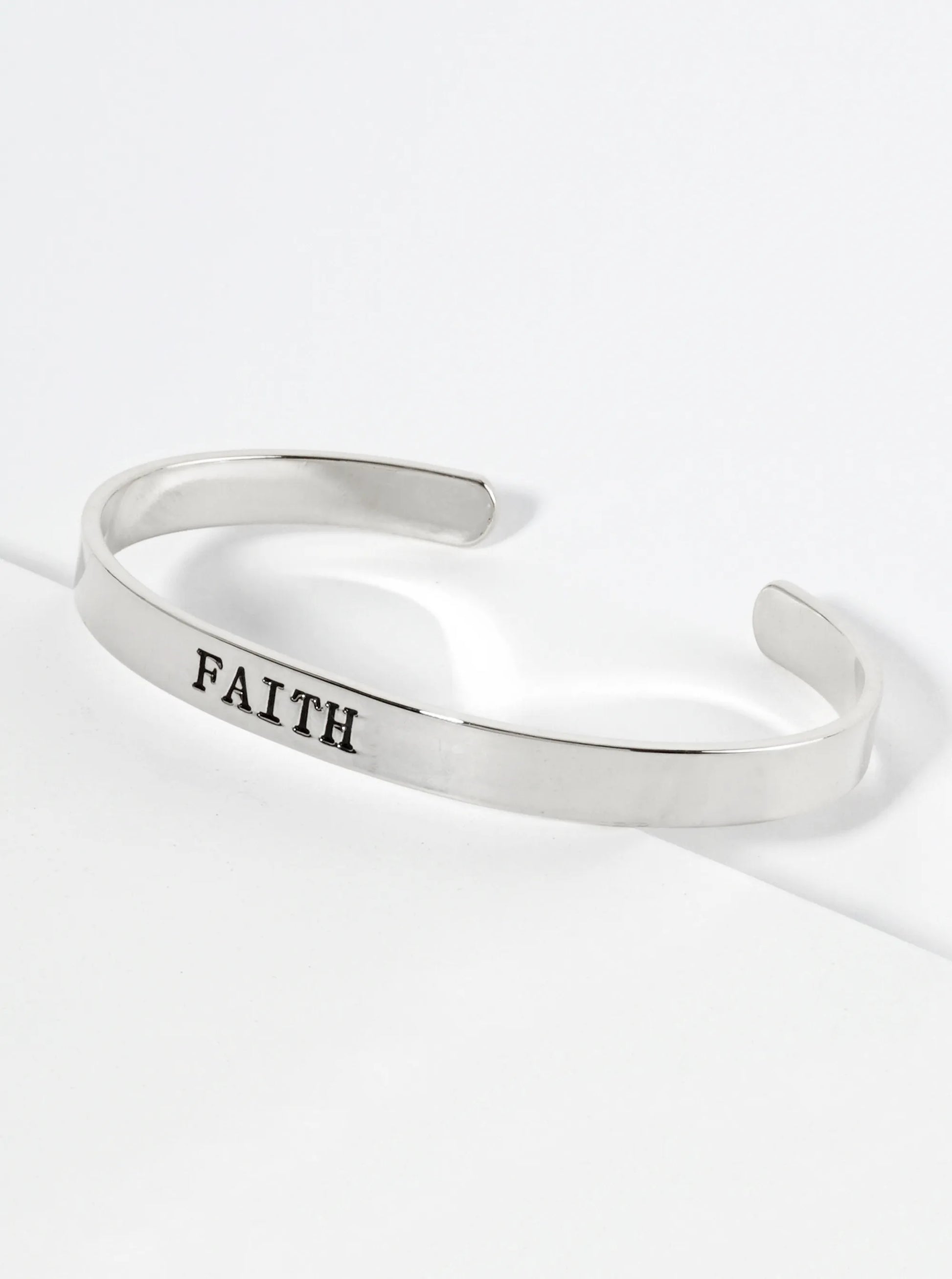 Faith Engraved 18K Gold Dipped Open Cuff Bangle Bracelet