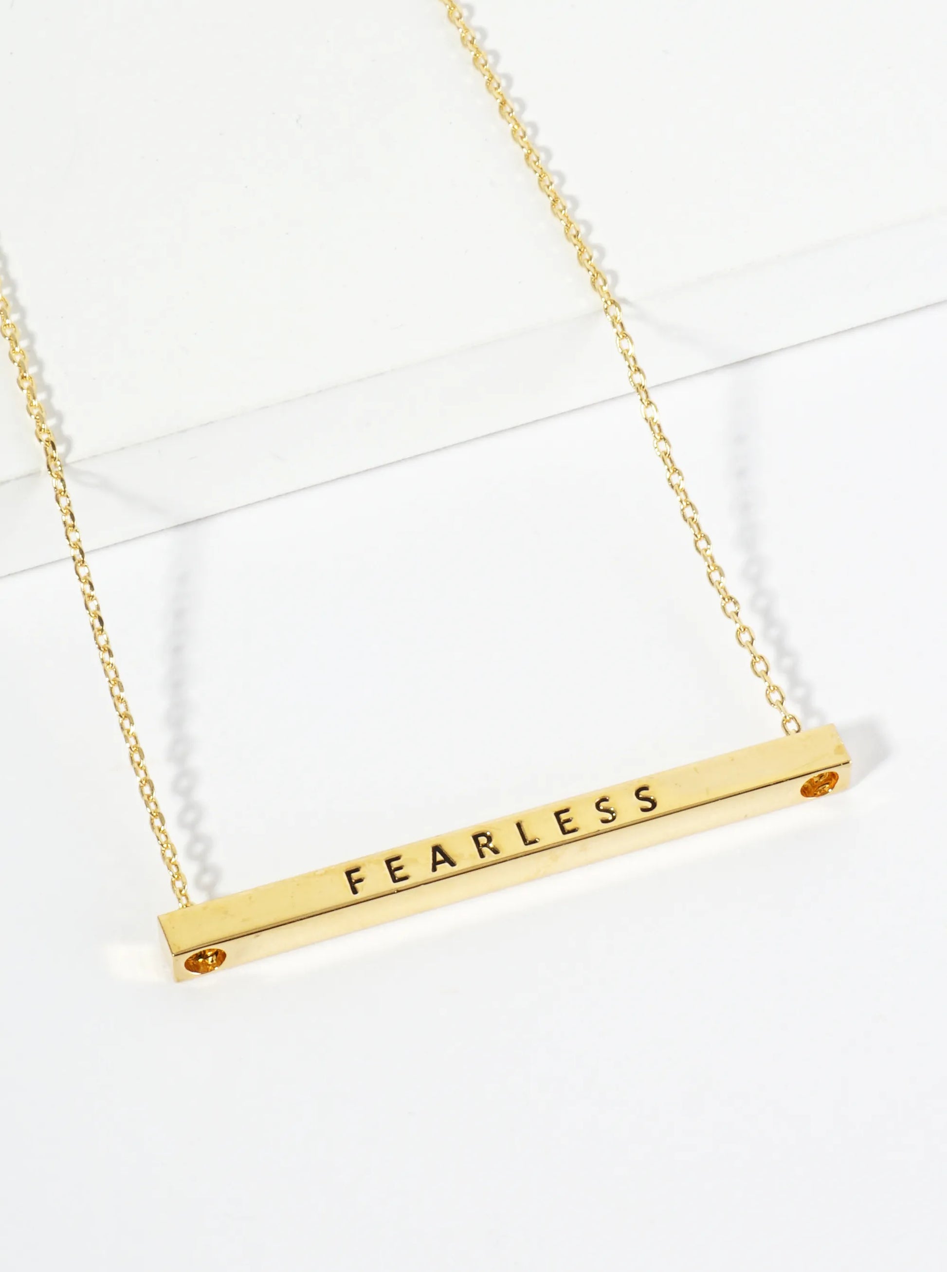 Fearless Engraved 18K Gold Dipped Horizontal Brass Bar Pendant Inspirational Necklace