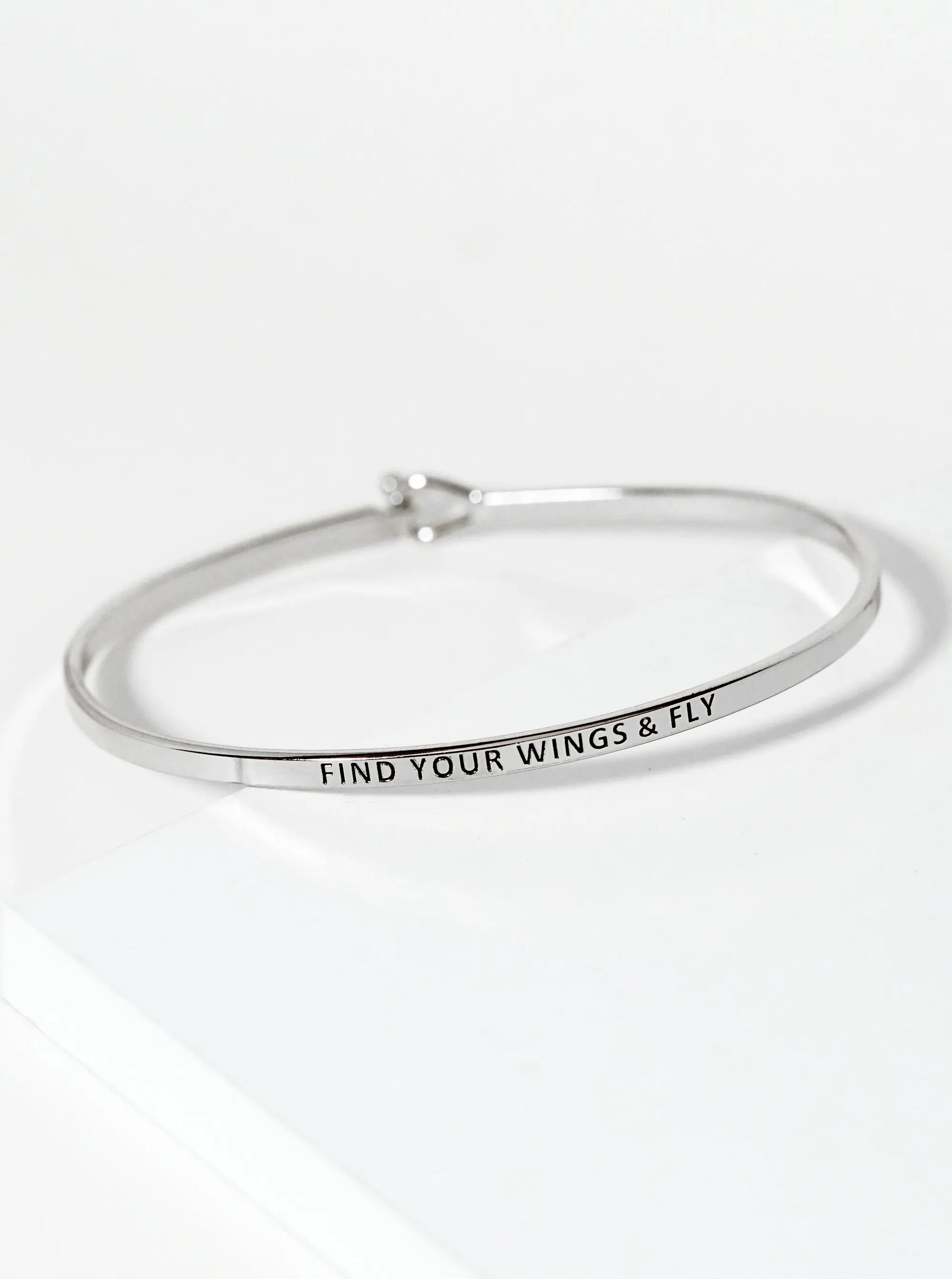 Find Your Wings And Fly Engraved Inspirational Bangle Bracelet