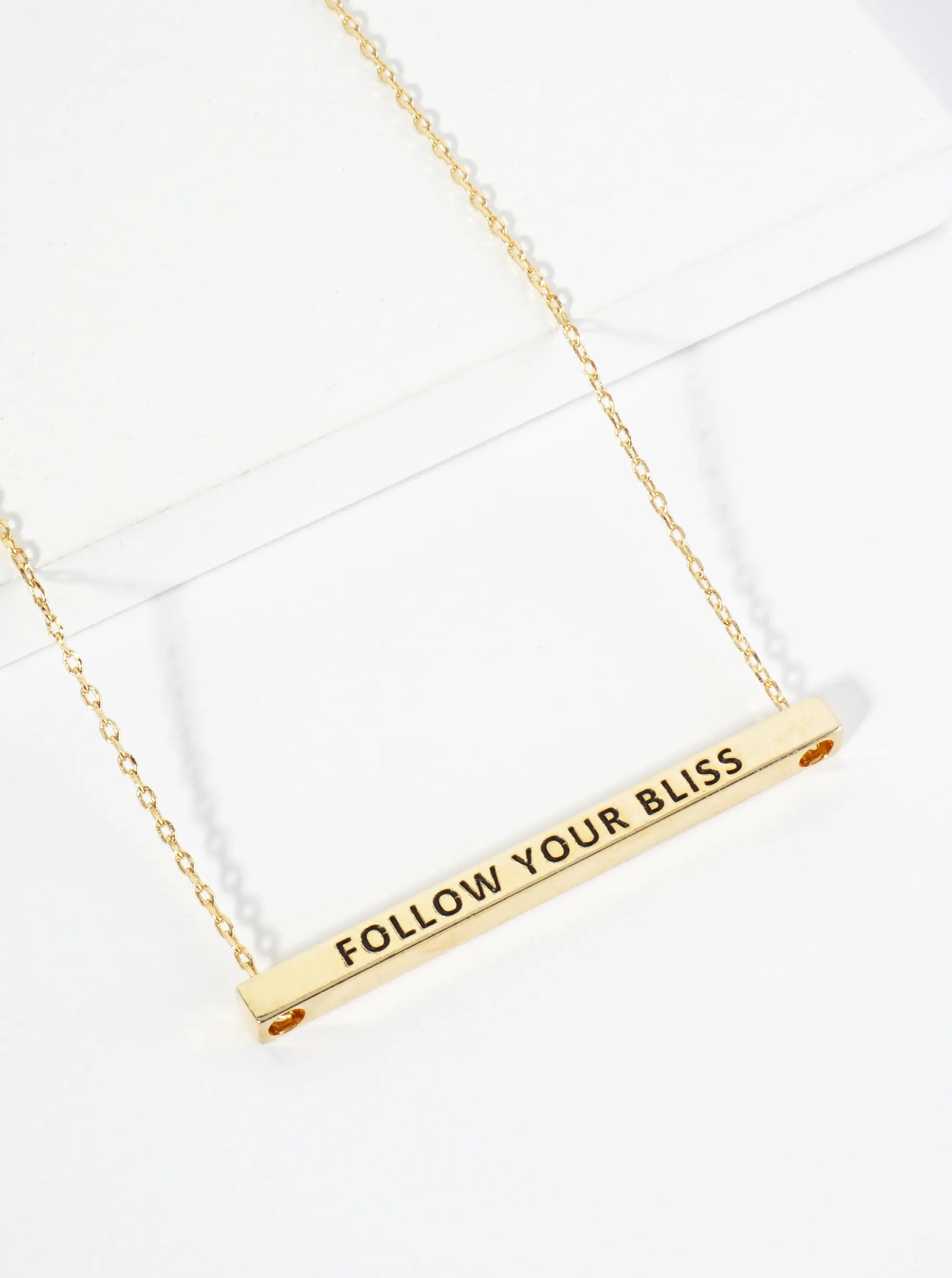 Follow Your Bliss Engraved 18K Gold Dipped Horizontal Brass Bar Pendant Inspirational Necklace