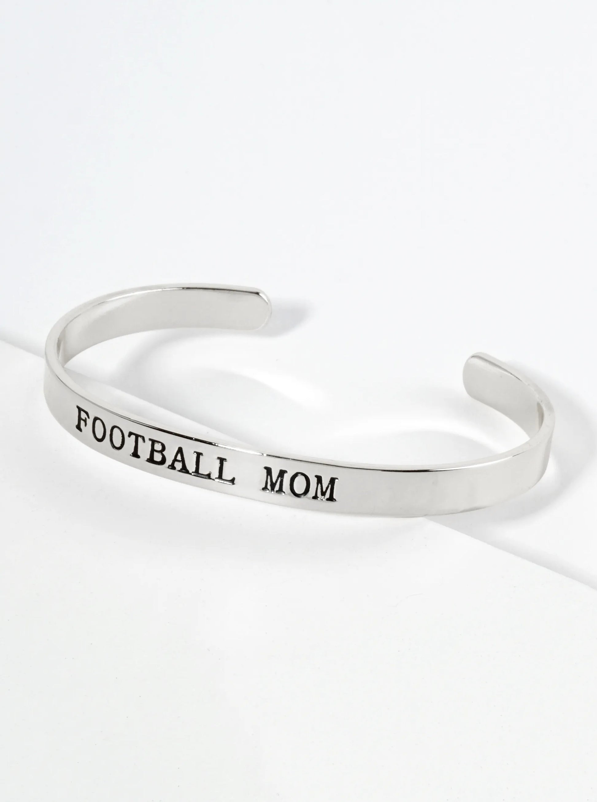 Football Mom Engraved 18K Gold Dipped Open Cuff Bangle Bracelet