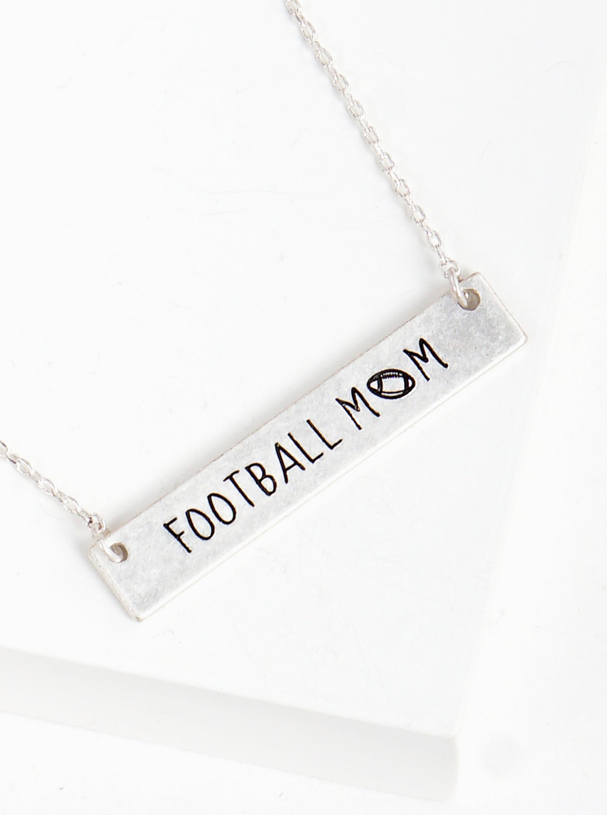 Football Mom Engraved Horizontal Bar Pendant Necklace