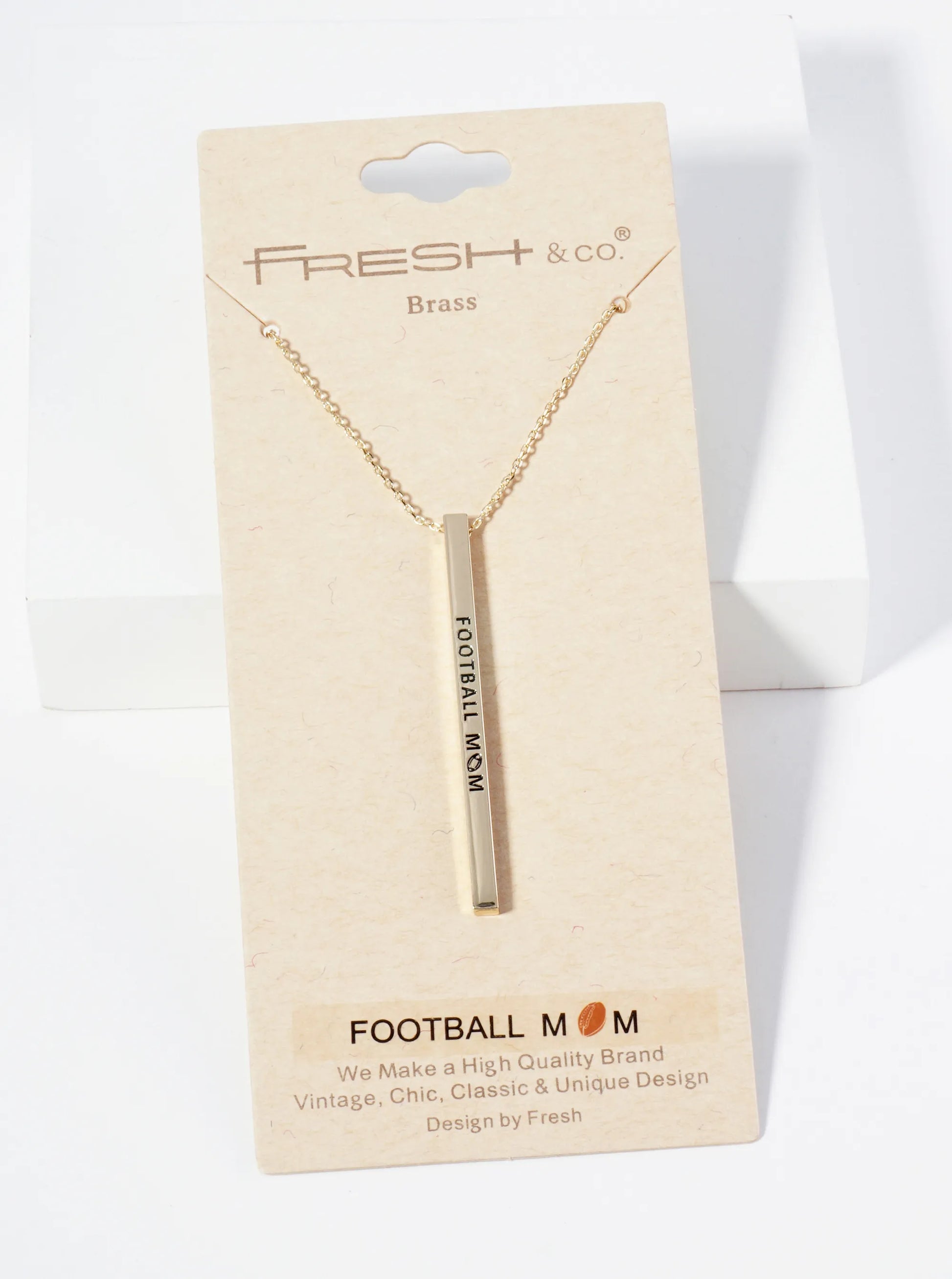 Football Mom Engraved Vertical Bar Pendant Inspirational Necklace