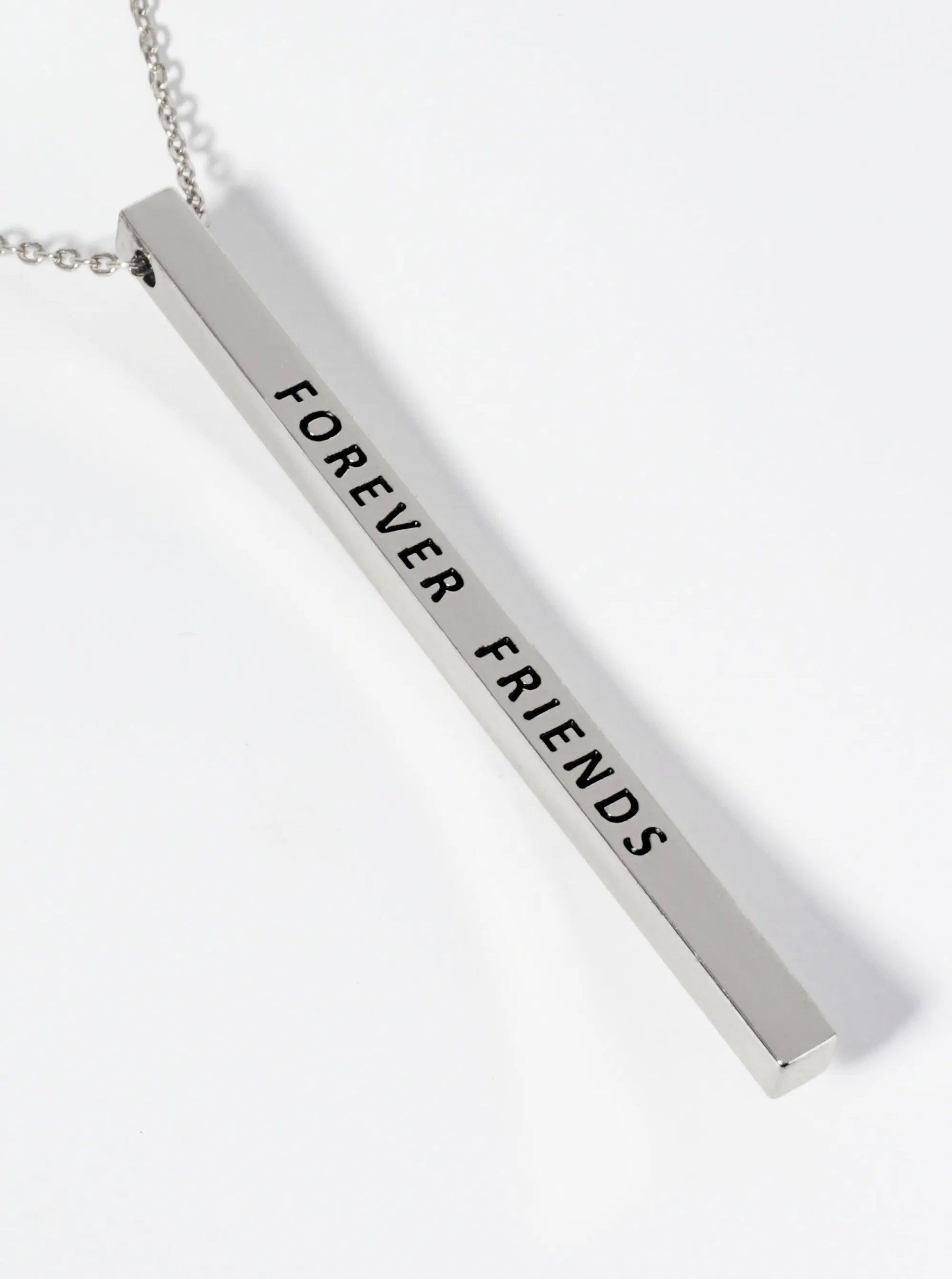 Forever Friends Engraved Vertical Bar Pendant Inspirational Necklace