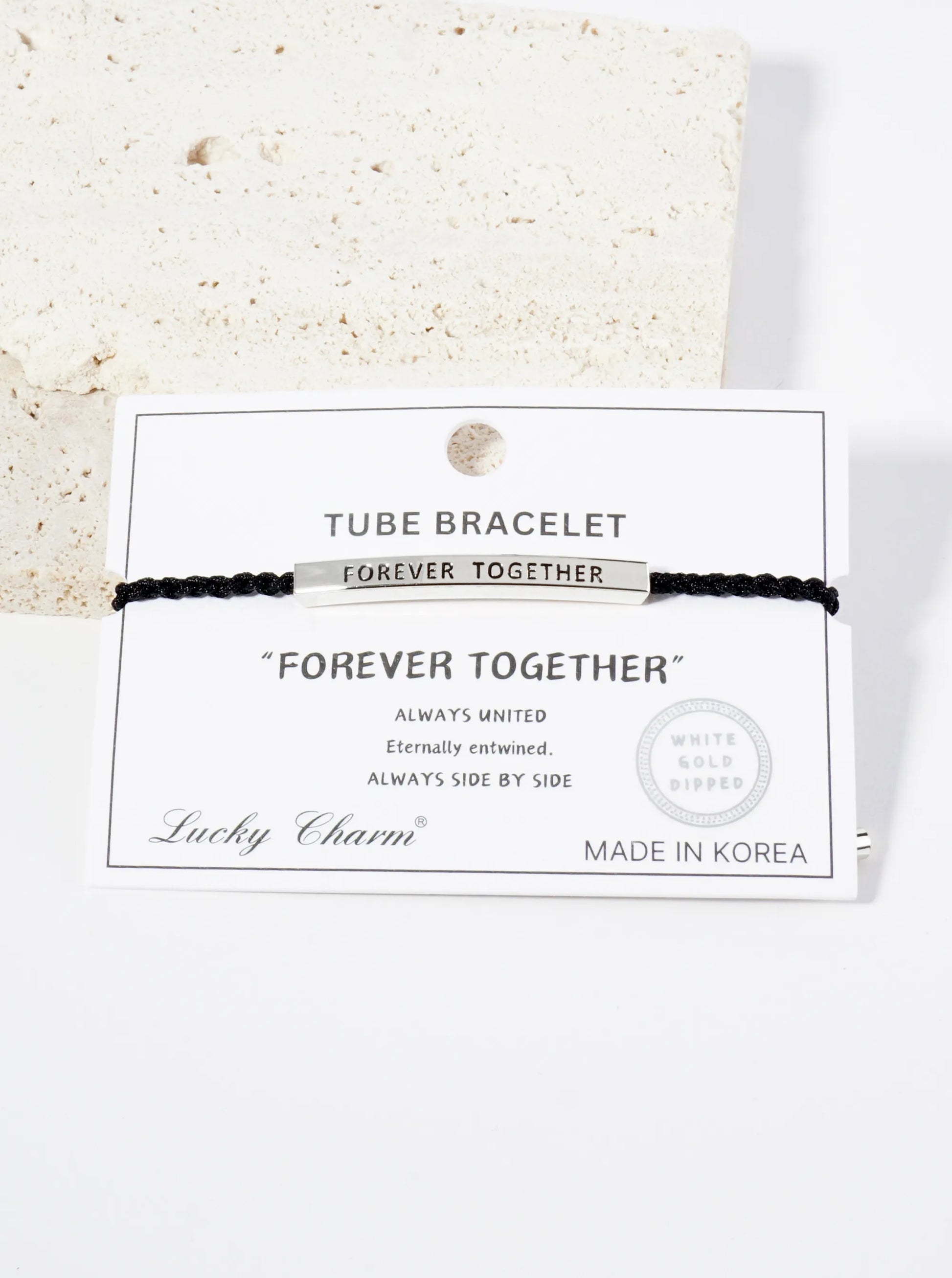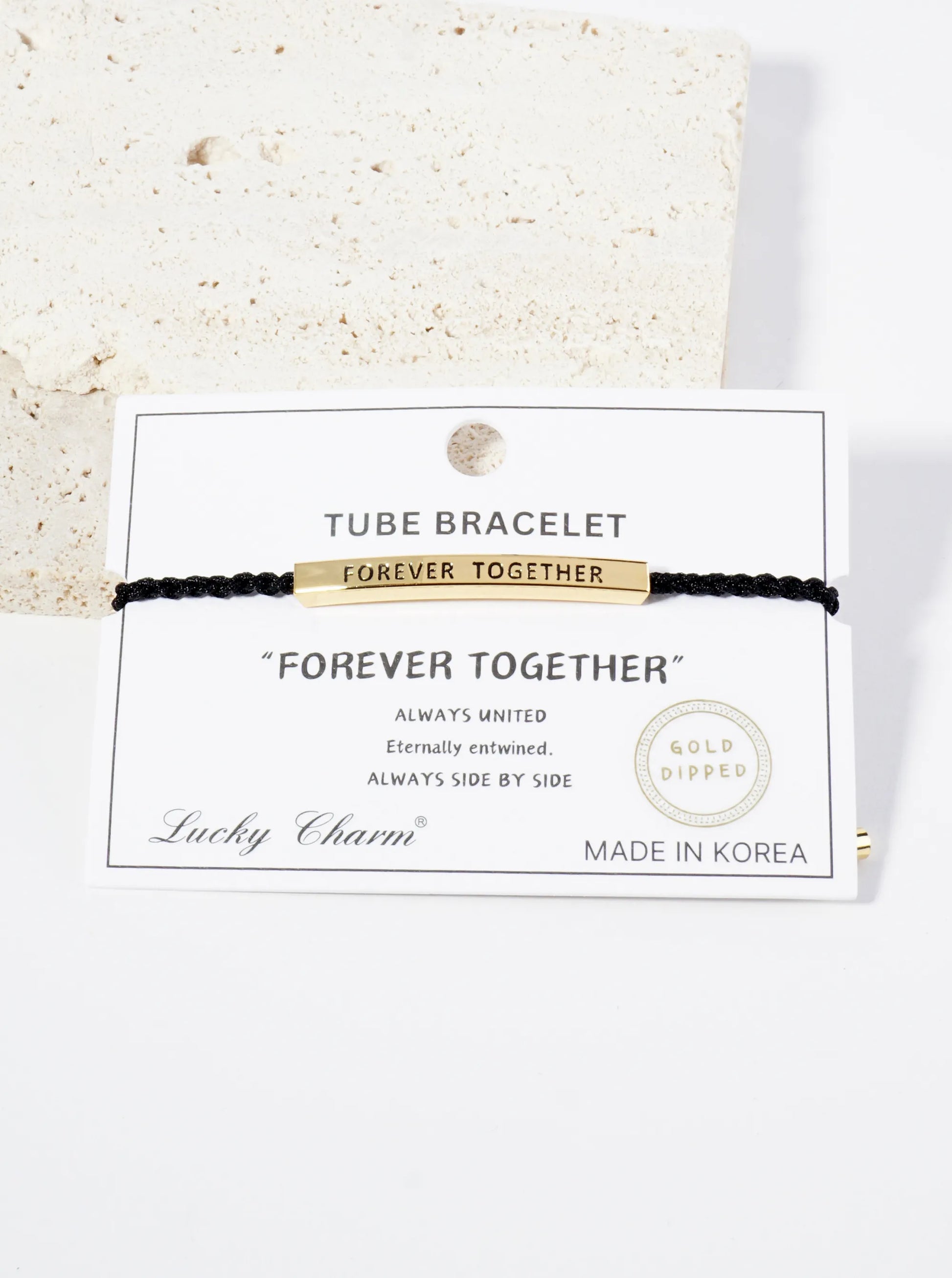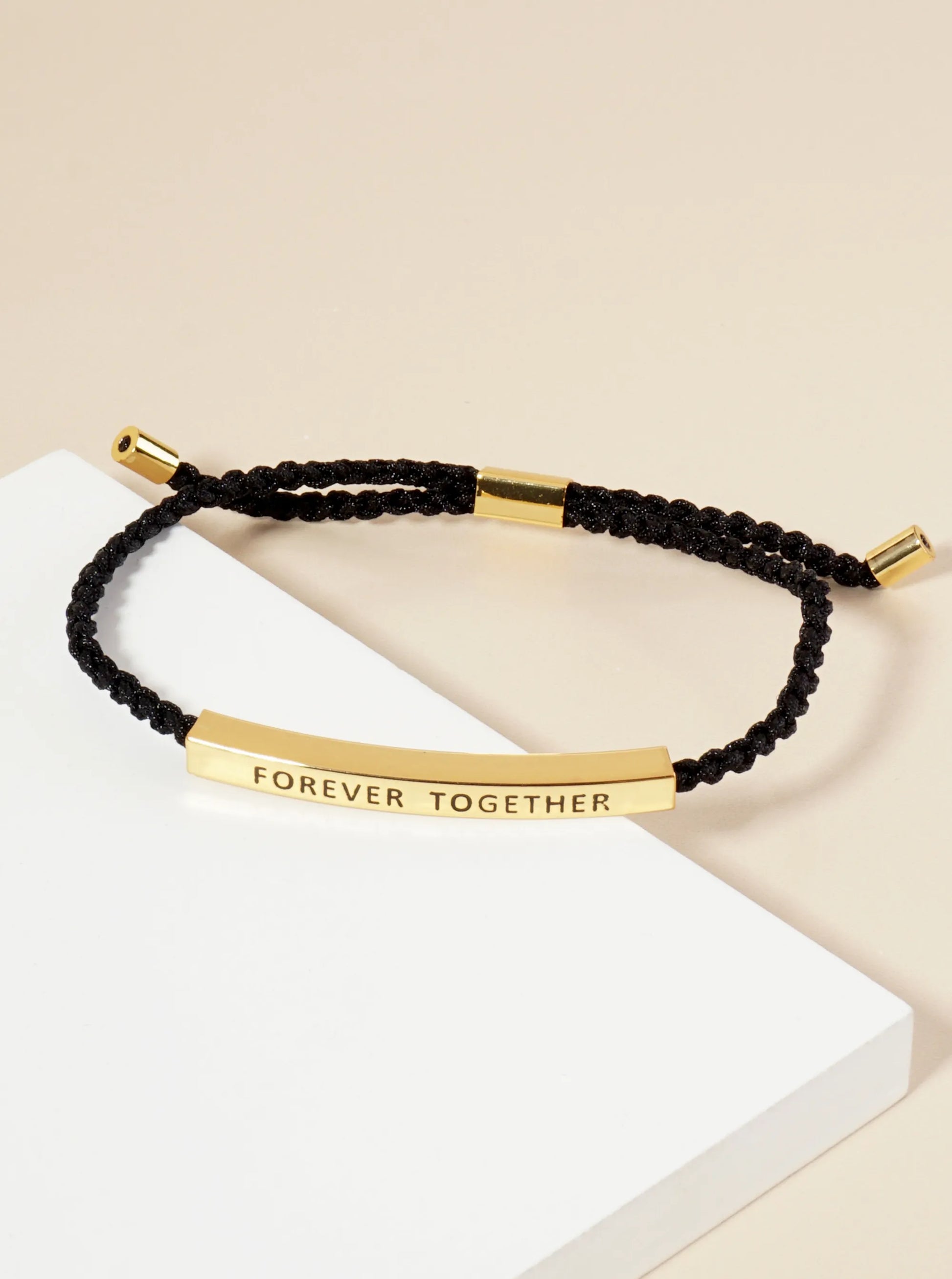 Forever Together Engraved 18K Gold Dipped Curved Brass Tube Bar Adjustable Pull Tie Bracelet