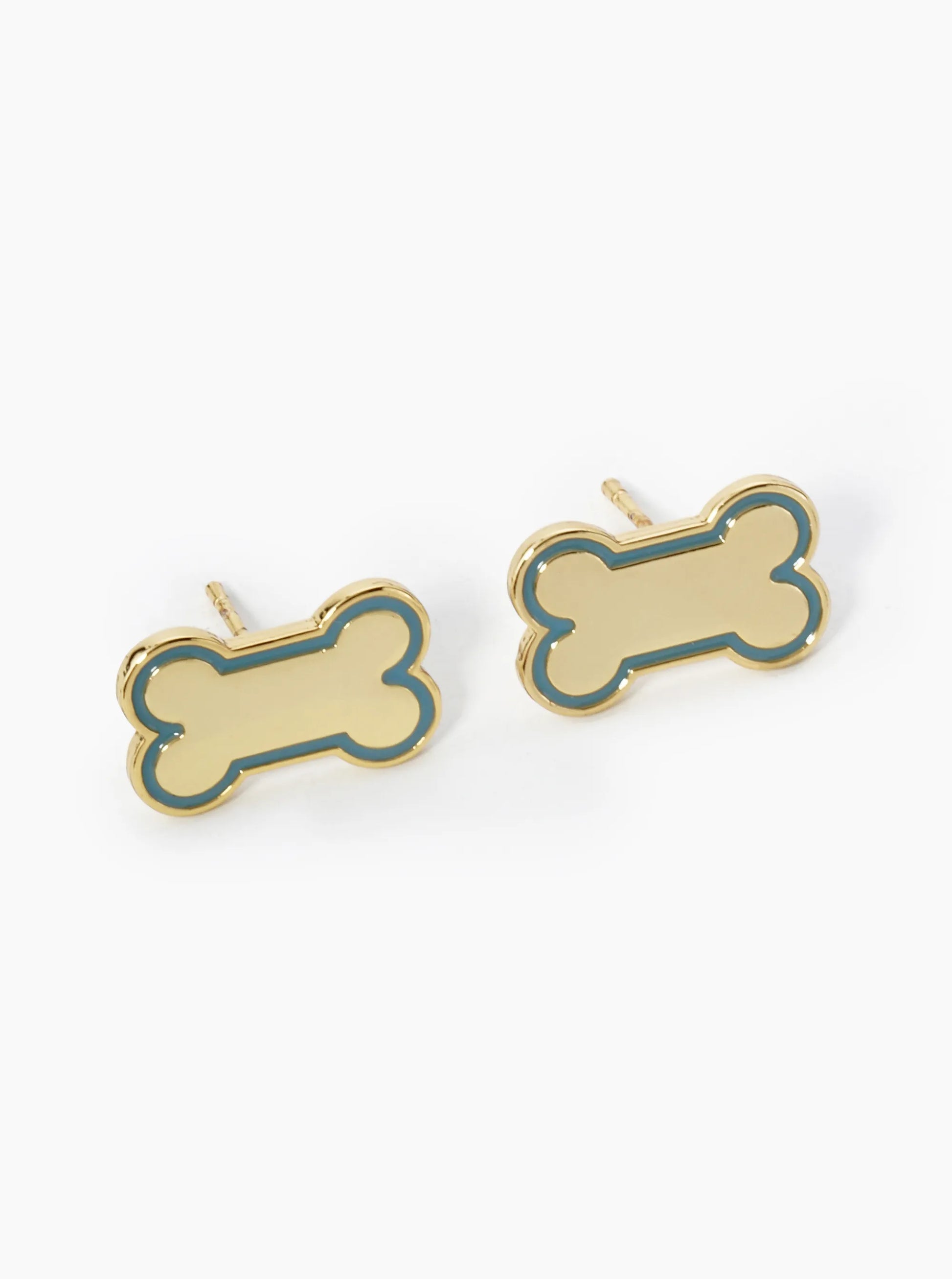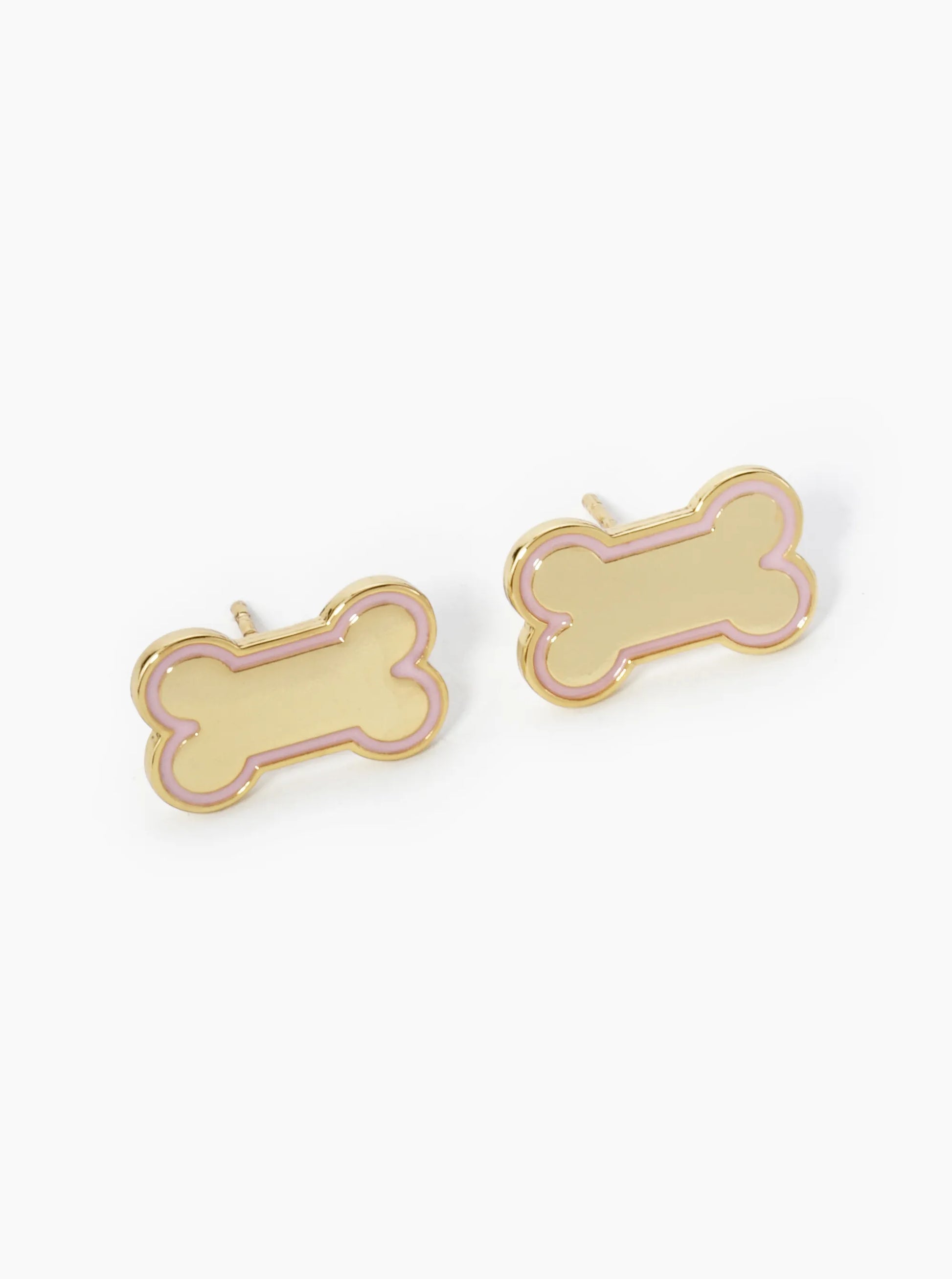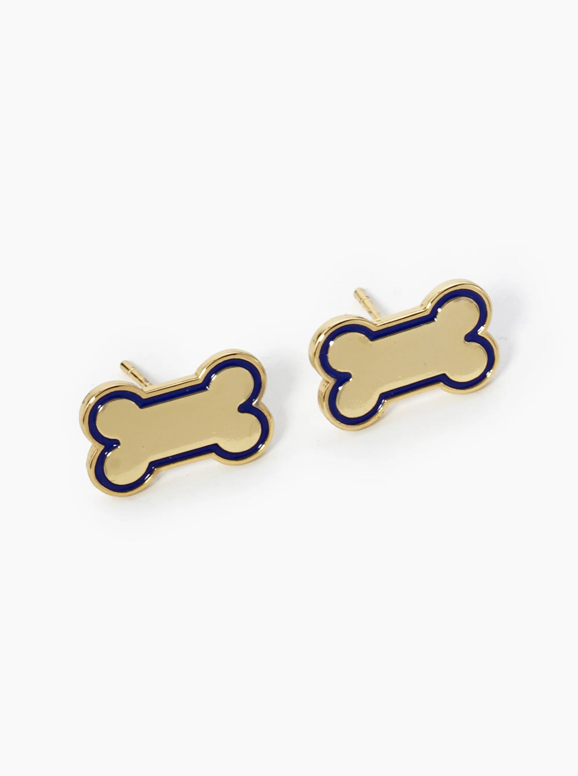 Game Day Mascot 18K Gold Dipped 9mm Enamel Dog Bone Treat Stud Earrings