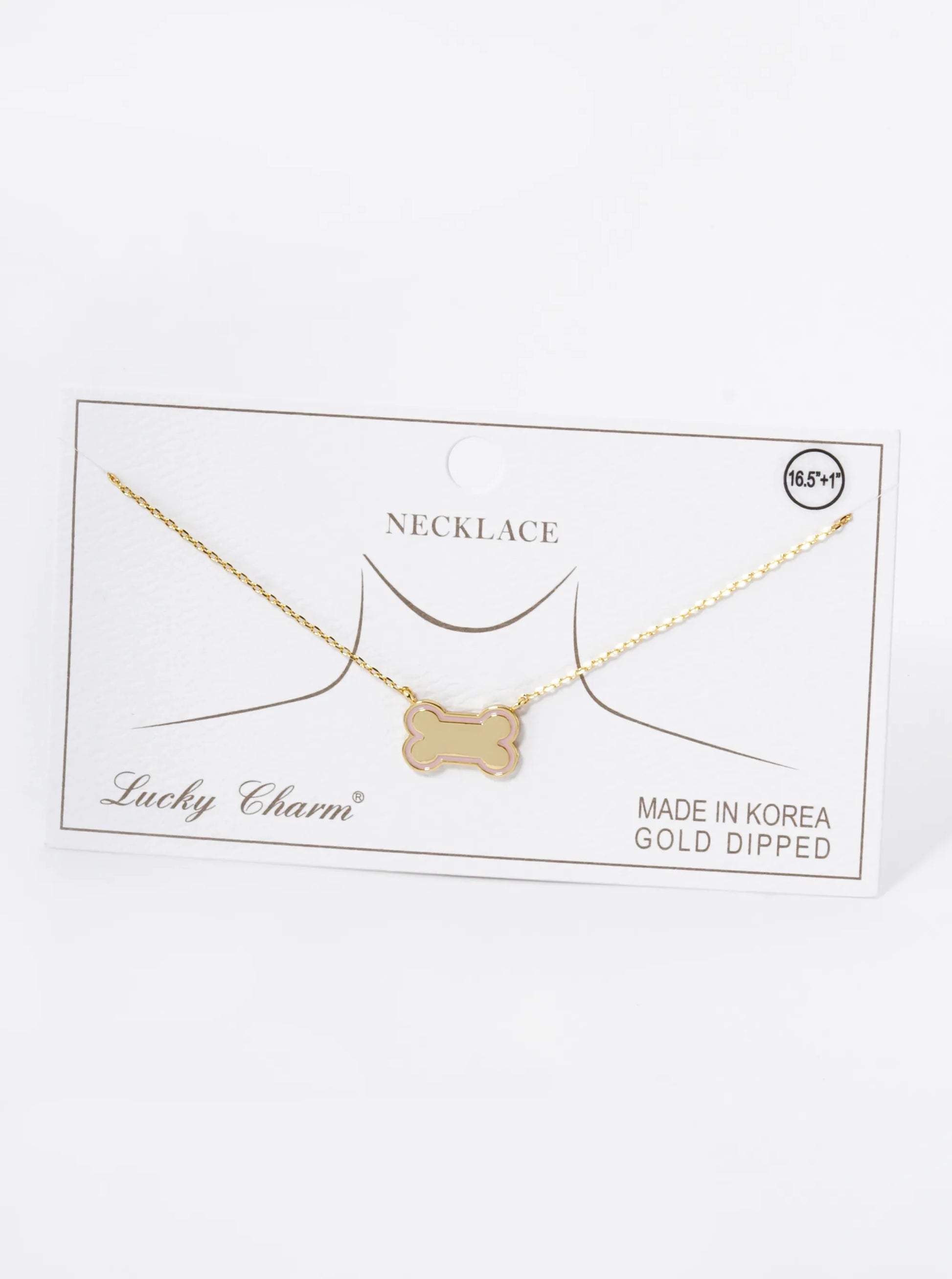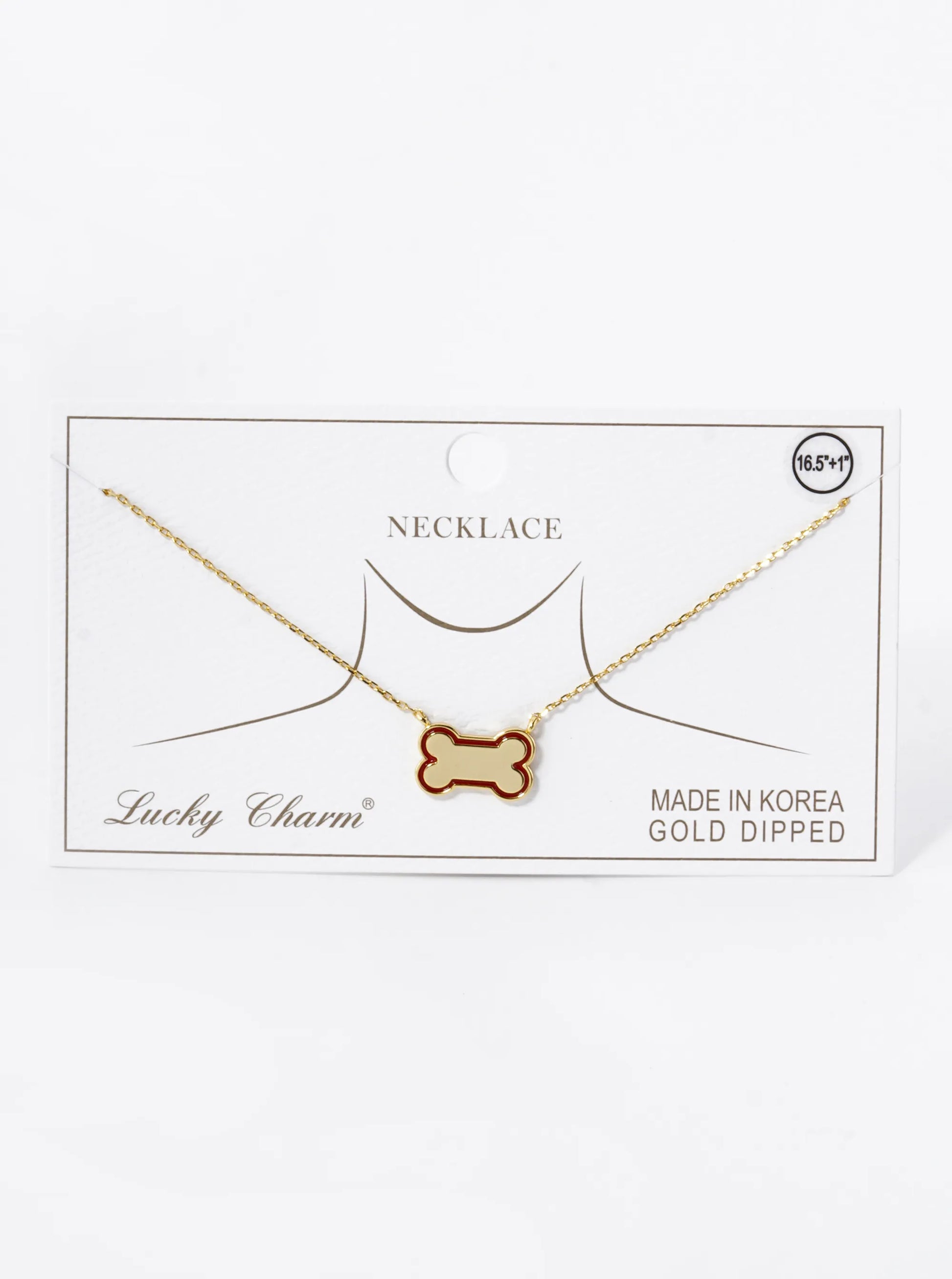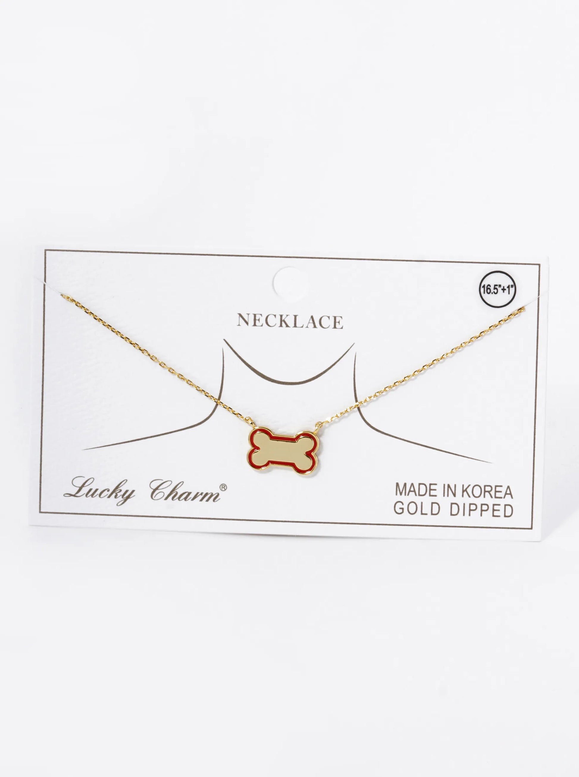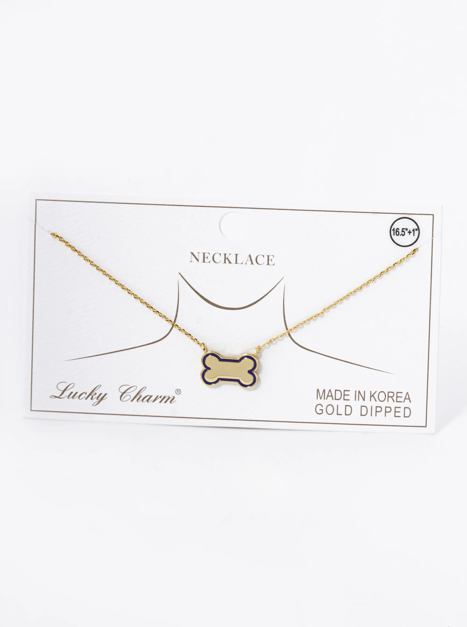 Game Day Mascot 18K Gold Dipped Enamel Dog Bone Treat Pendant Necklace