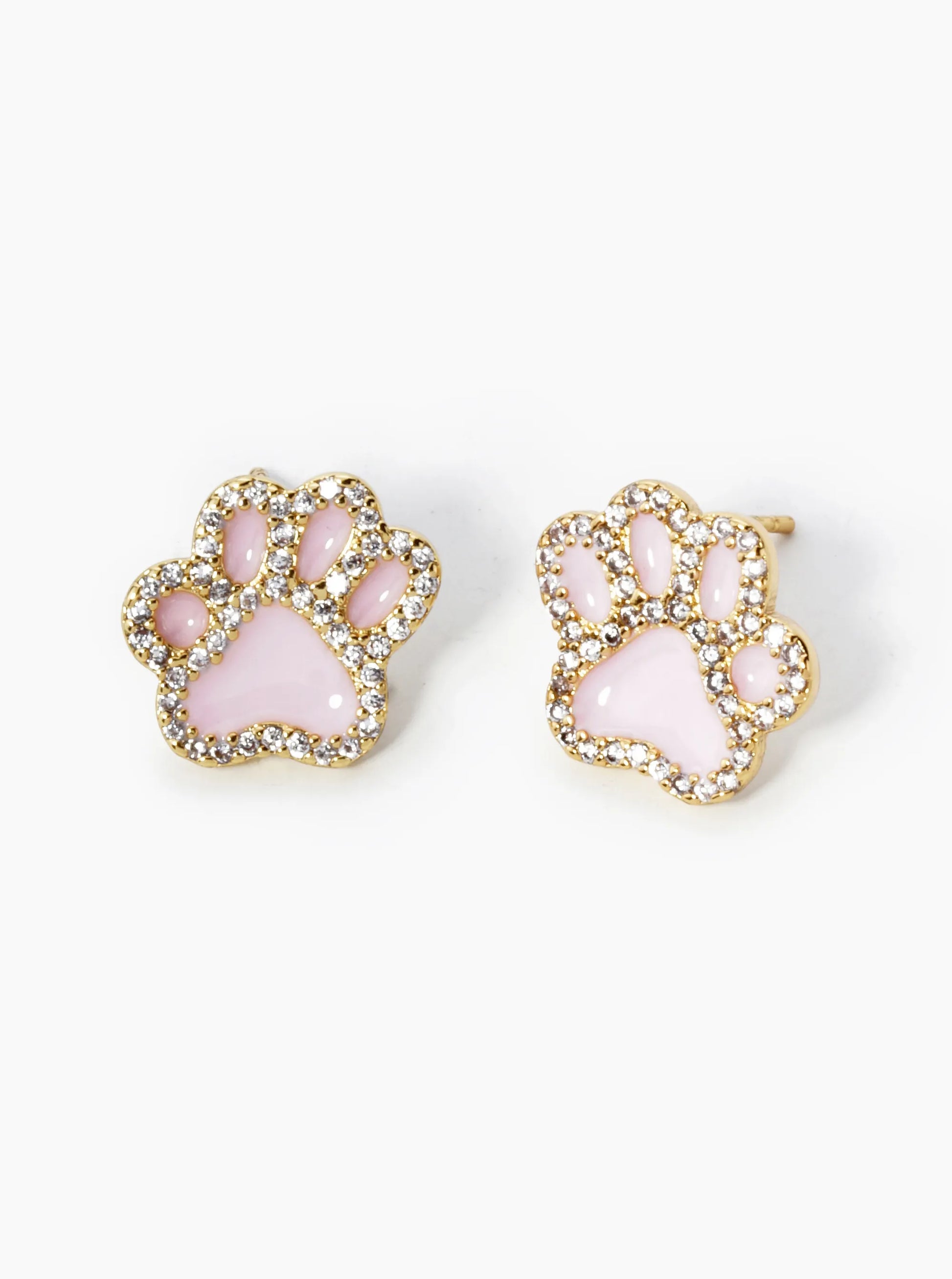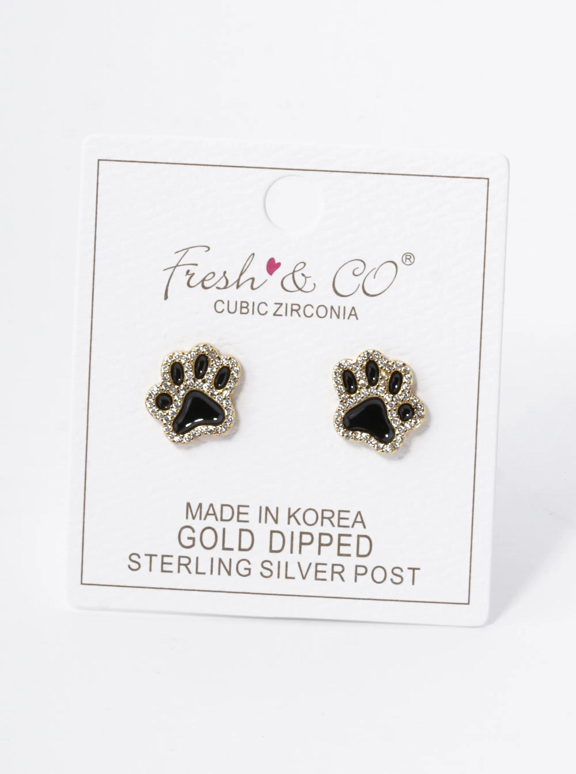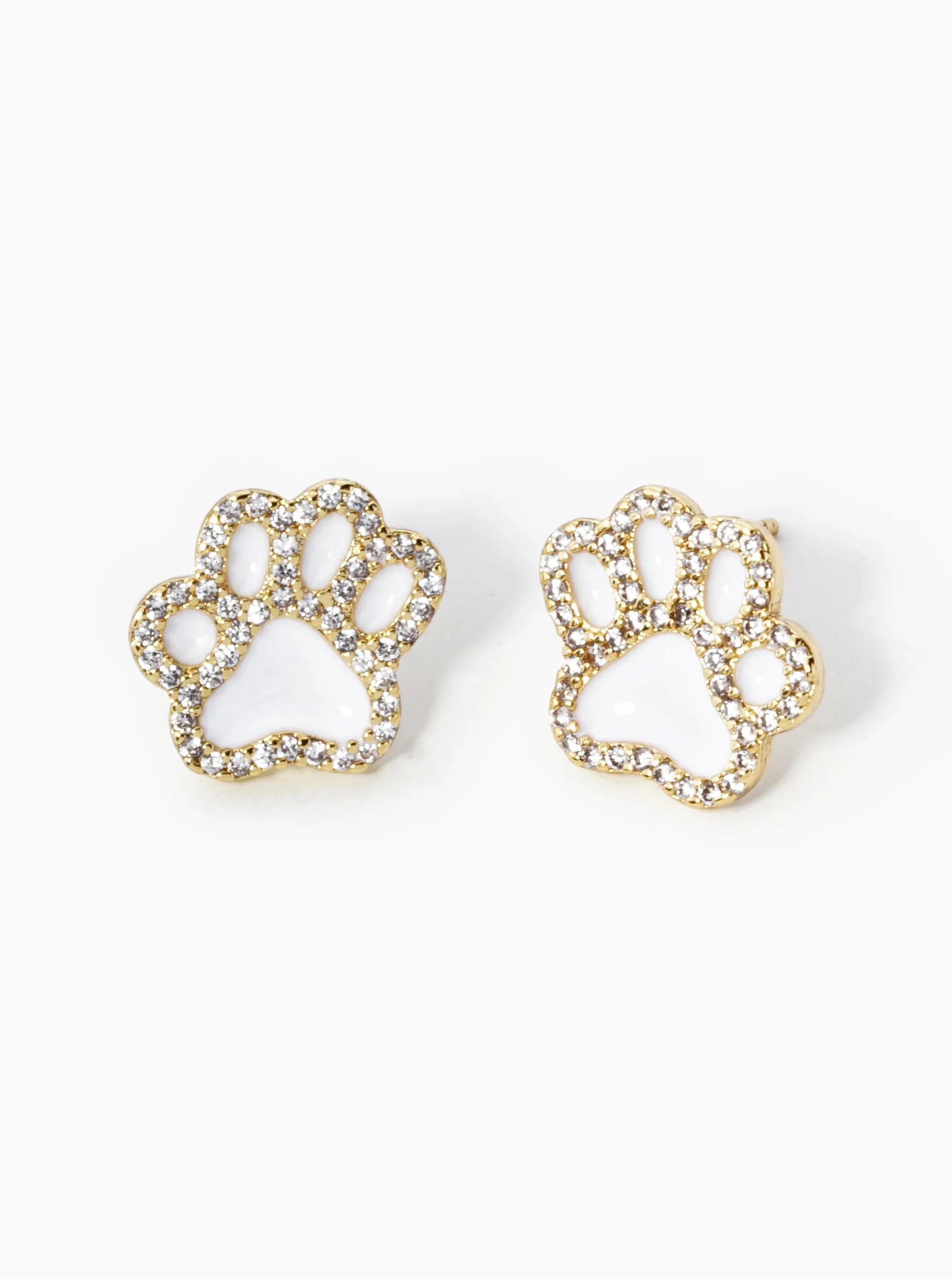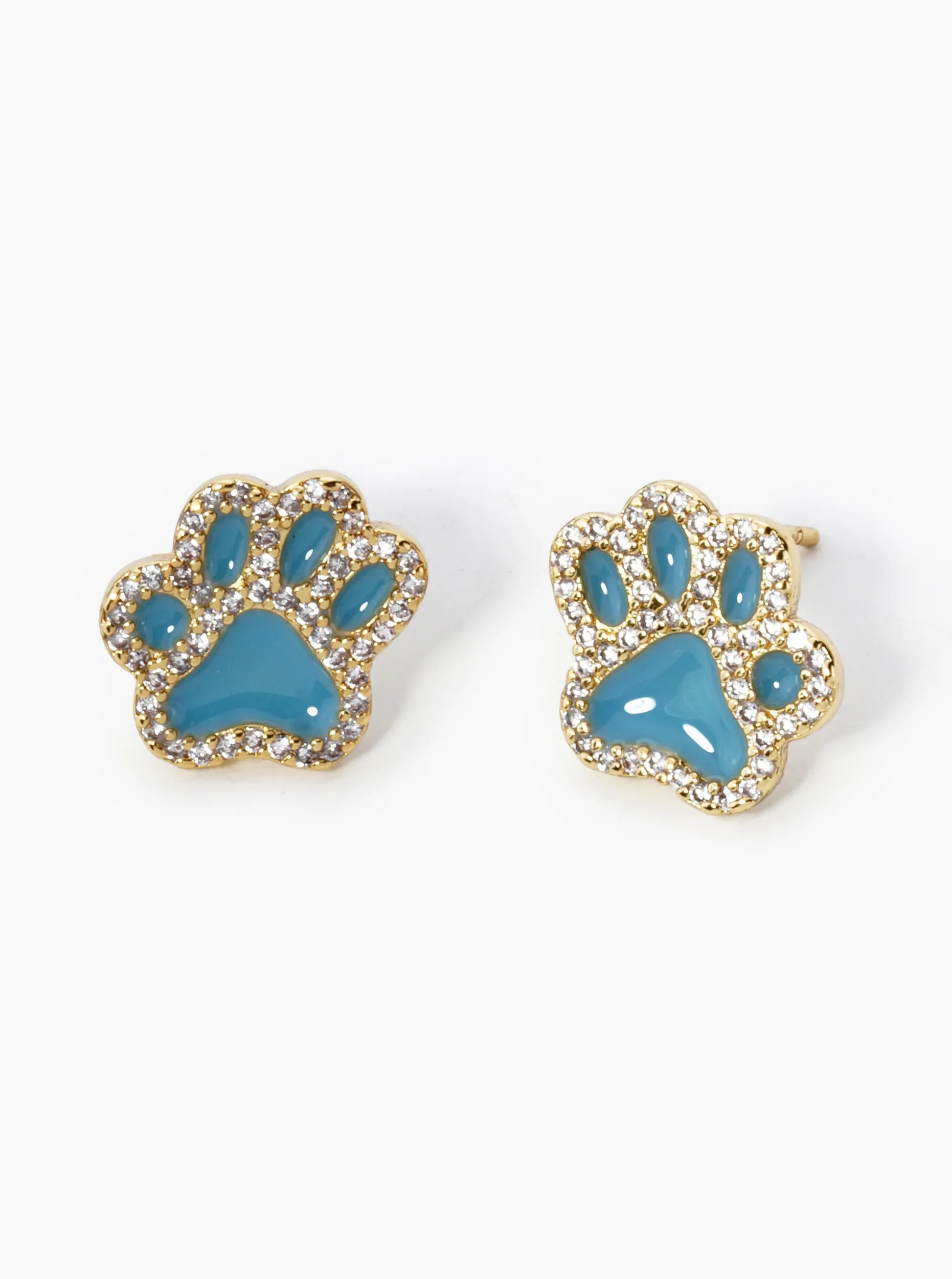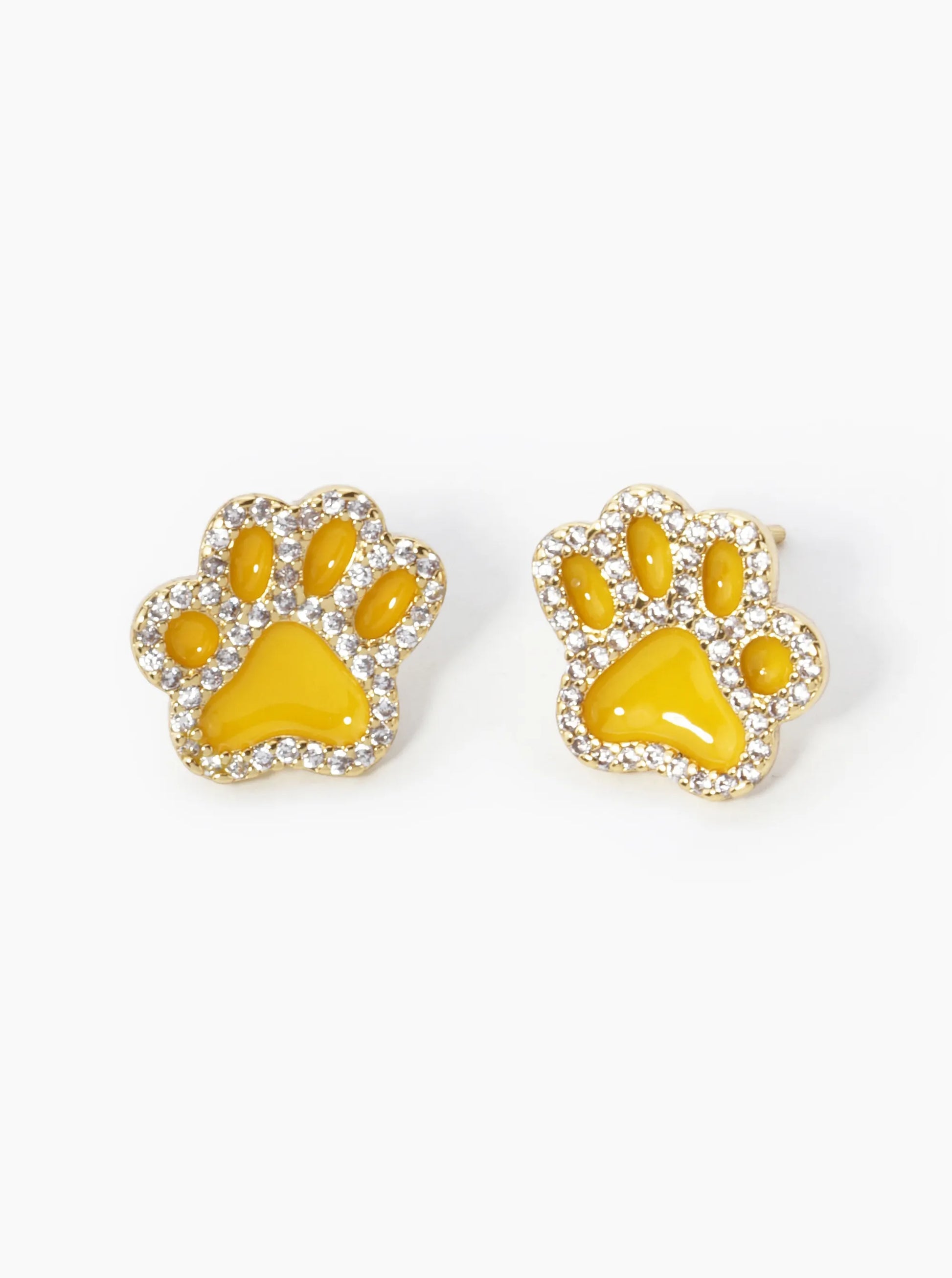 Game Day Mascot 18K Gold Dipped Micro Pave Set Cubic Zirconia 13mm Enamel Paw Stud Earrings