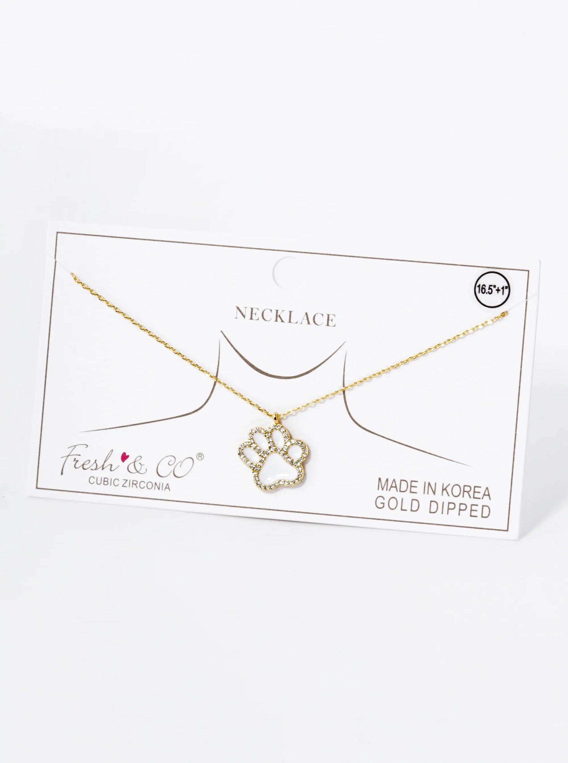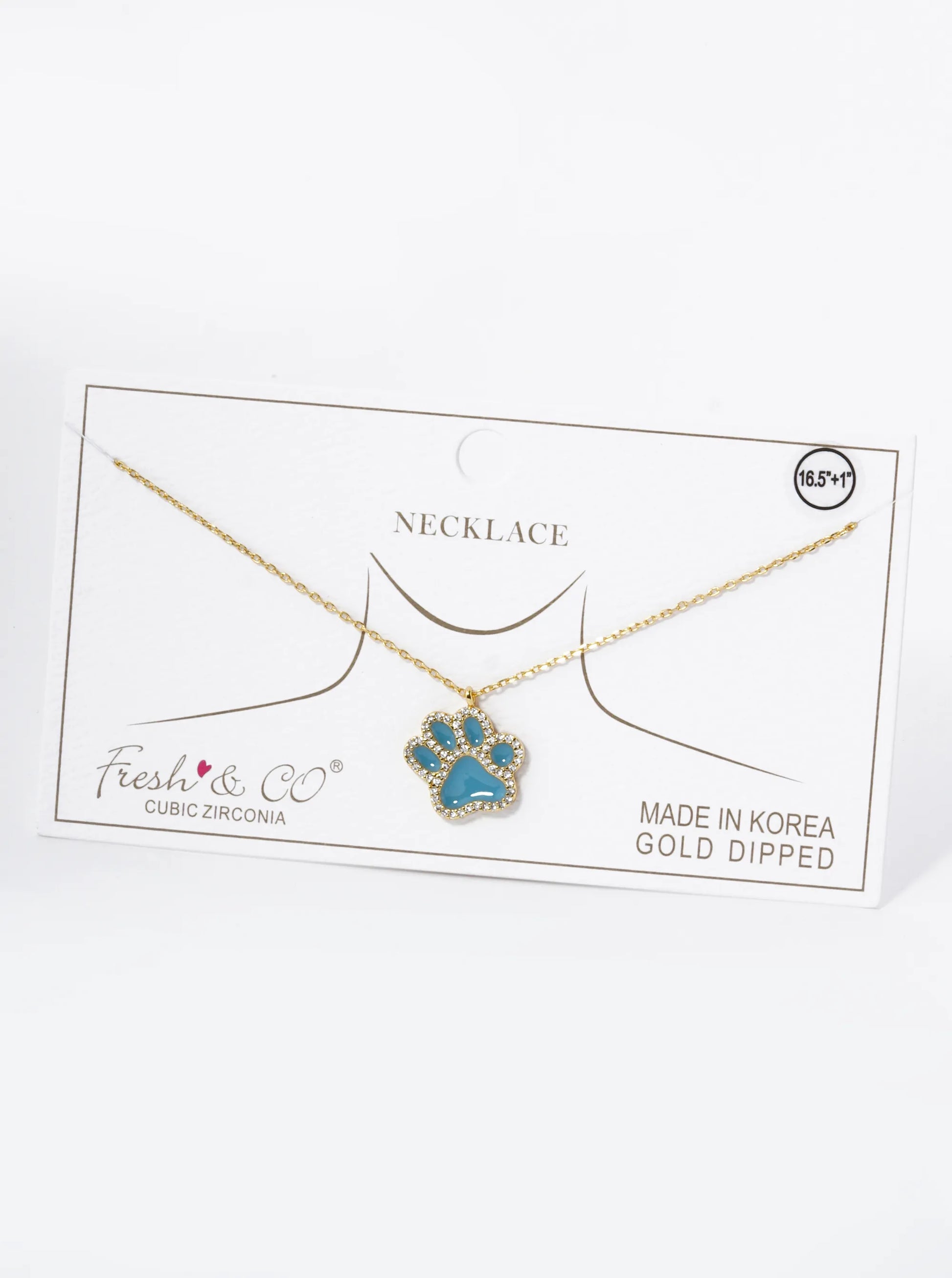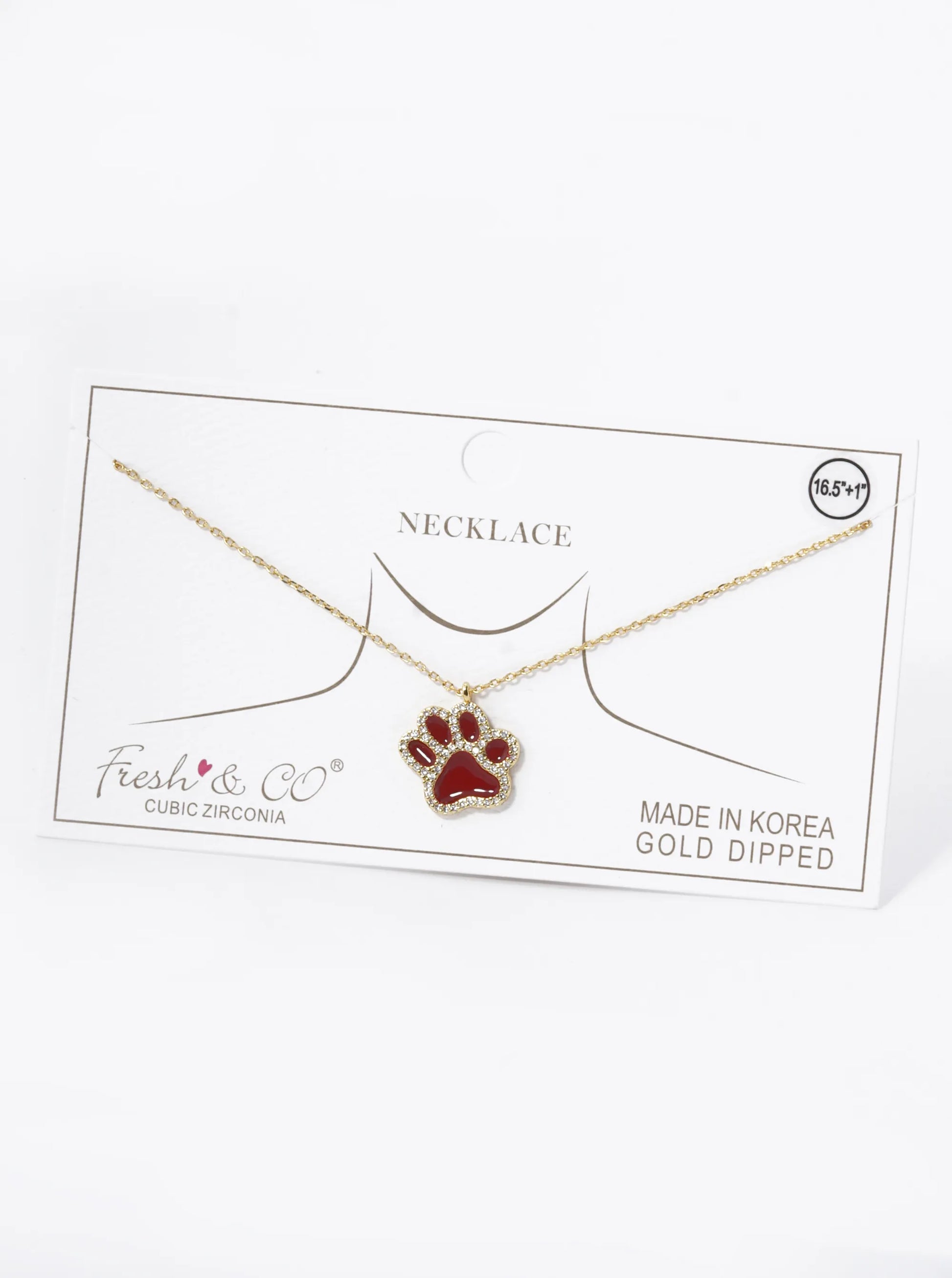 Game Day Mascot 18K Gold Dipped Micro Pave Set Cubic Zirconia Enamel Paw Pendant Necklace