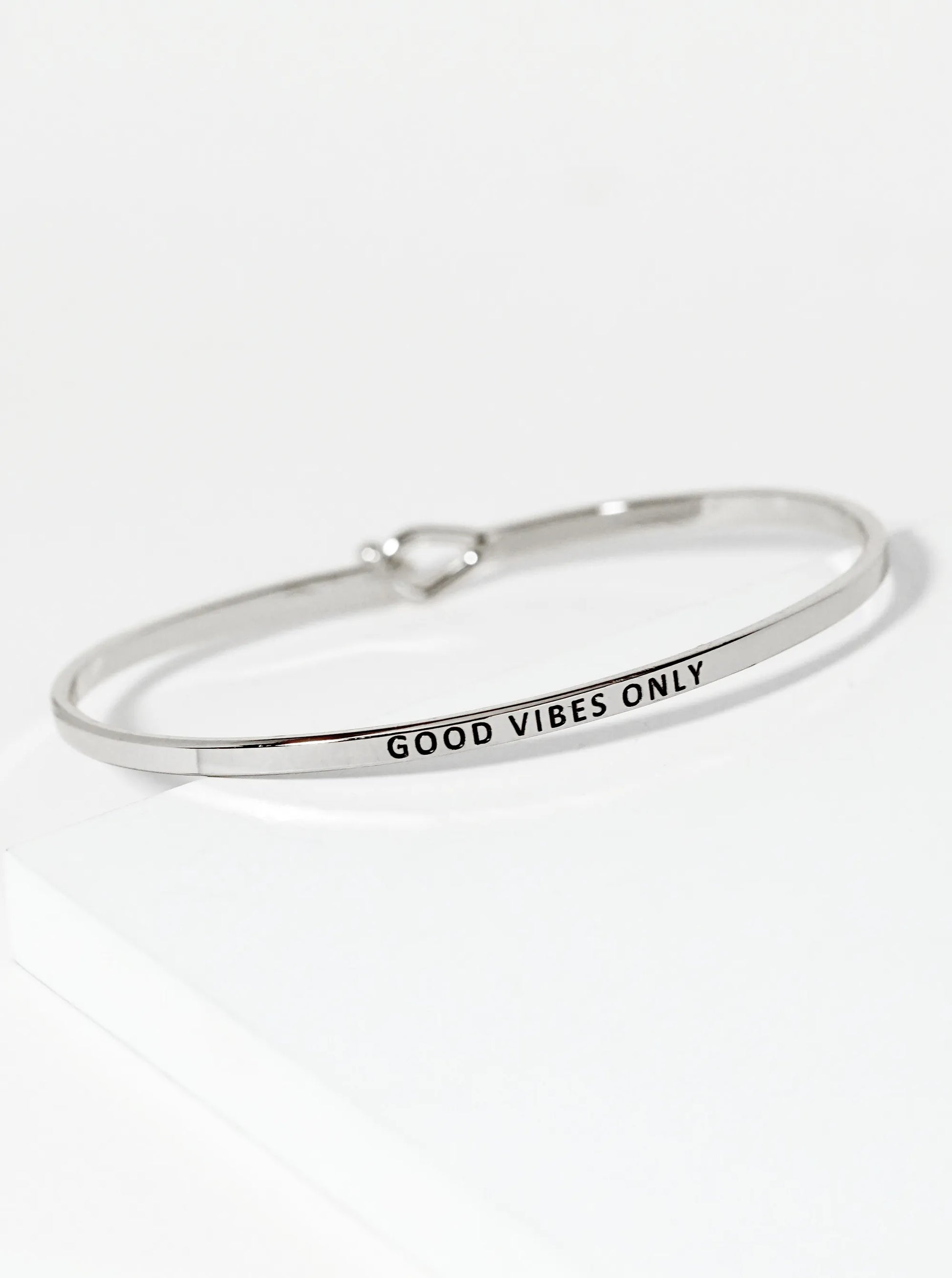 Good Vibes Only Engraved Inspirational Bangle Bracelet