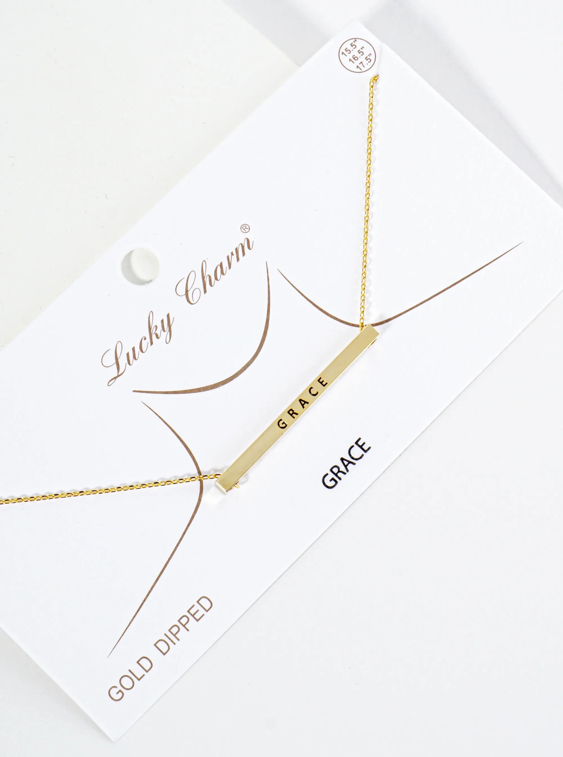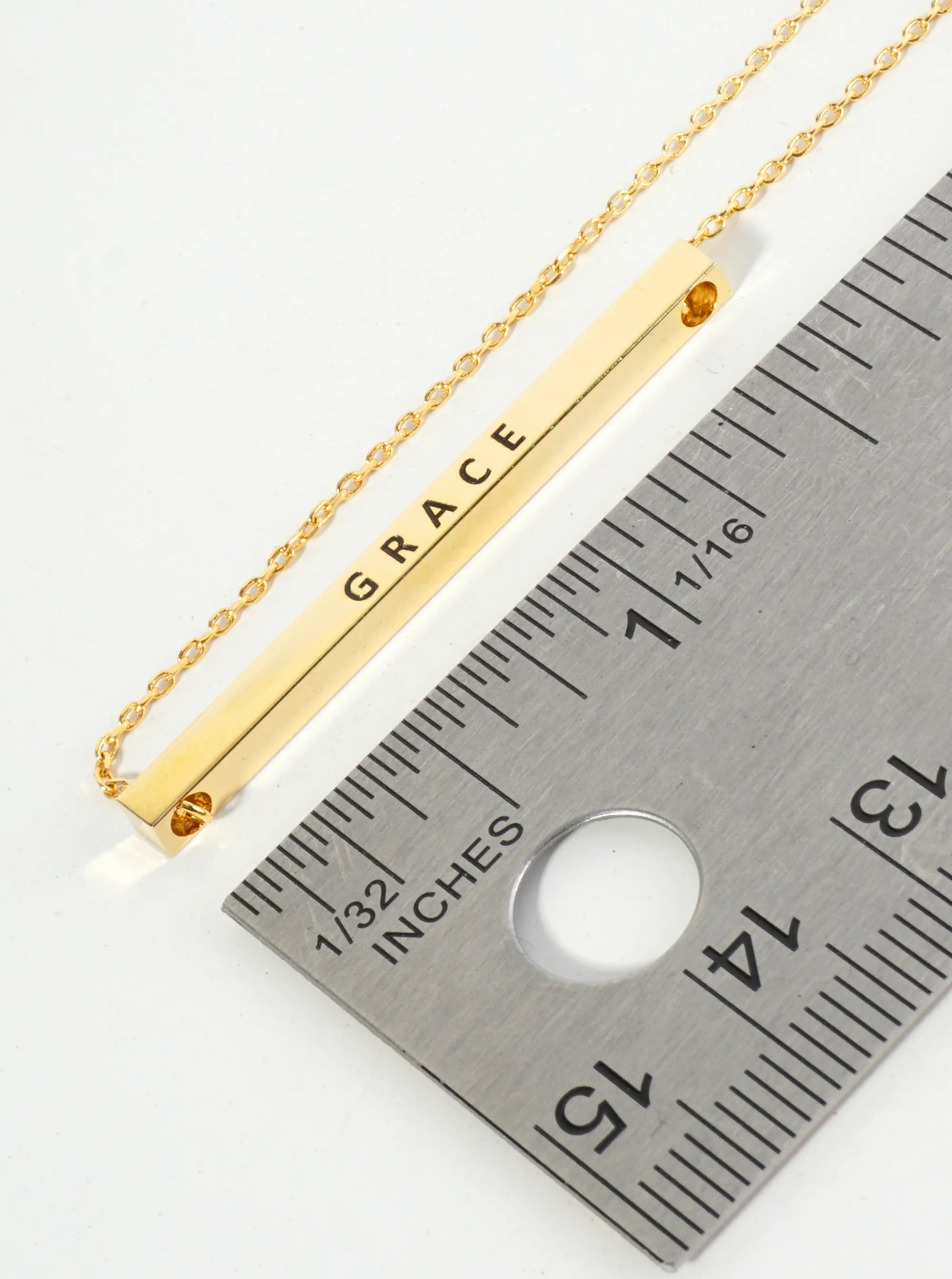 Grace Engraved 18K Gold Dipped Horizontal Brass Bar Pendant Inspirational Necklace
