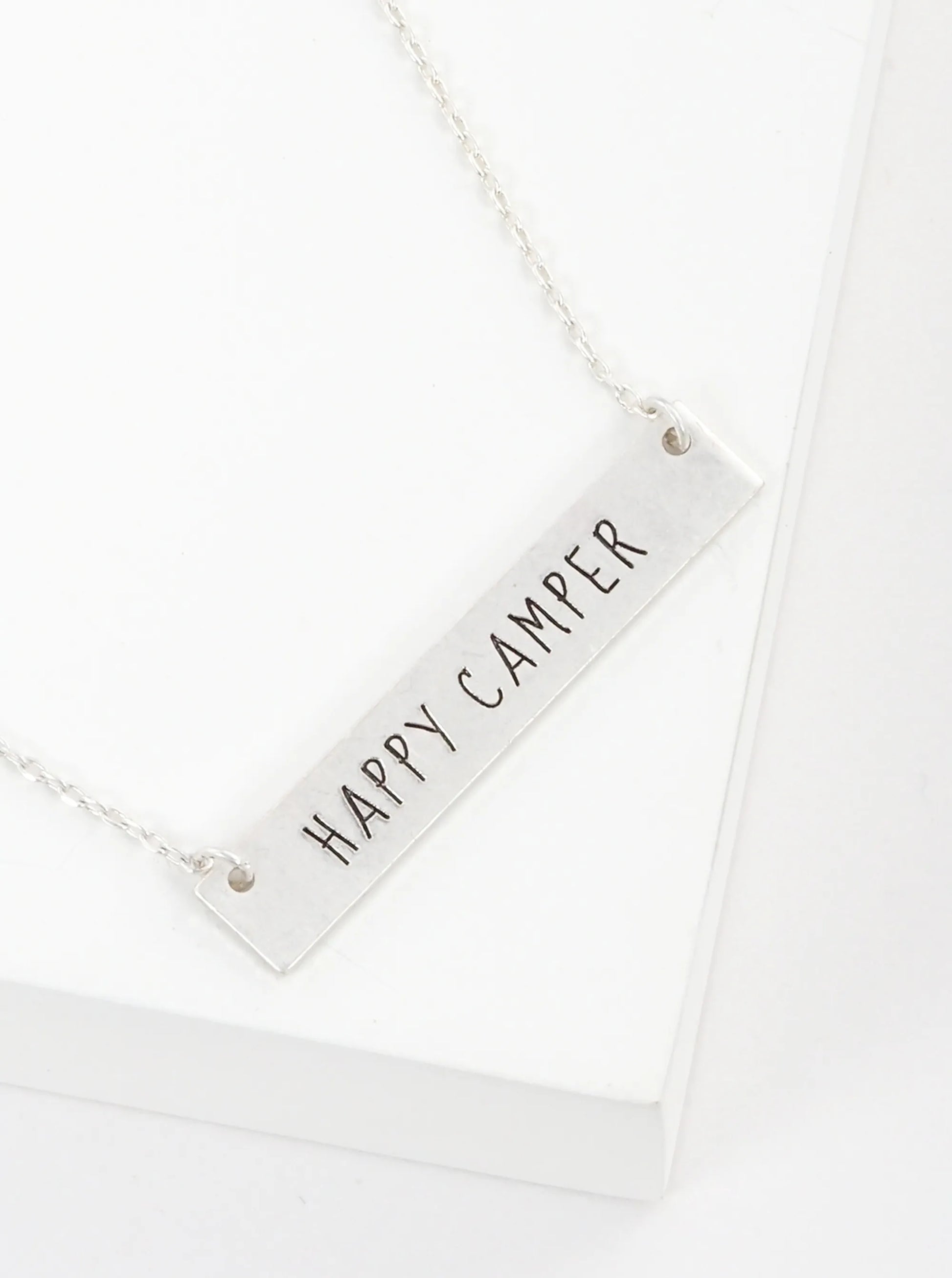 Happy Camper Engraved Horizontal Bar Pendant Necklace