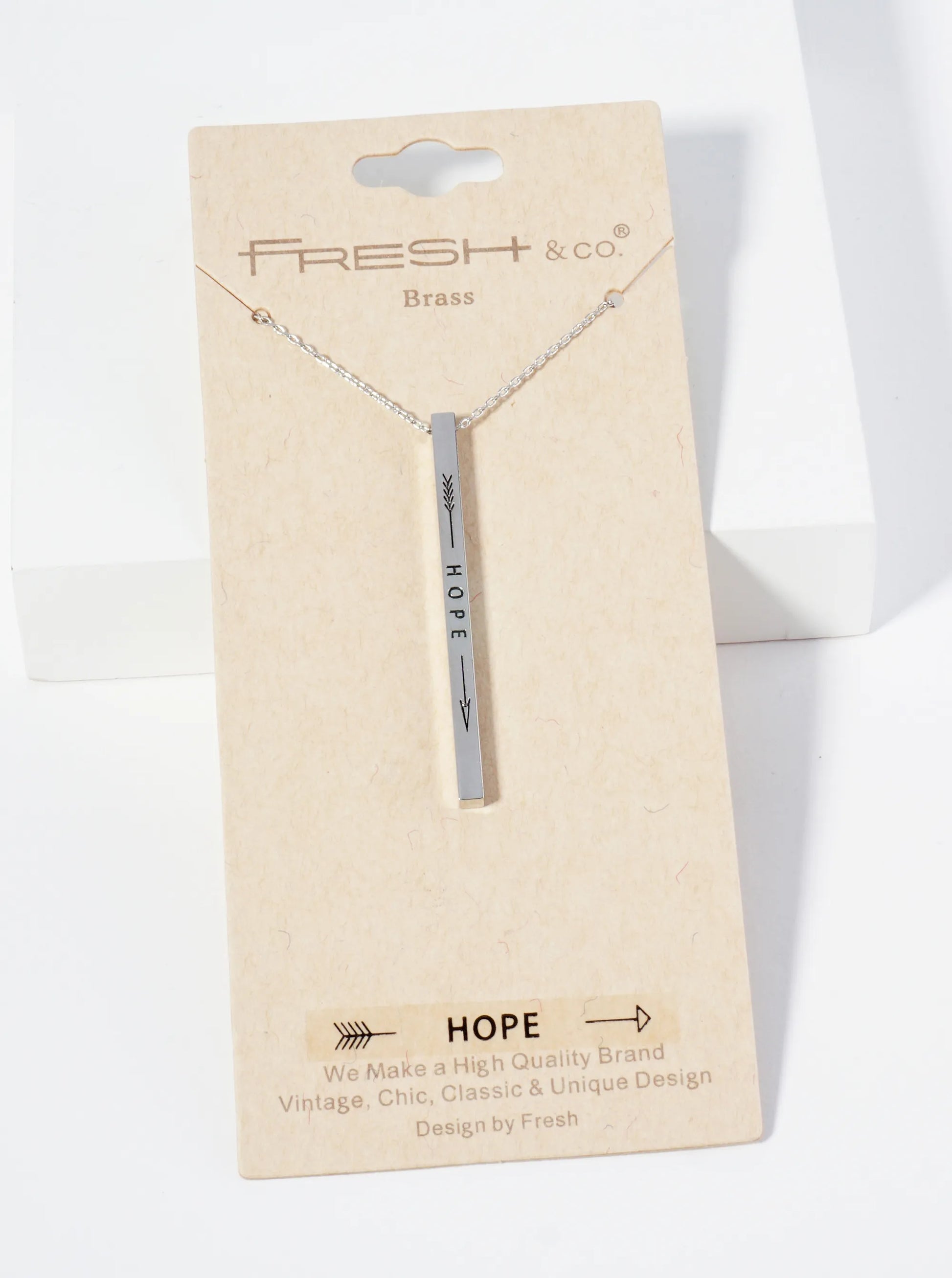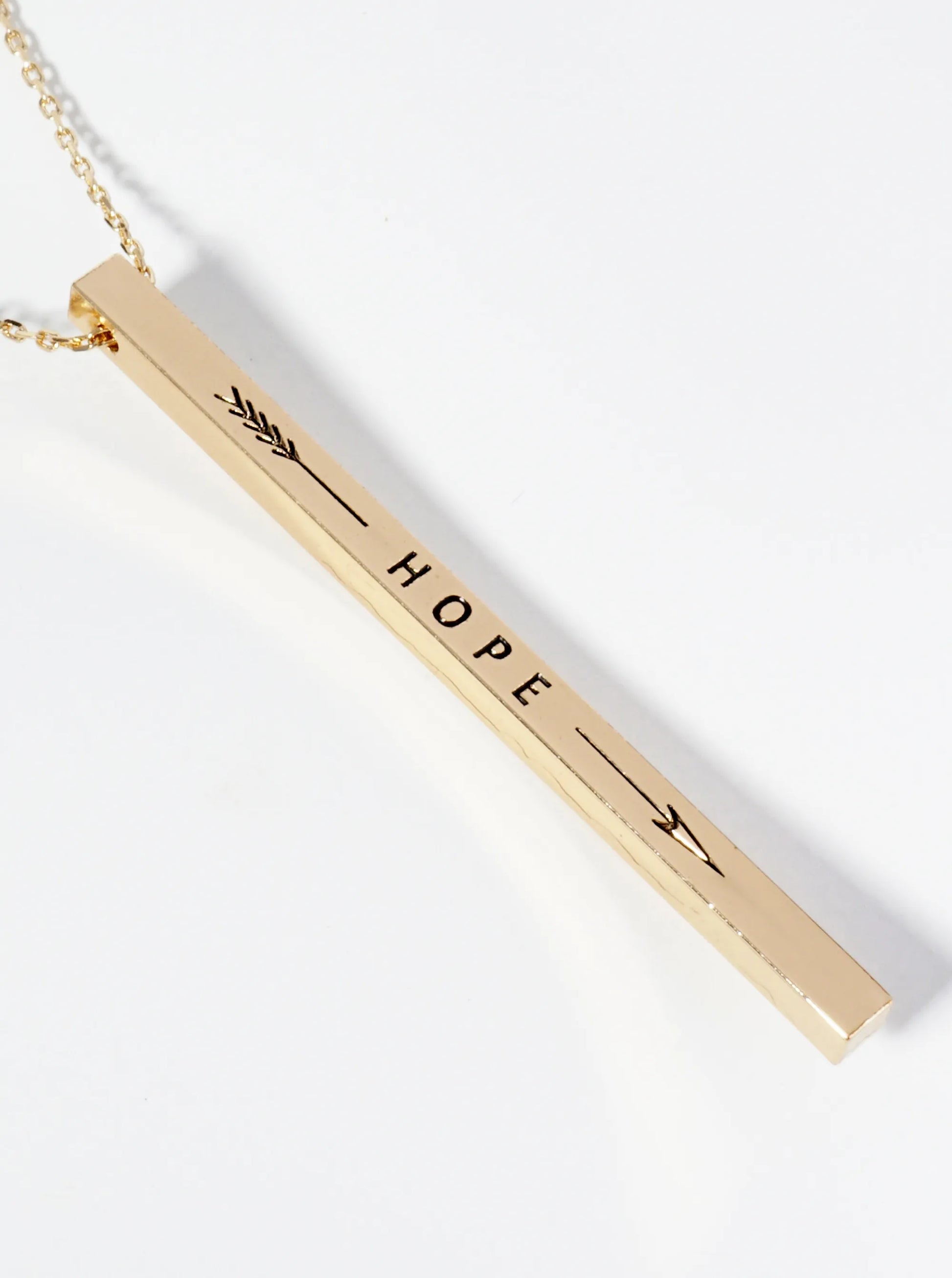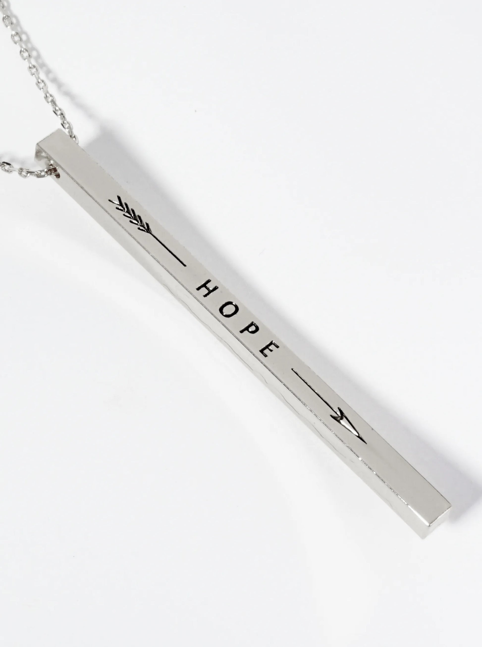 Hope Arrow Engraved Vertical Bar Pendant Inspirational Necklace