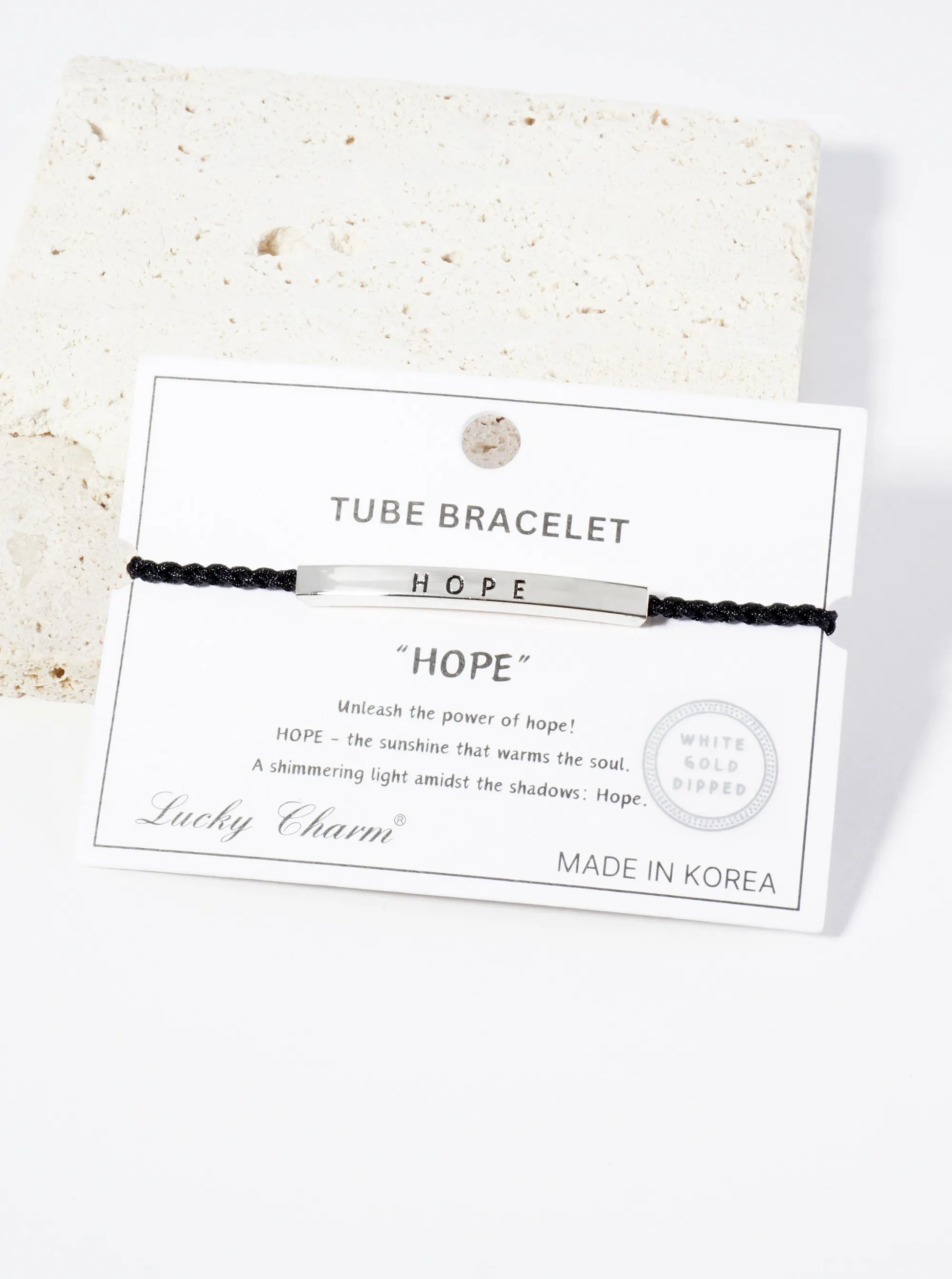 Hope Engraved 18K Gold Dipped Curved Brass Tube Bar Adjustable Pull Tie Bracelet