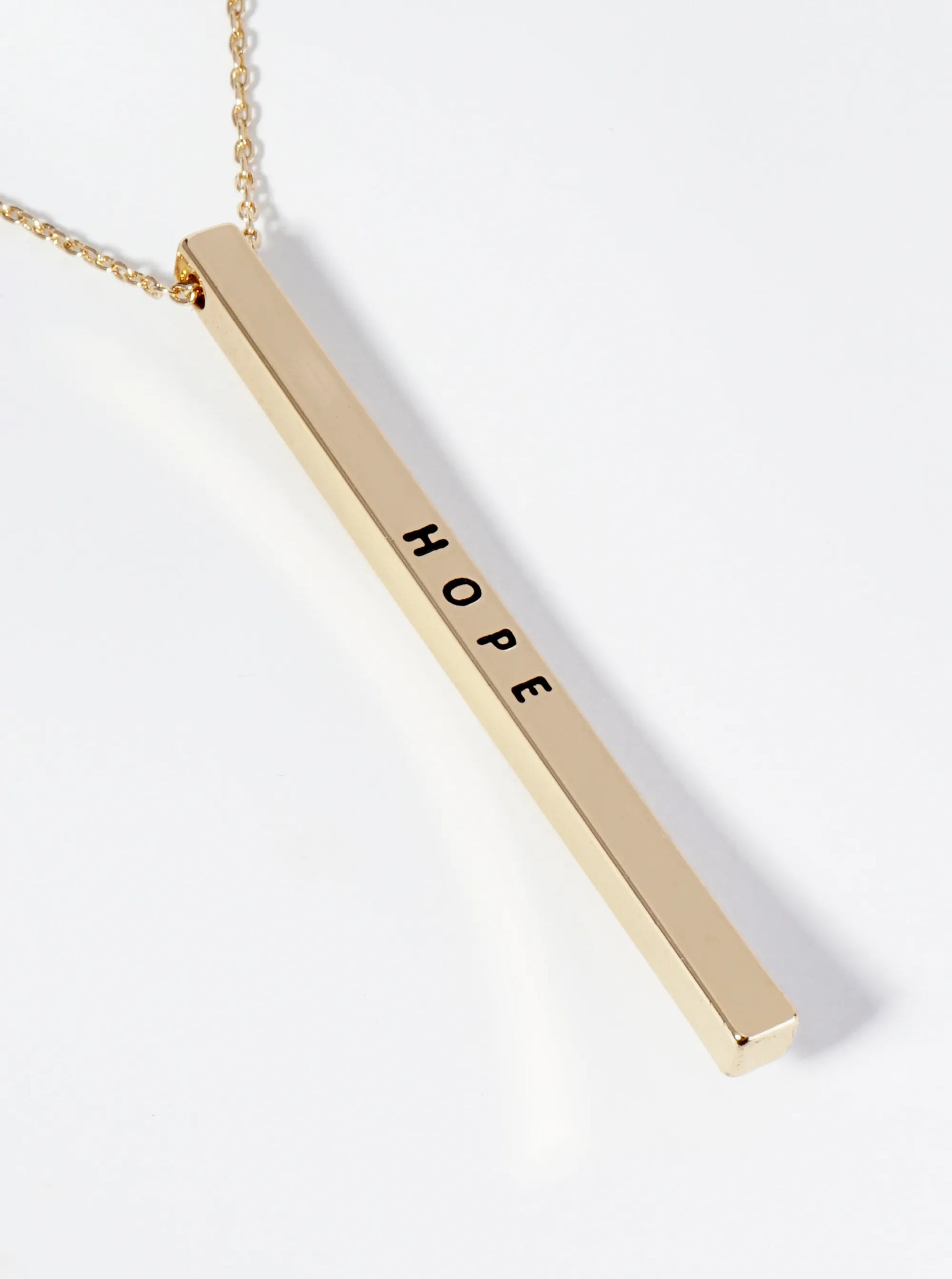 Hope Engraved Vertical Bar Pendant Inspirational Necklace