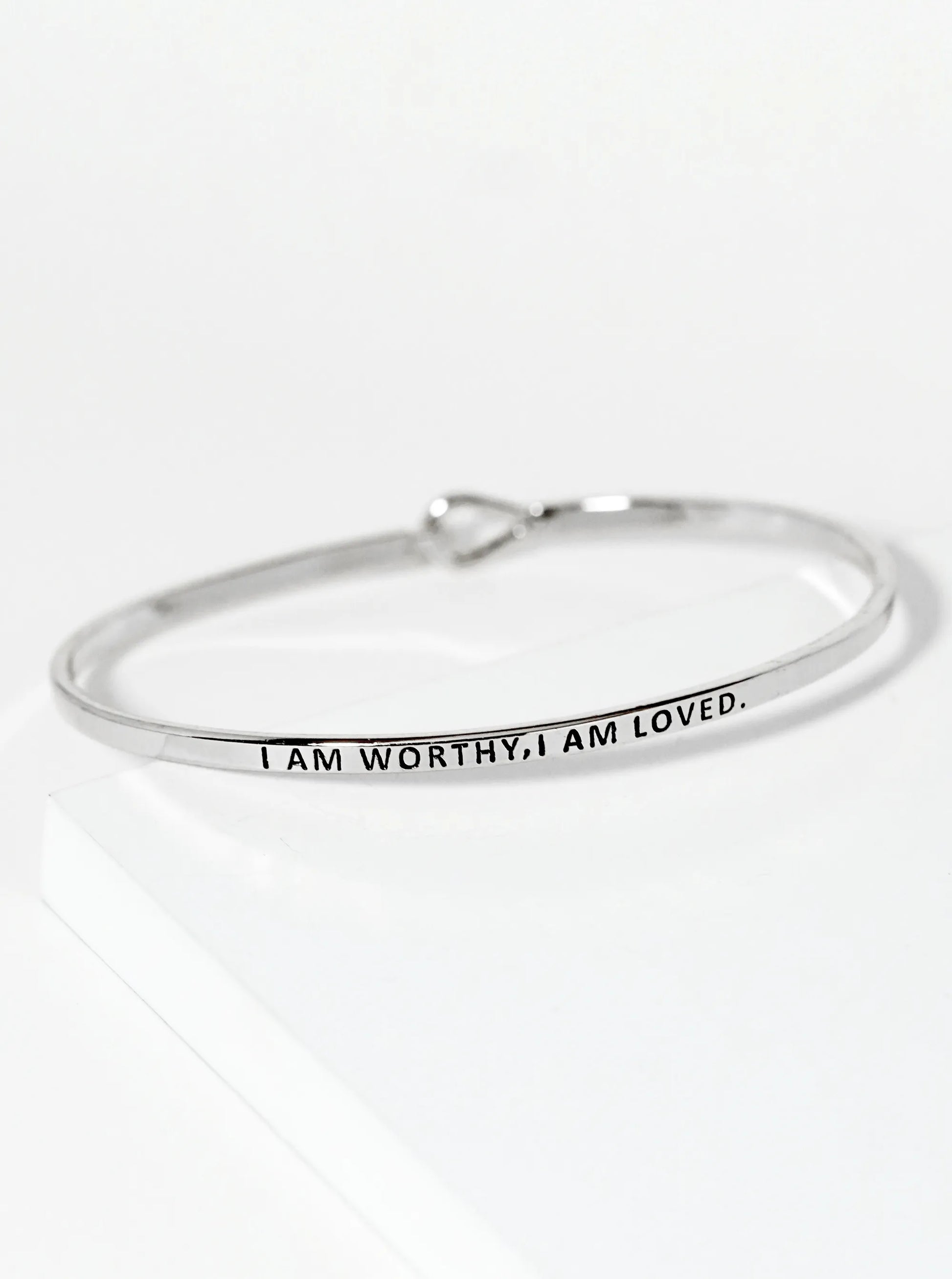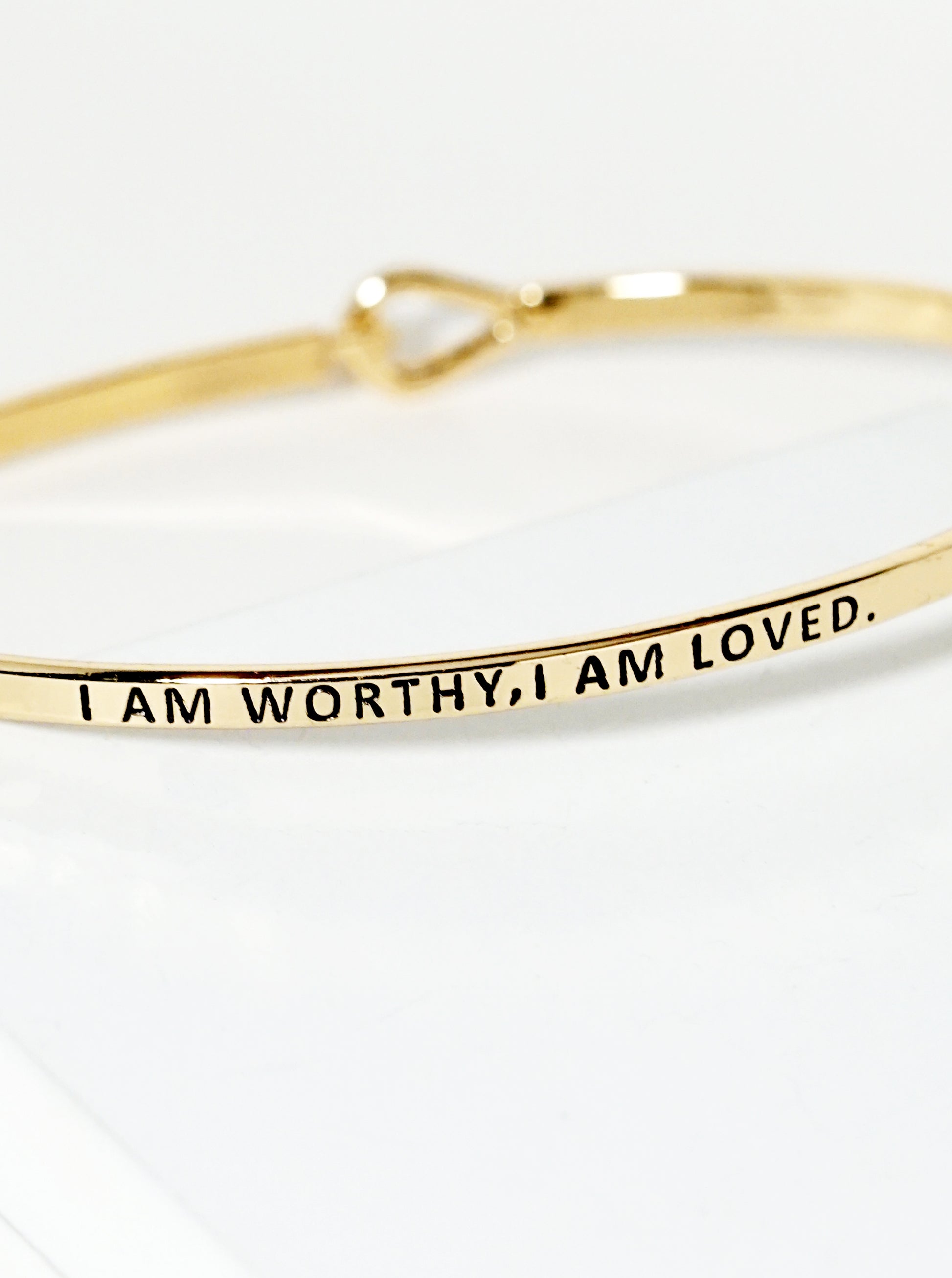 I Am Worthy I Am Loved Engraved Inspirational Bangle Bracelet