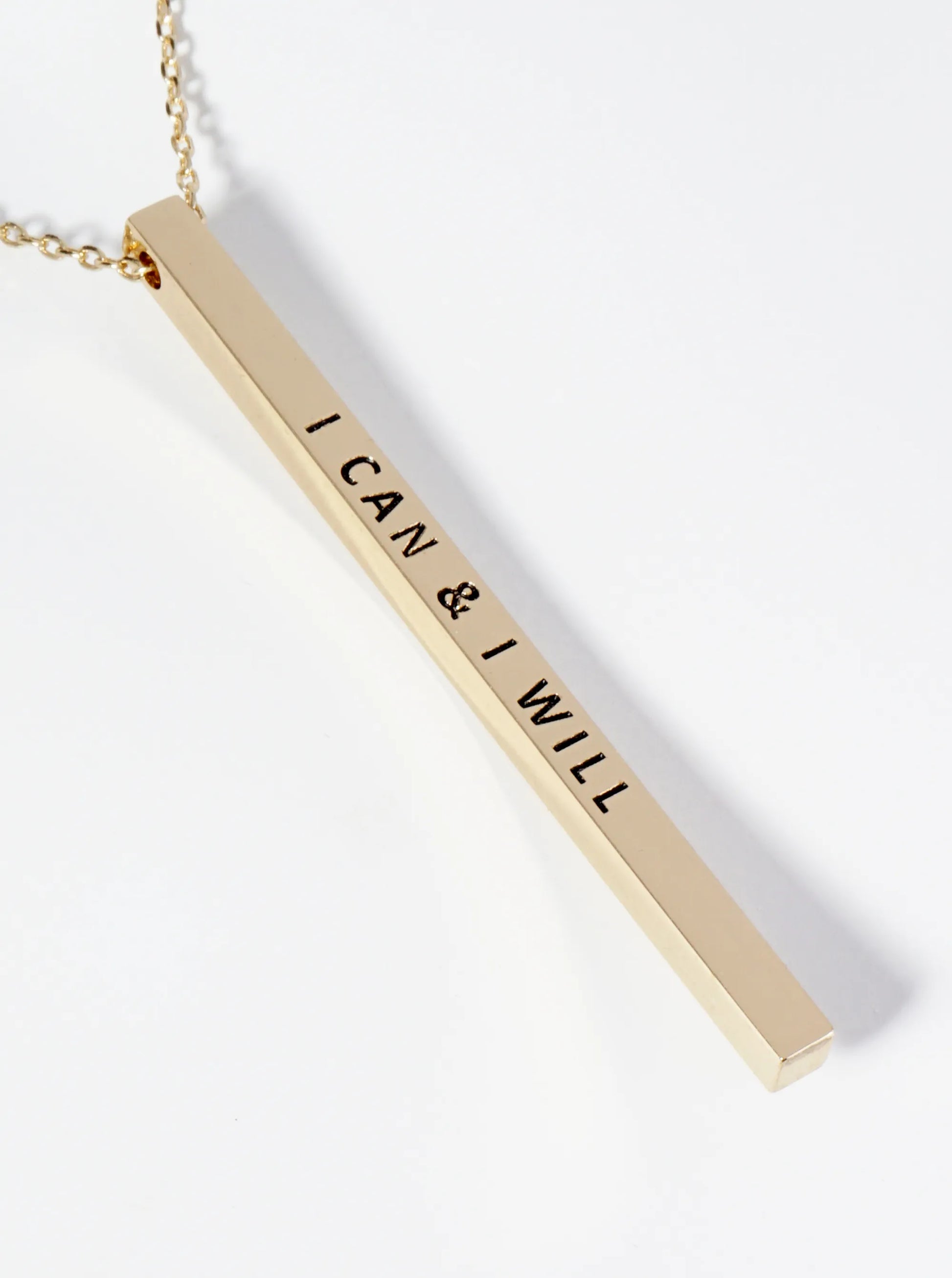 I Can And I Will Engraved Vertical Bar Pendant Inspirational Necklace