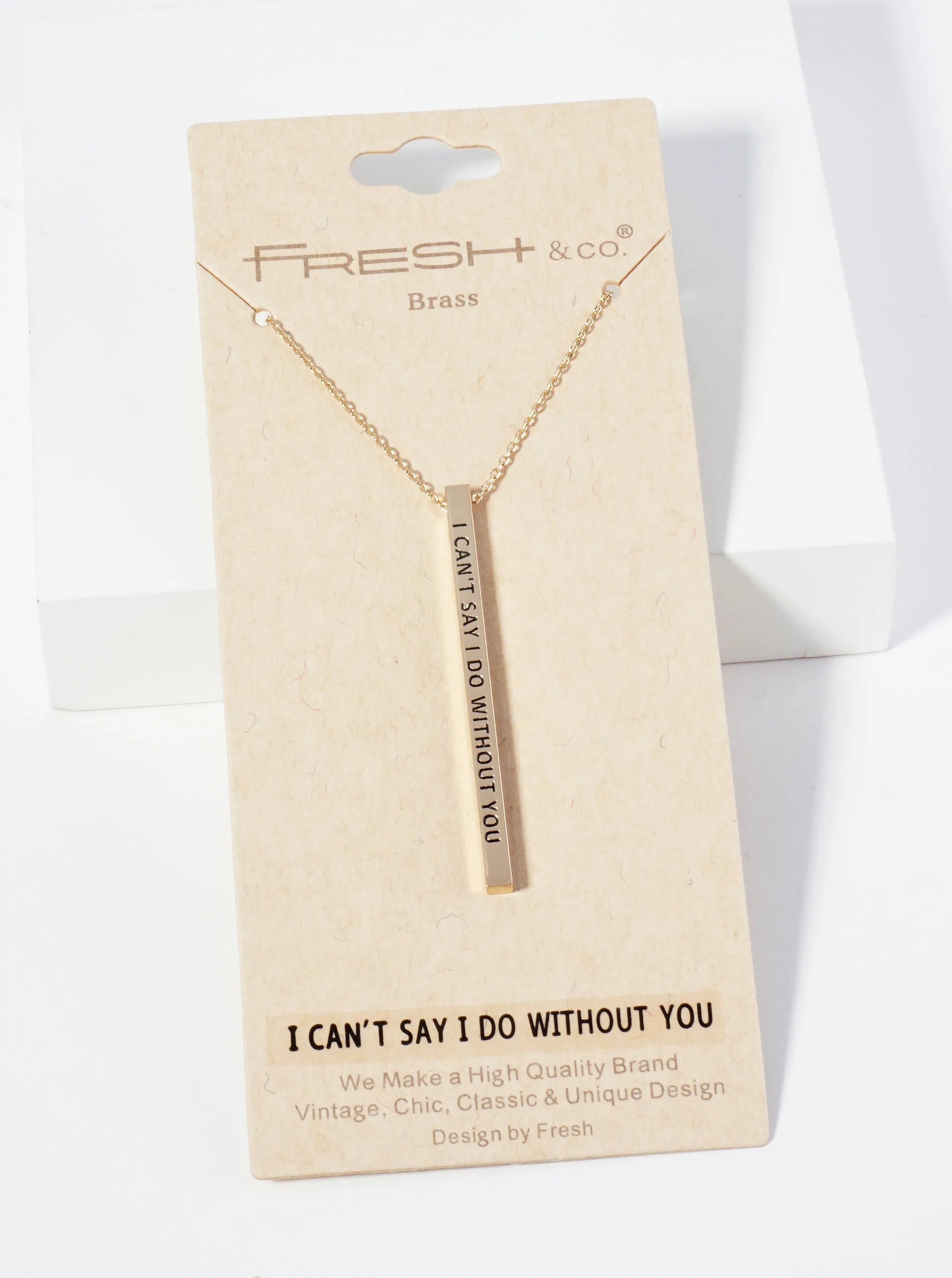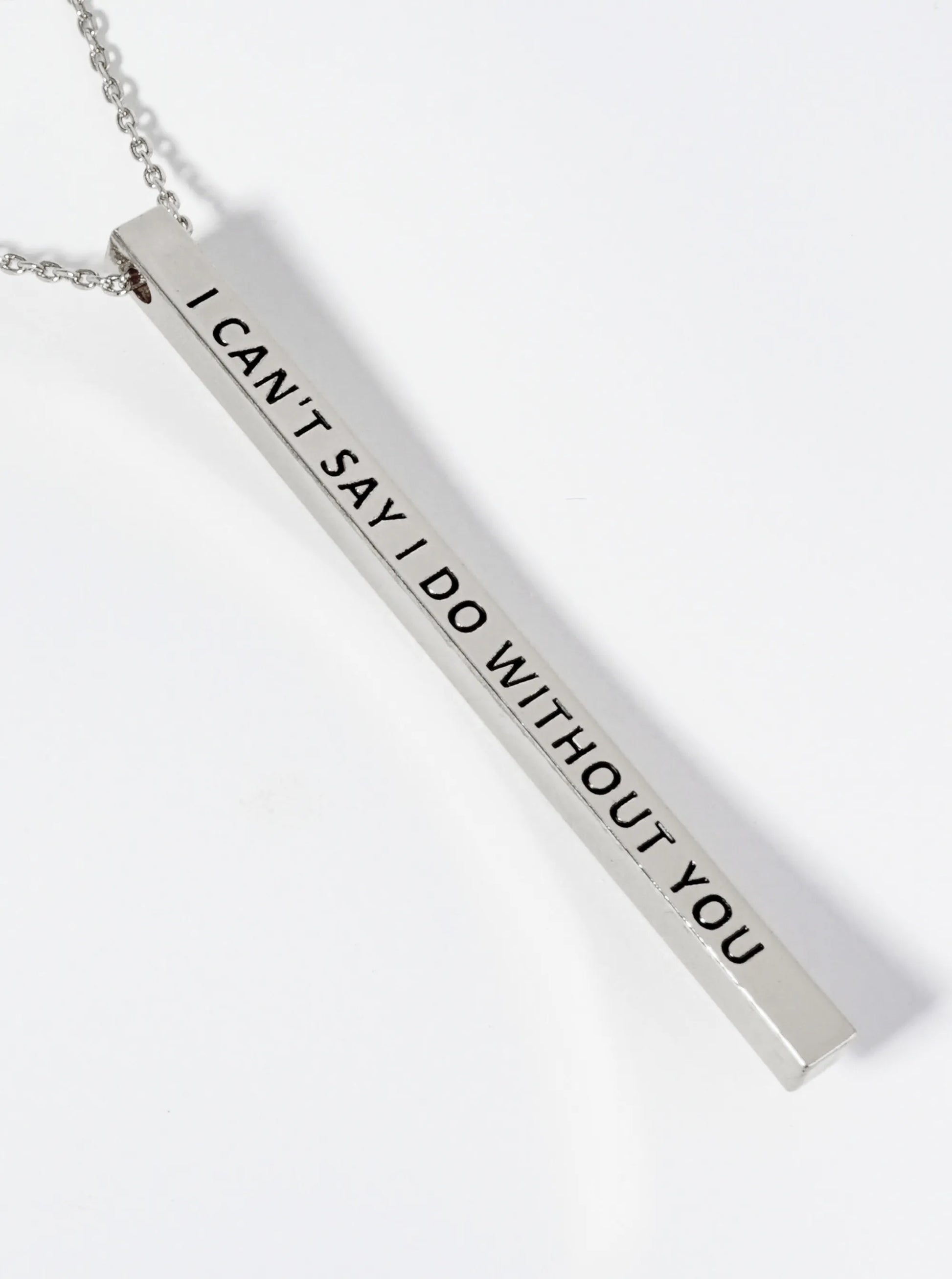 I Cant Say I Do Without You Engraved Vertical Bar Pendant Inspirational Necklace
