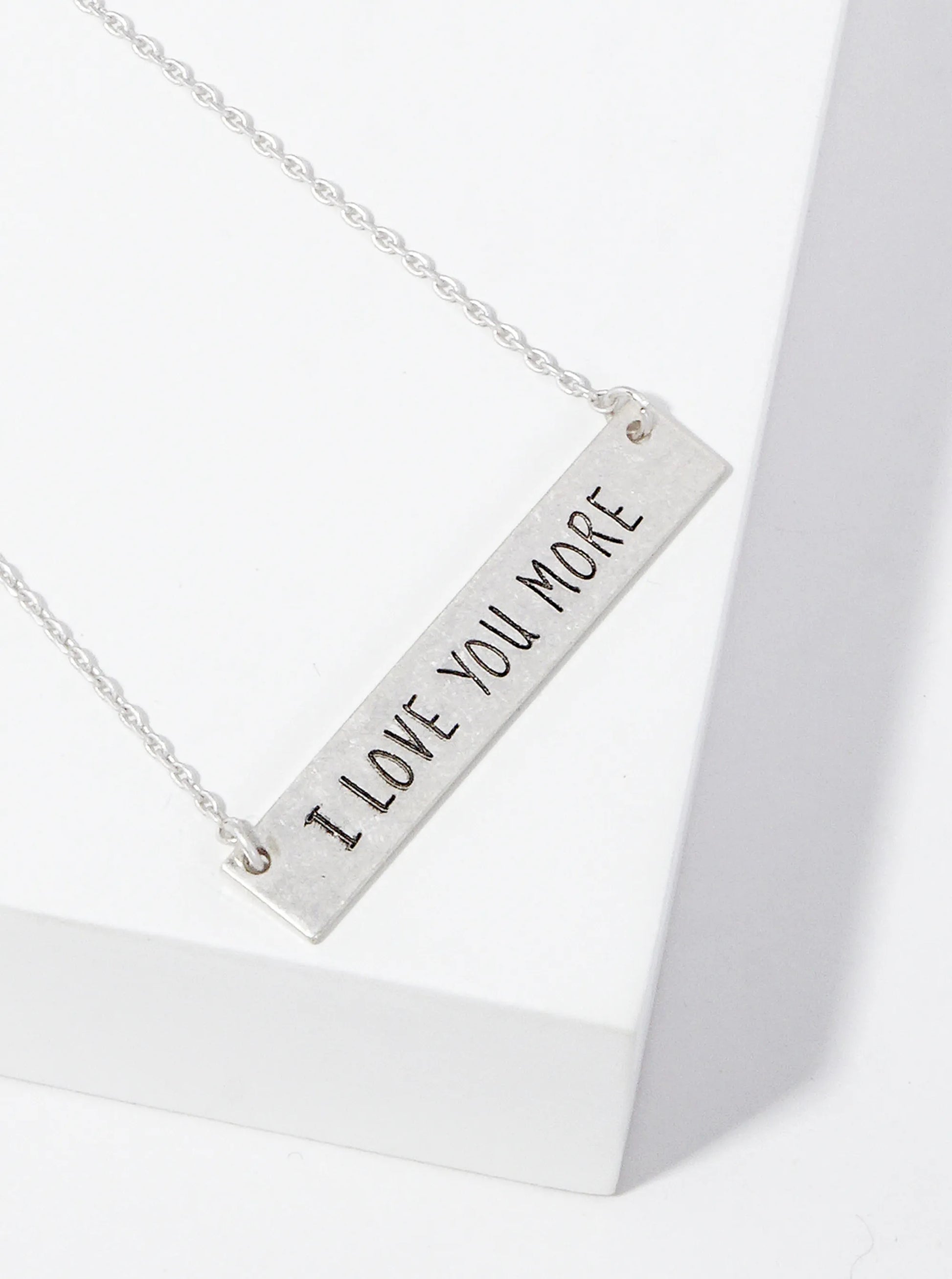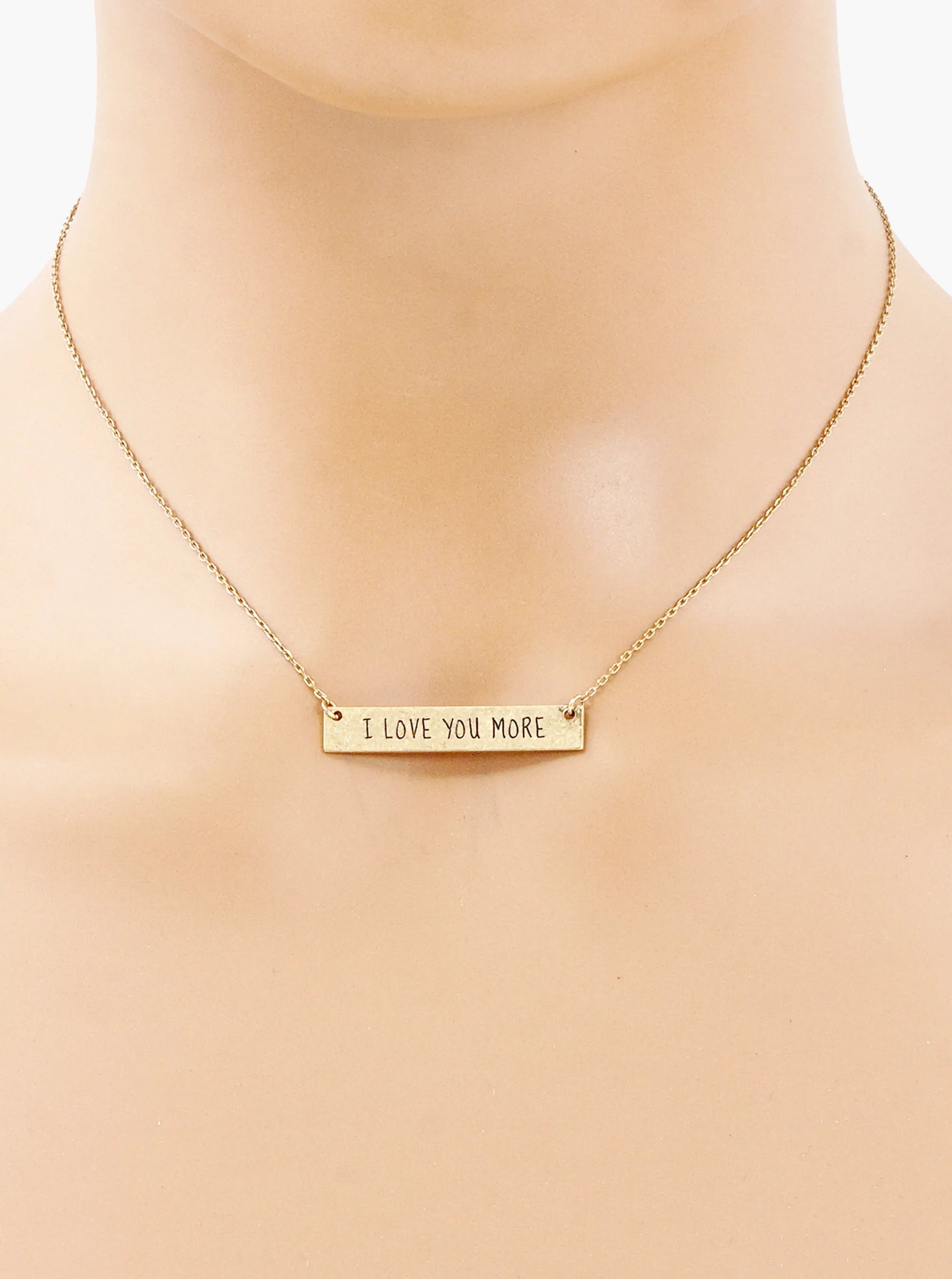 I Love You More Engraved Horizontal Bar Pendant Necklace
