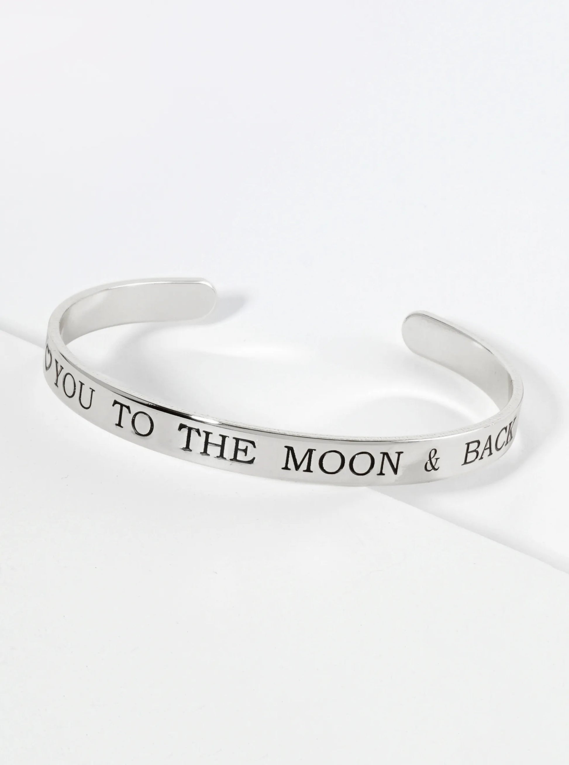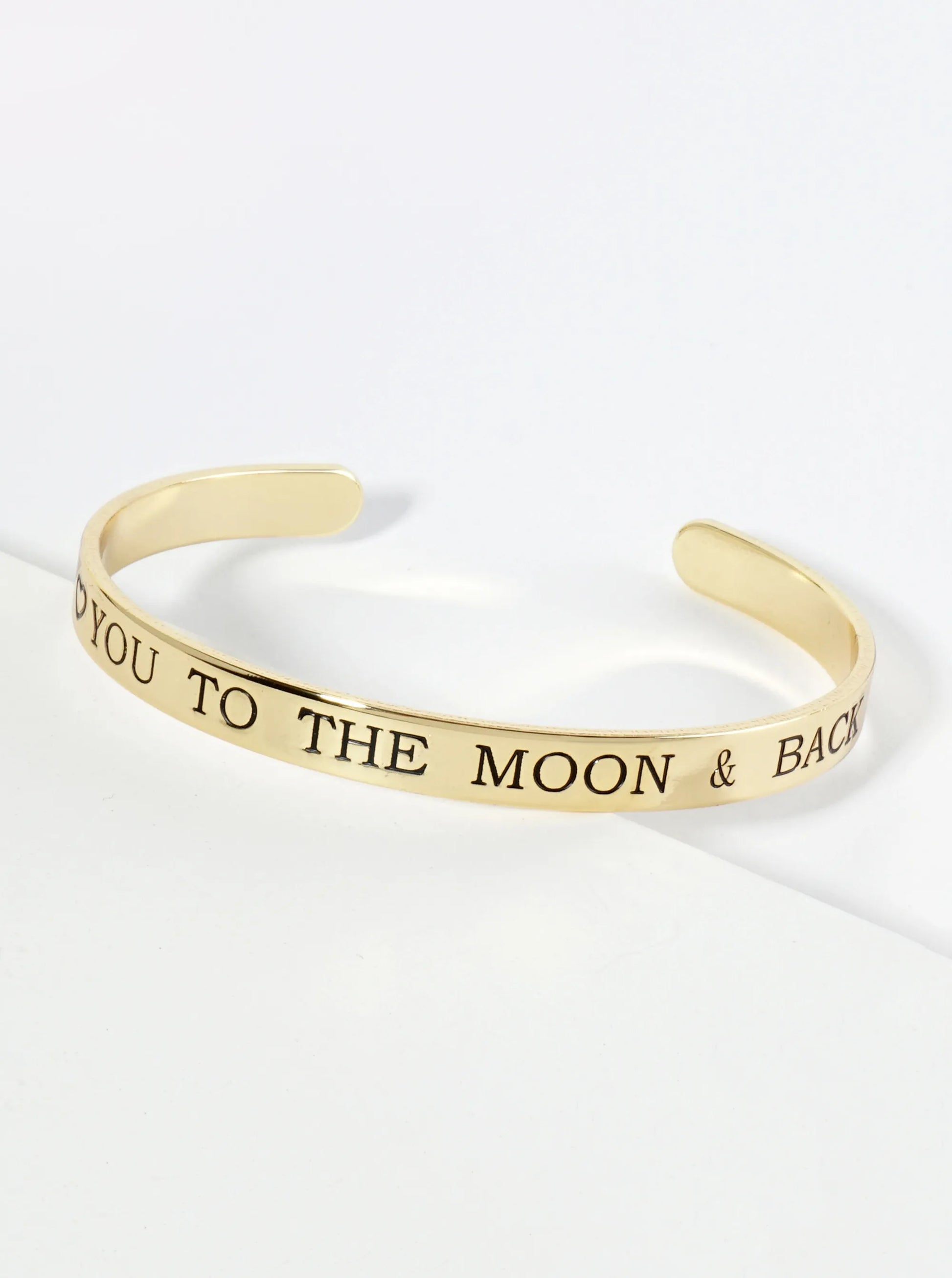 I Love You To The Moon And Back Engraved 18K Gold Dipped Open Cuff Bangle Bracelet
