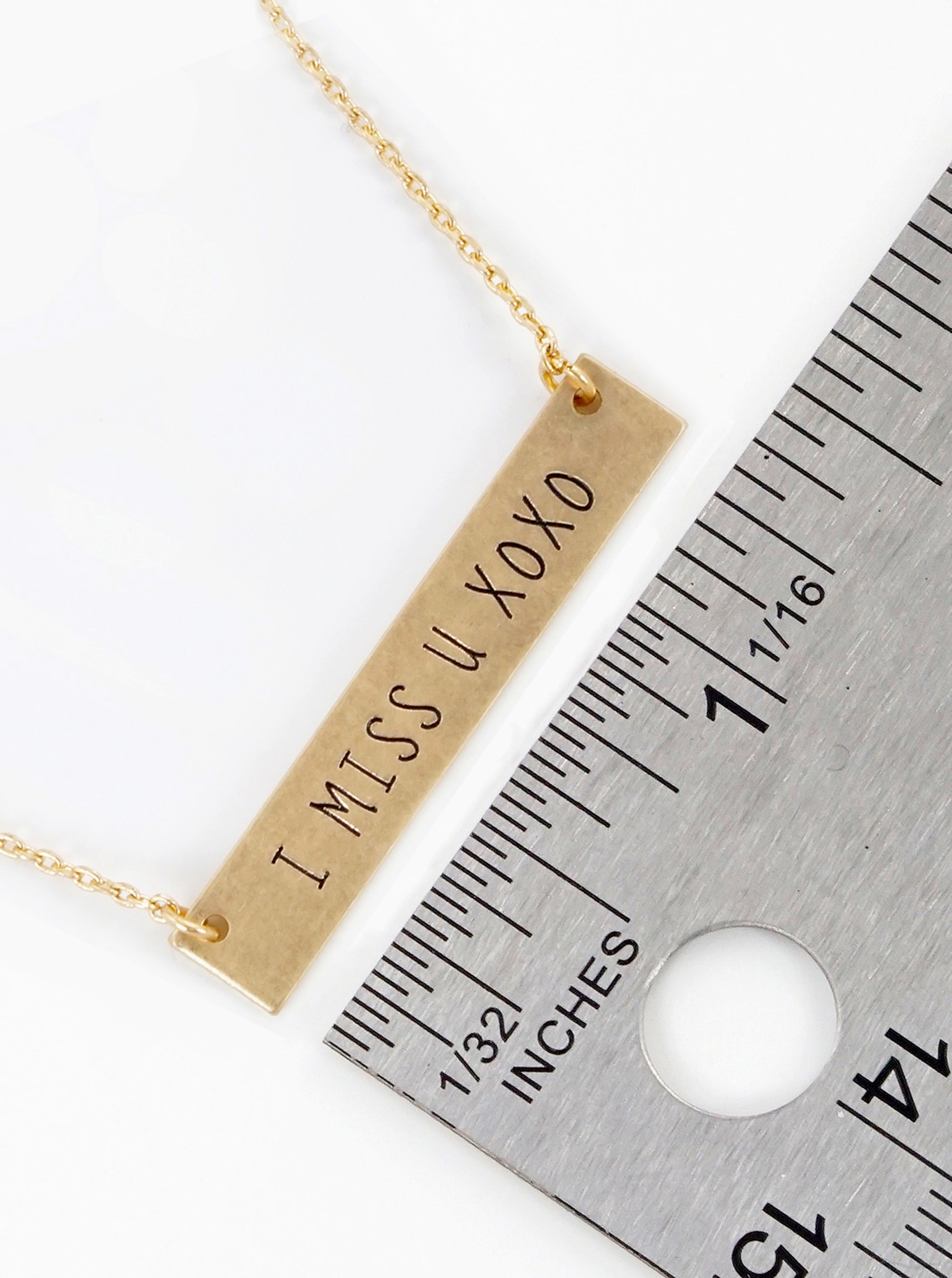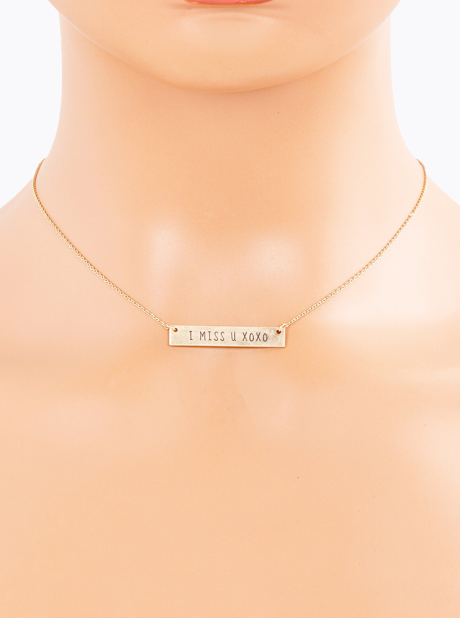 I Miss U Xoxo Engraved Horizontal Bar Pendant Necklace