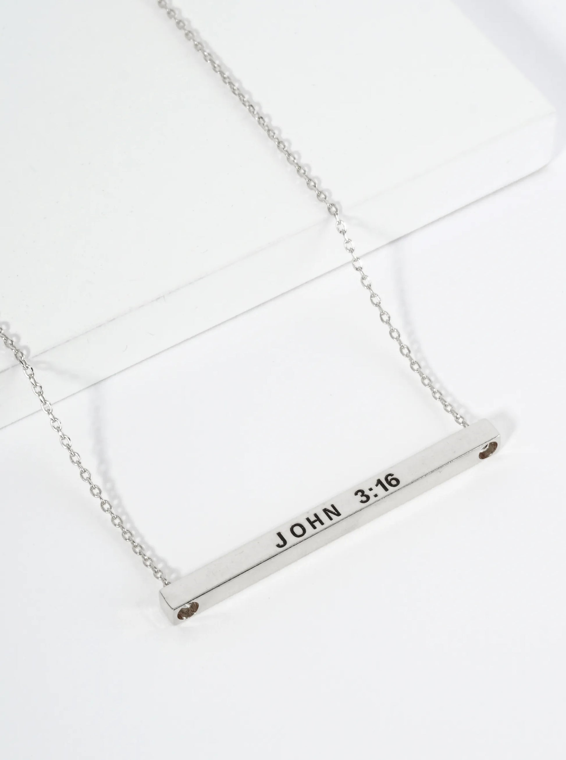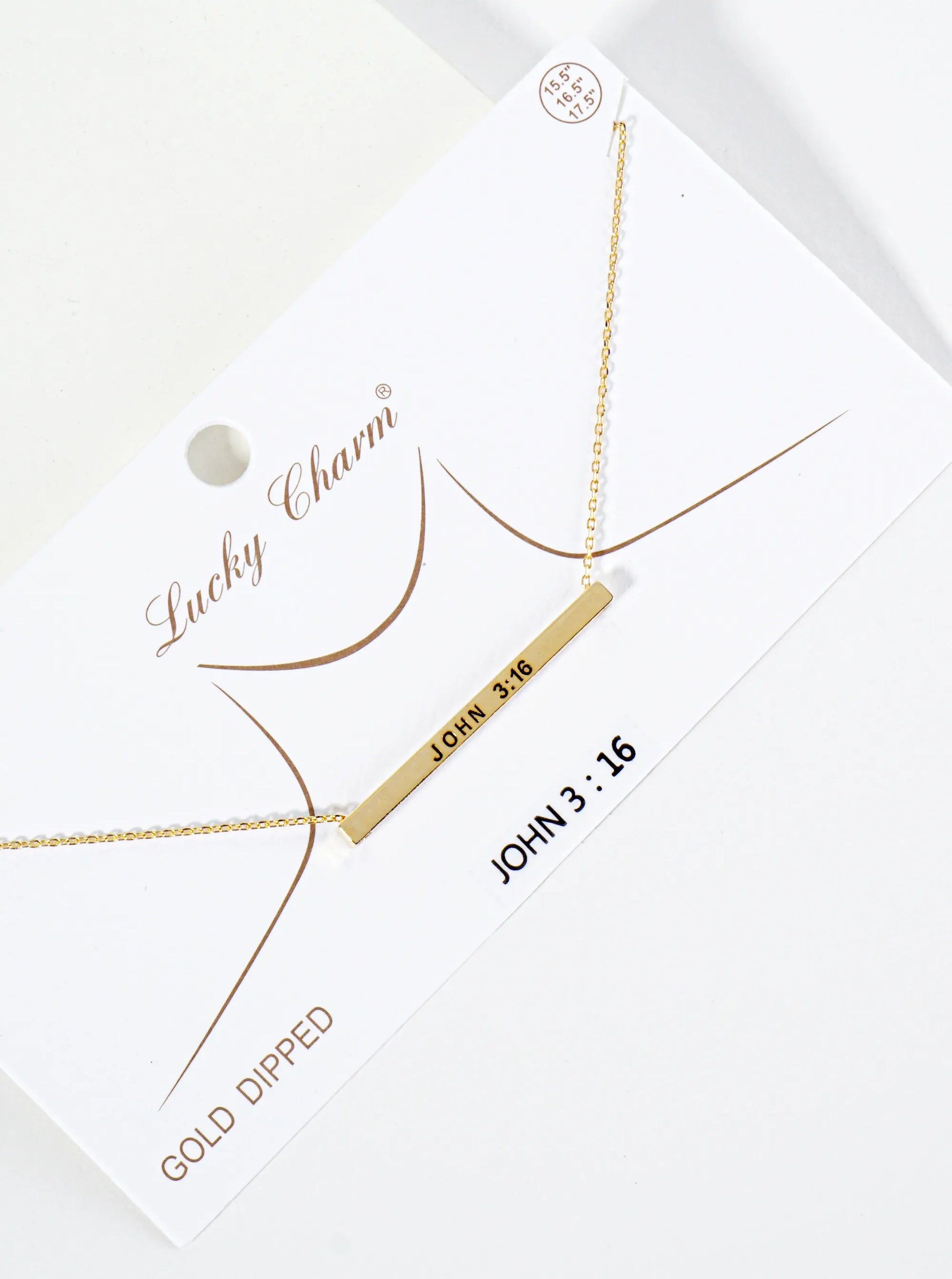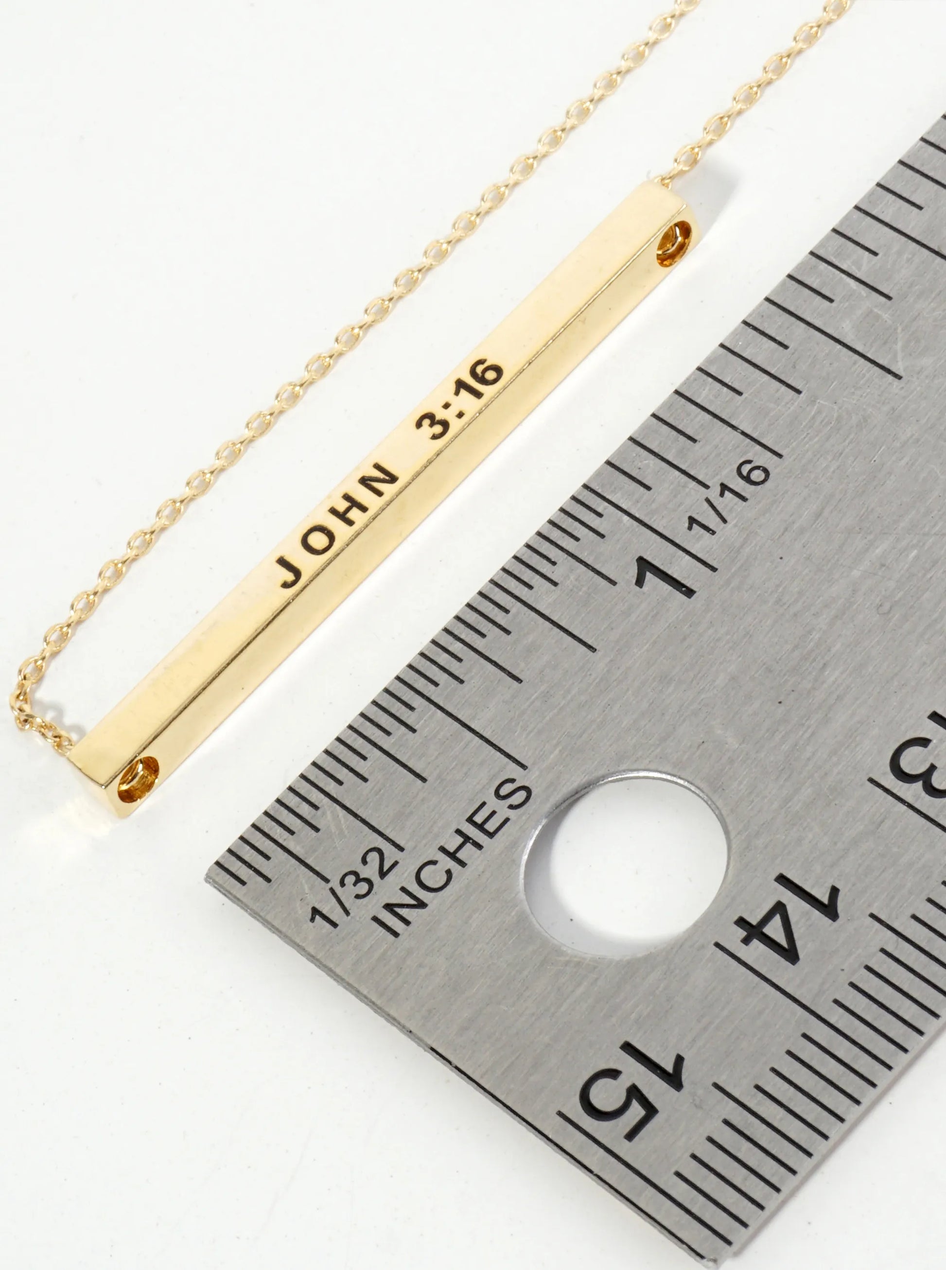 John 3 16 Engraved 18K Gold Dipped Horizontal Brass Bar Pendant Inspirational Necklace