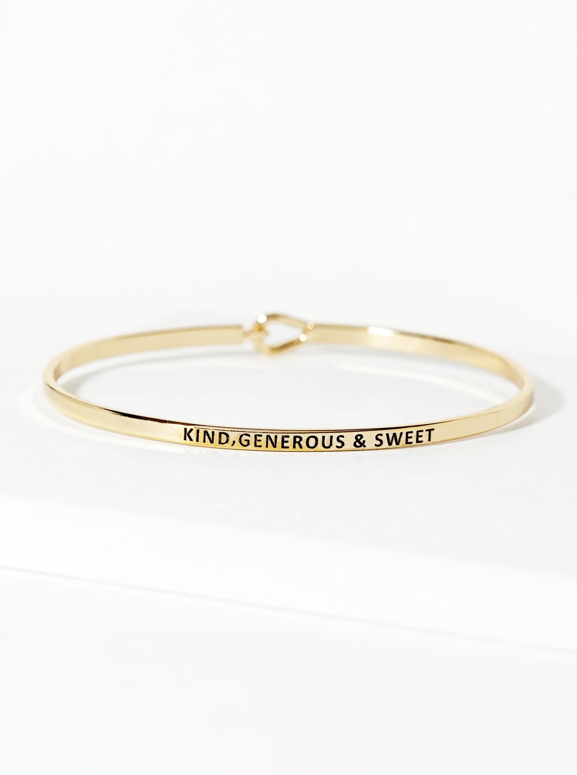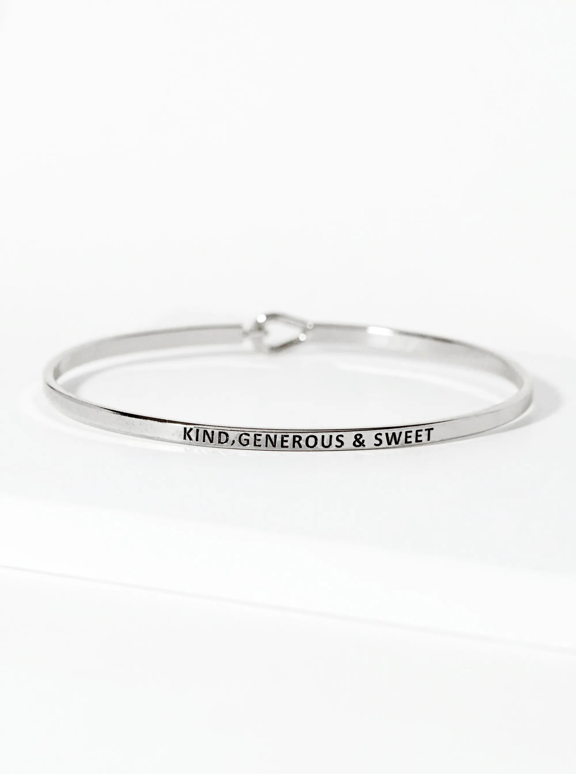 Kind Generous And Sweet Engraved Inspirational Bangle Bracelet
