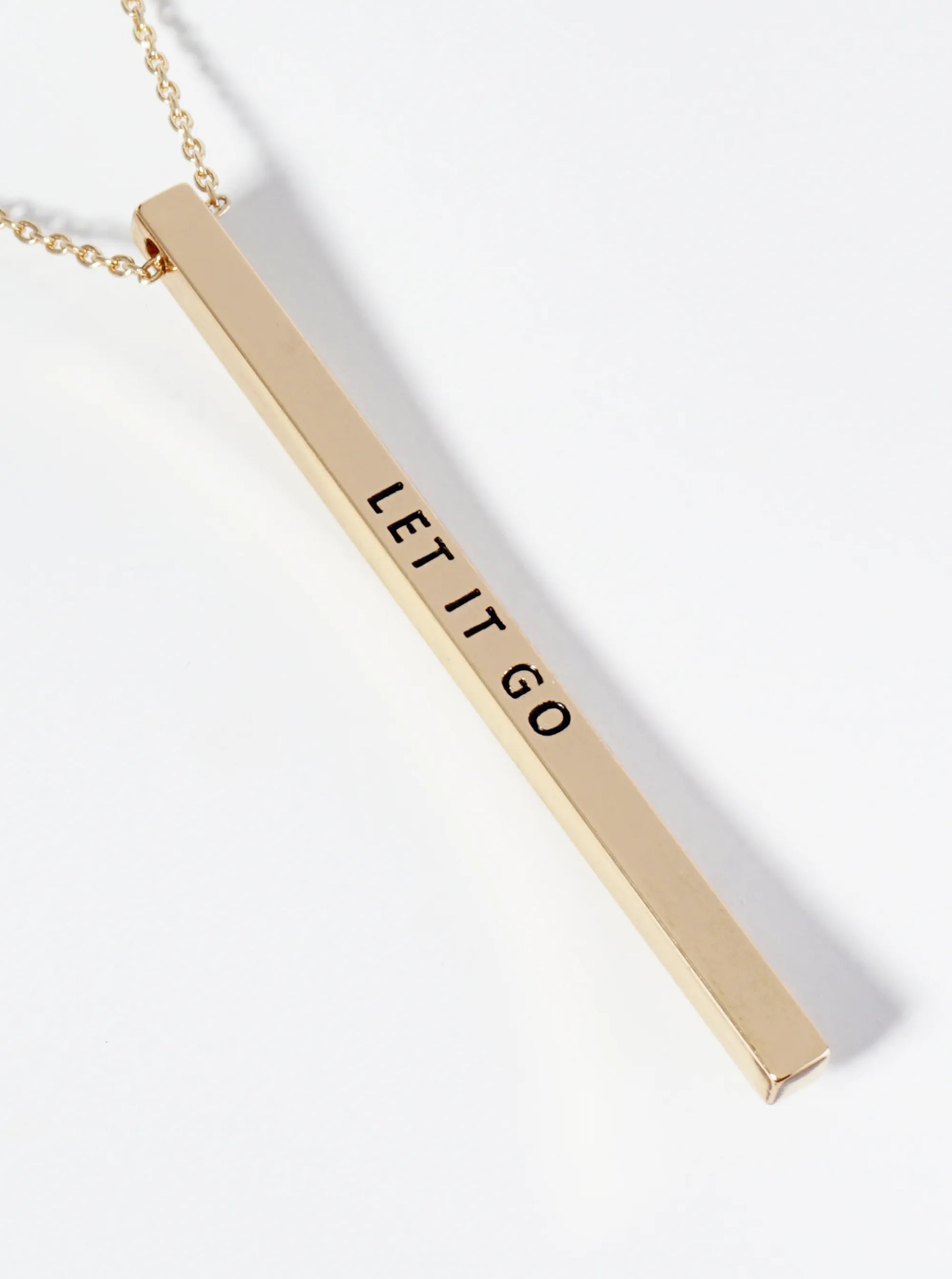 Let It Go Engraved Vertical Bar Pendant Inspirational Necklace