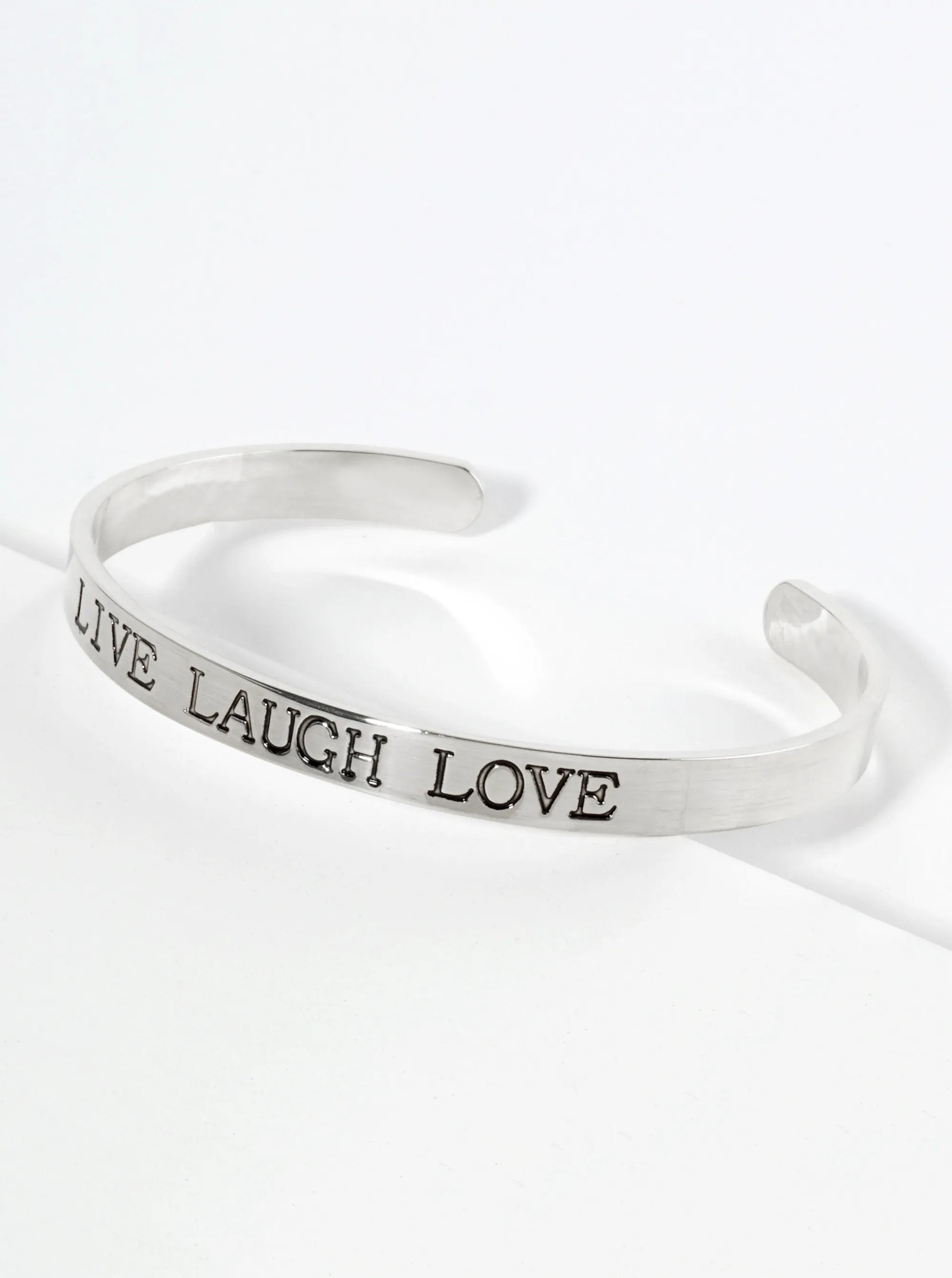 Live Laugh Love Engraved 18K Gold Dipped Open Cuff Bangle Bracelet