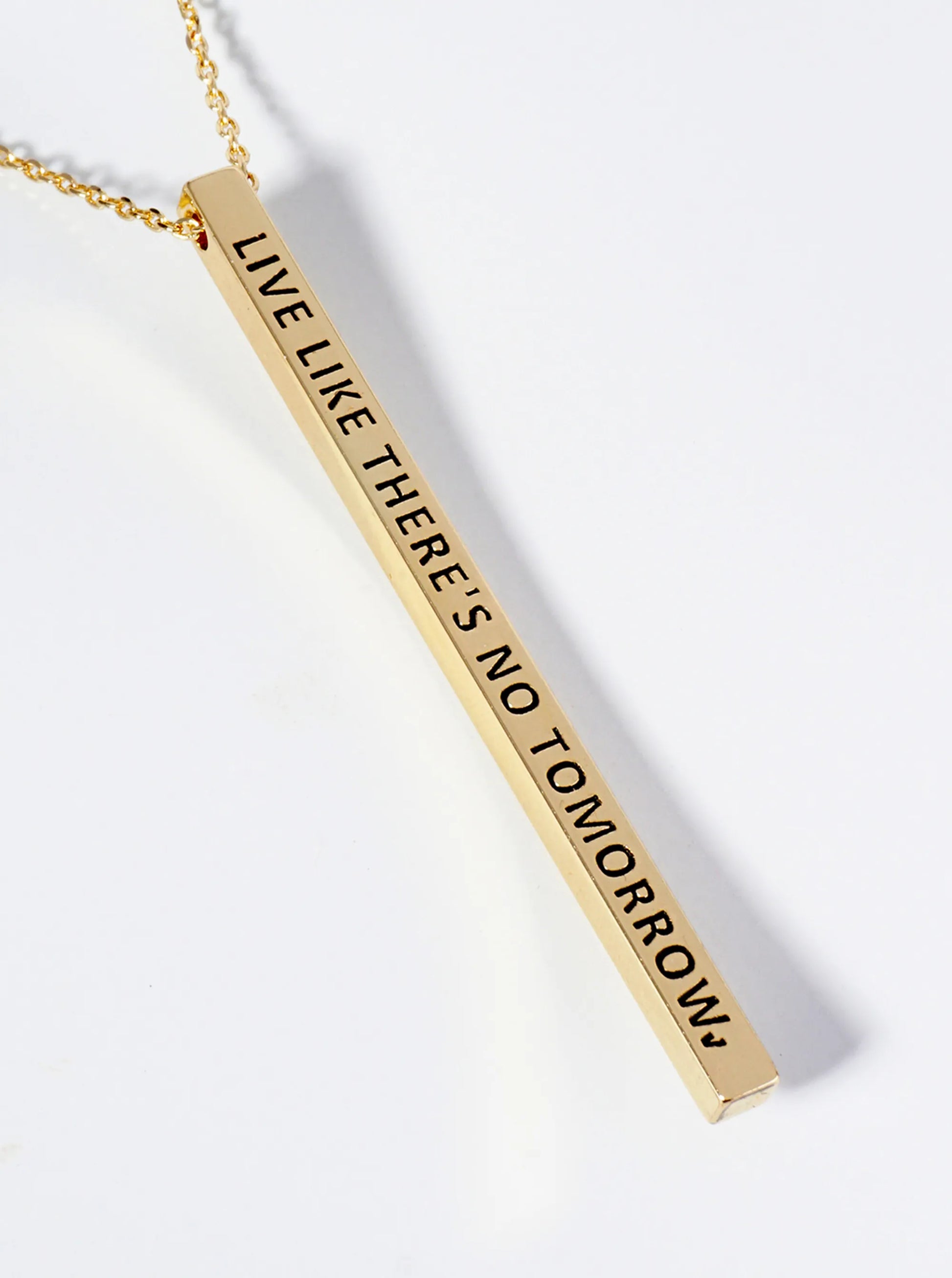 Live Like There Is No Tomorrow Engraved Vertical Bar Pendant Inspirational Necklace
