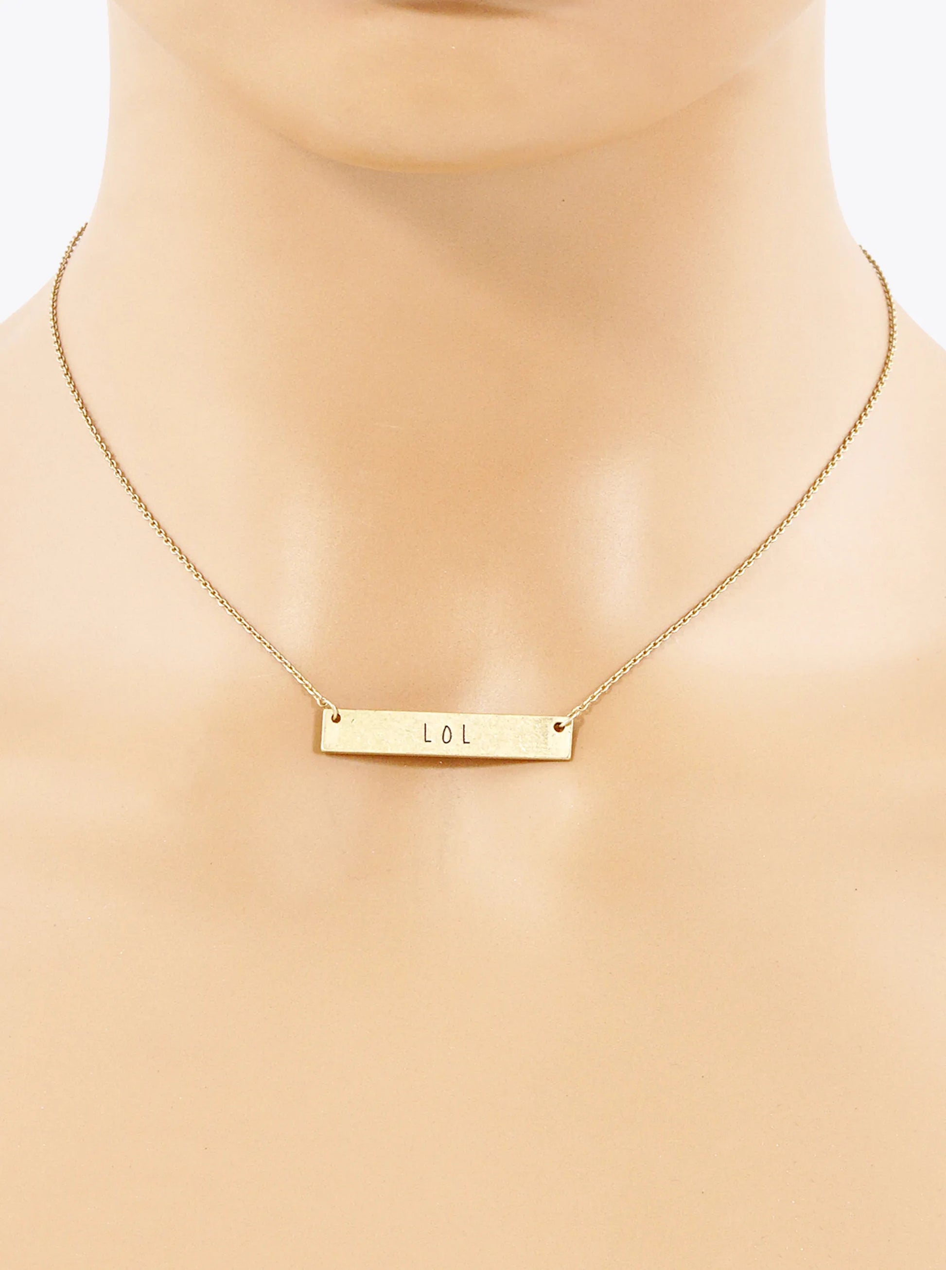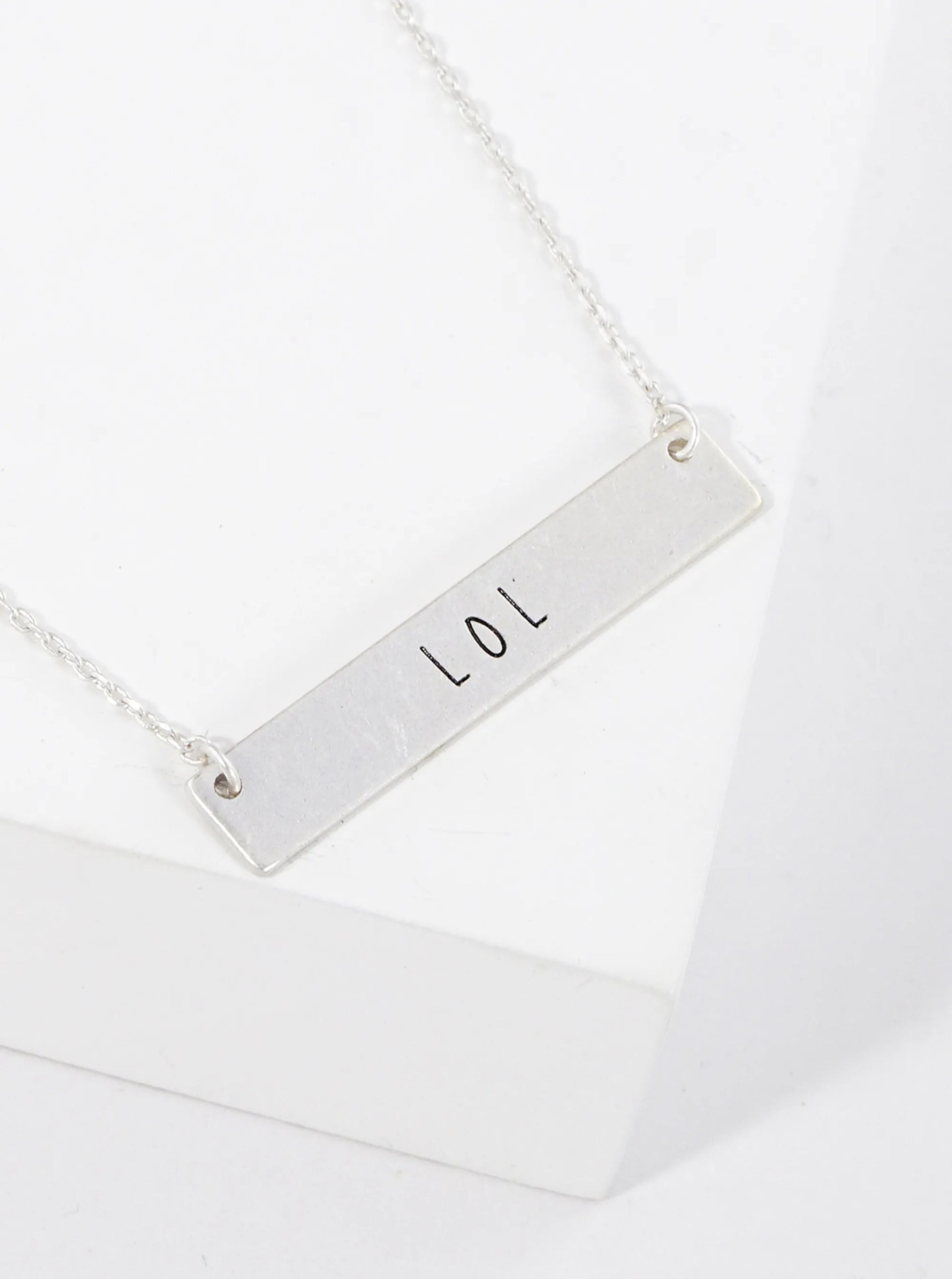 LOL Engraved Horizontal Bar Pendant Necklace