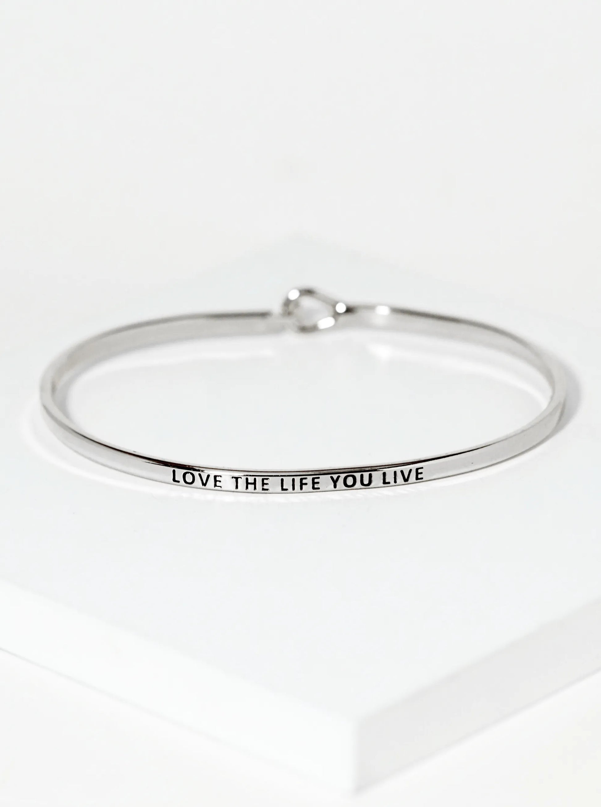 Love The Life You Live Engraved Inspirational Bangle Bracelet