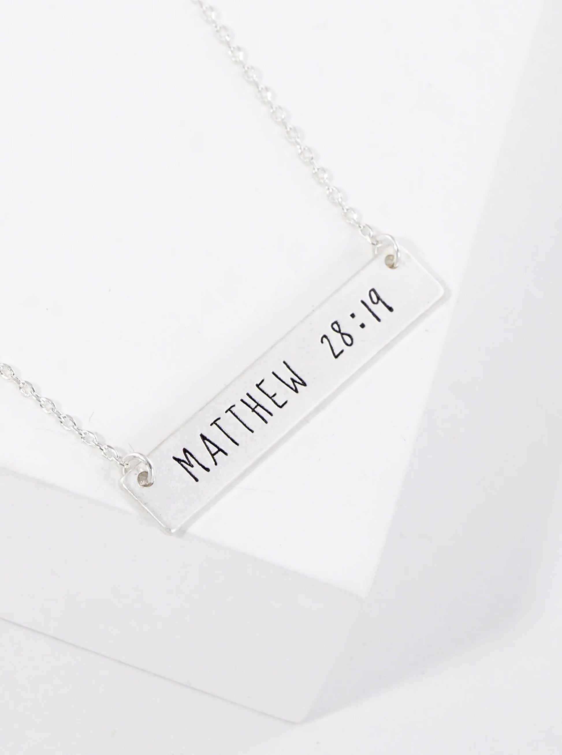 Matthew 28 19 Engraved Horizontal Bar Pendant Necklace