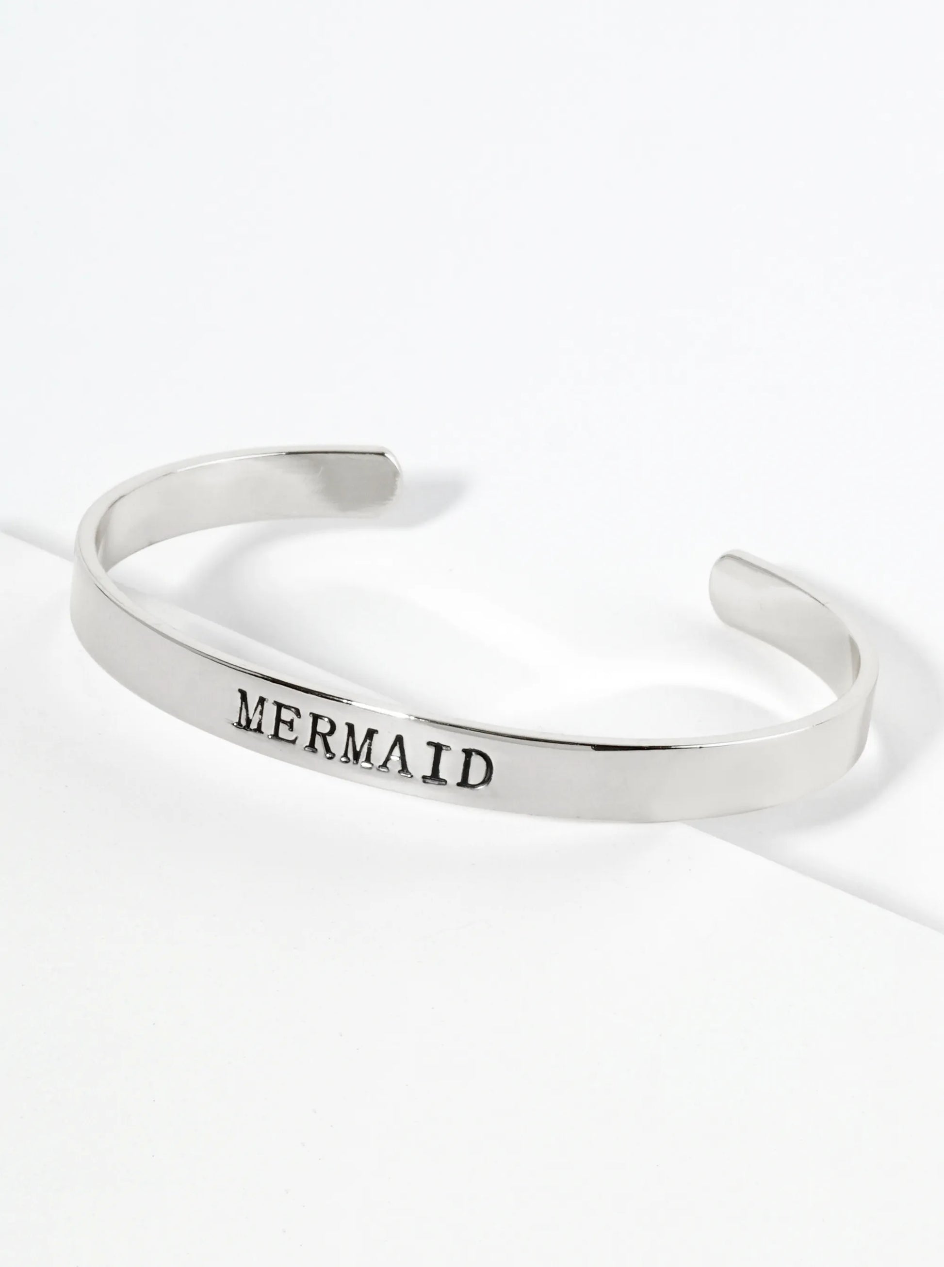 Mermaid Engraved 18K Gold Dipped Open Cuff Bangle Bracelet