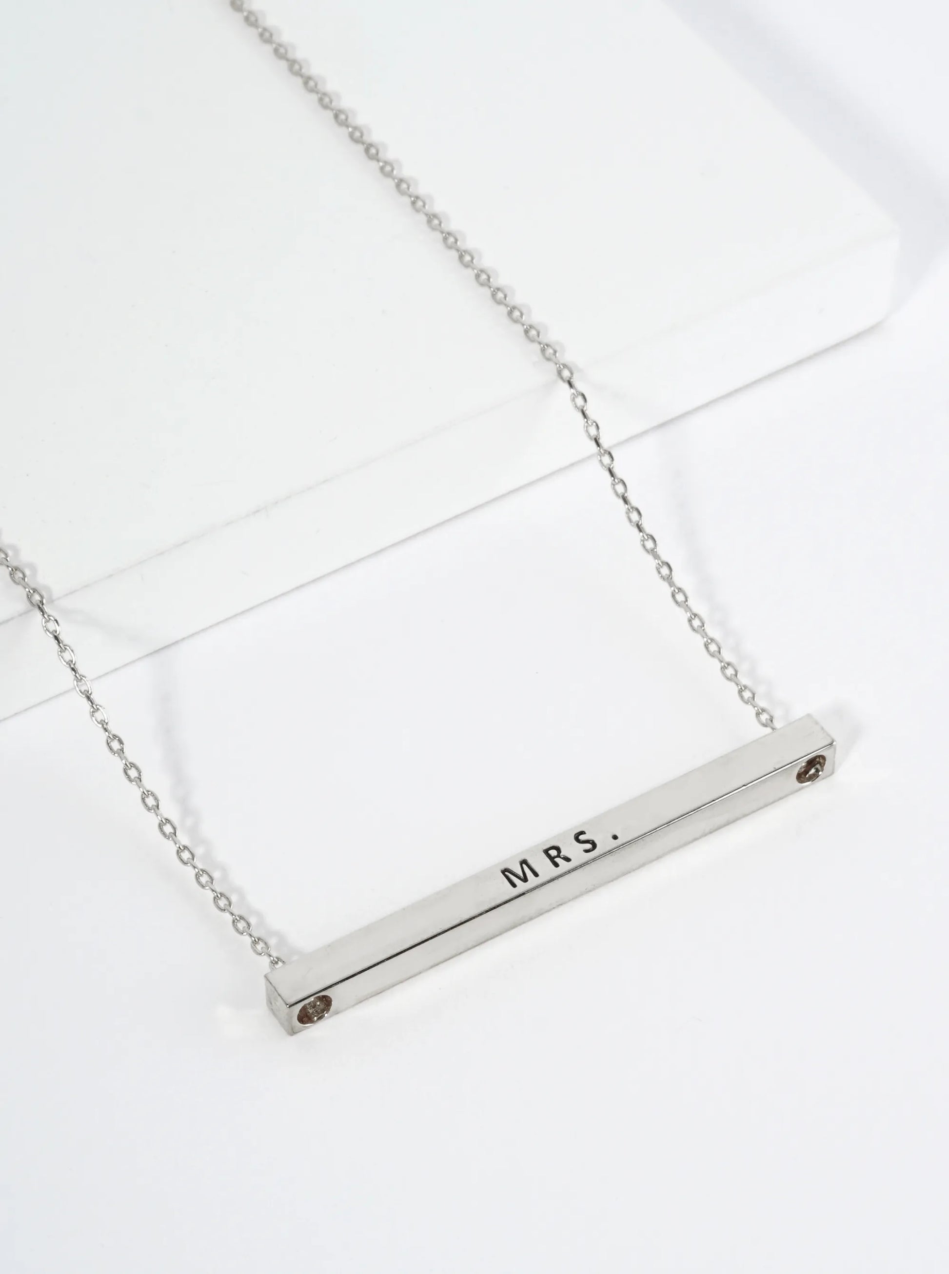 Mrs Engraved 18K Gold Dipped Horizontal Brass Bar Pendant Inspirational Necklace