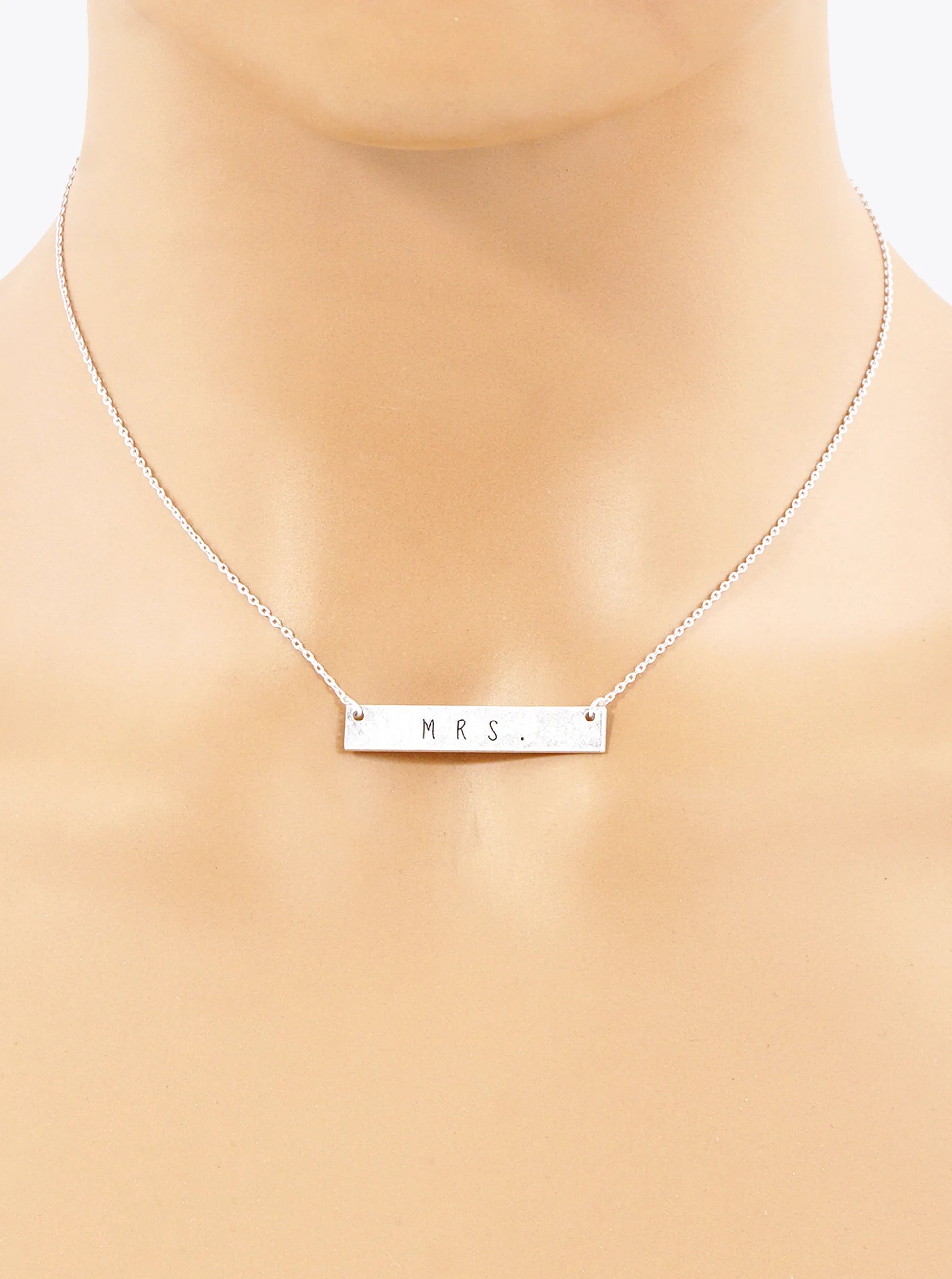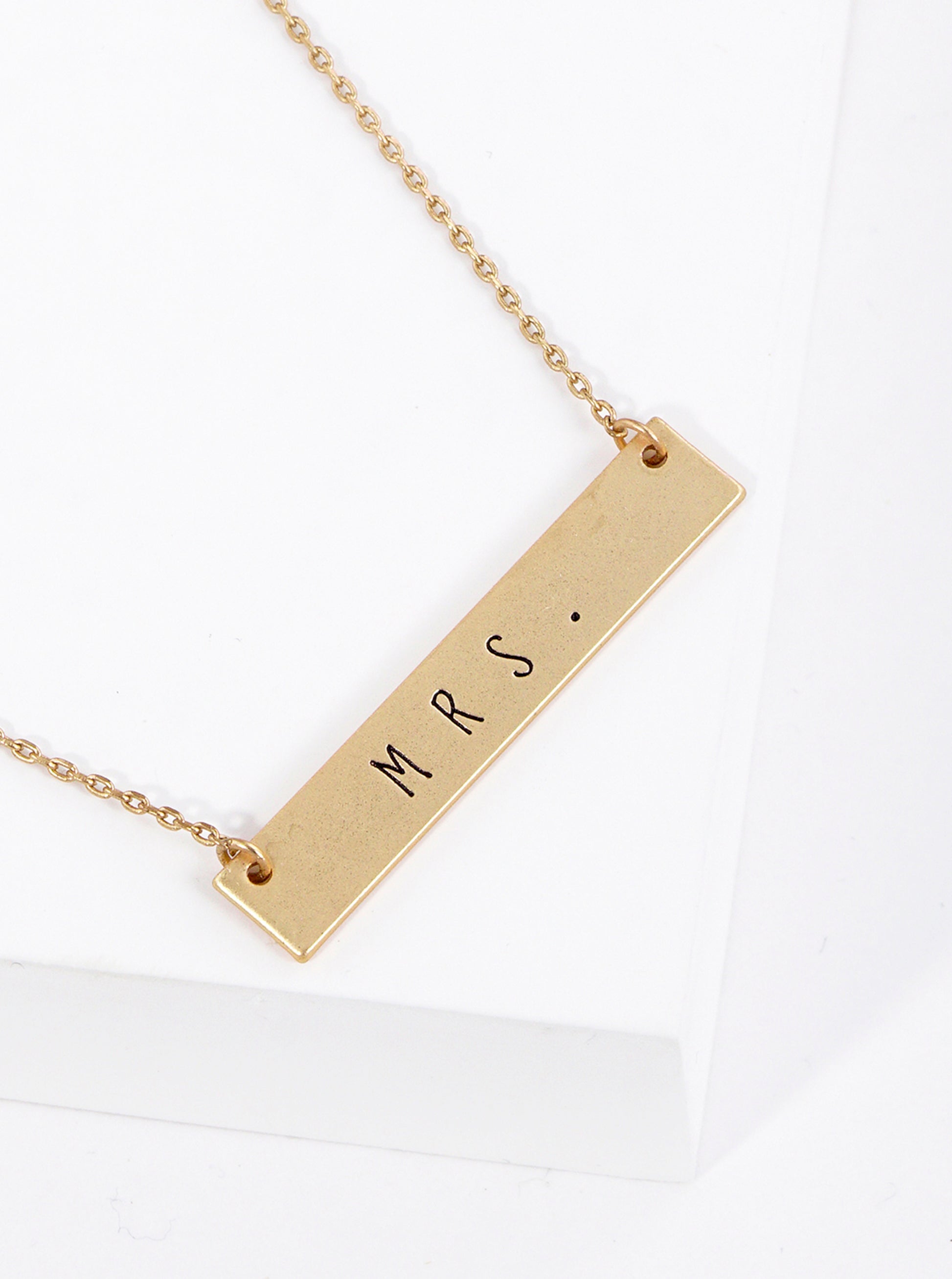 Mrs Engraved Horizontal Bar Pendant Necklace