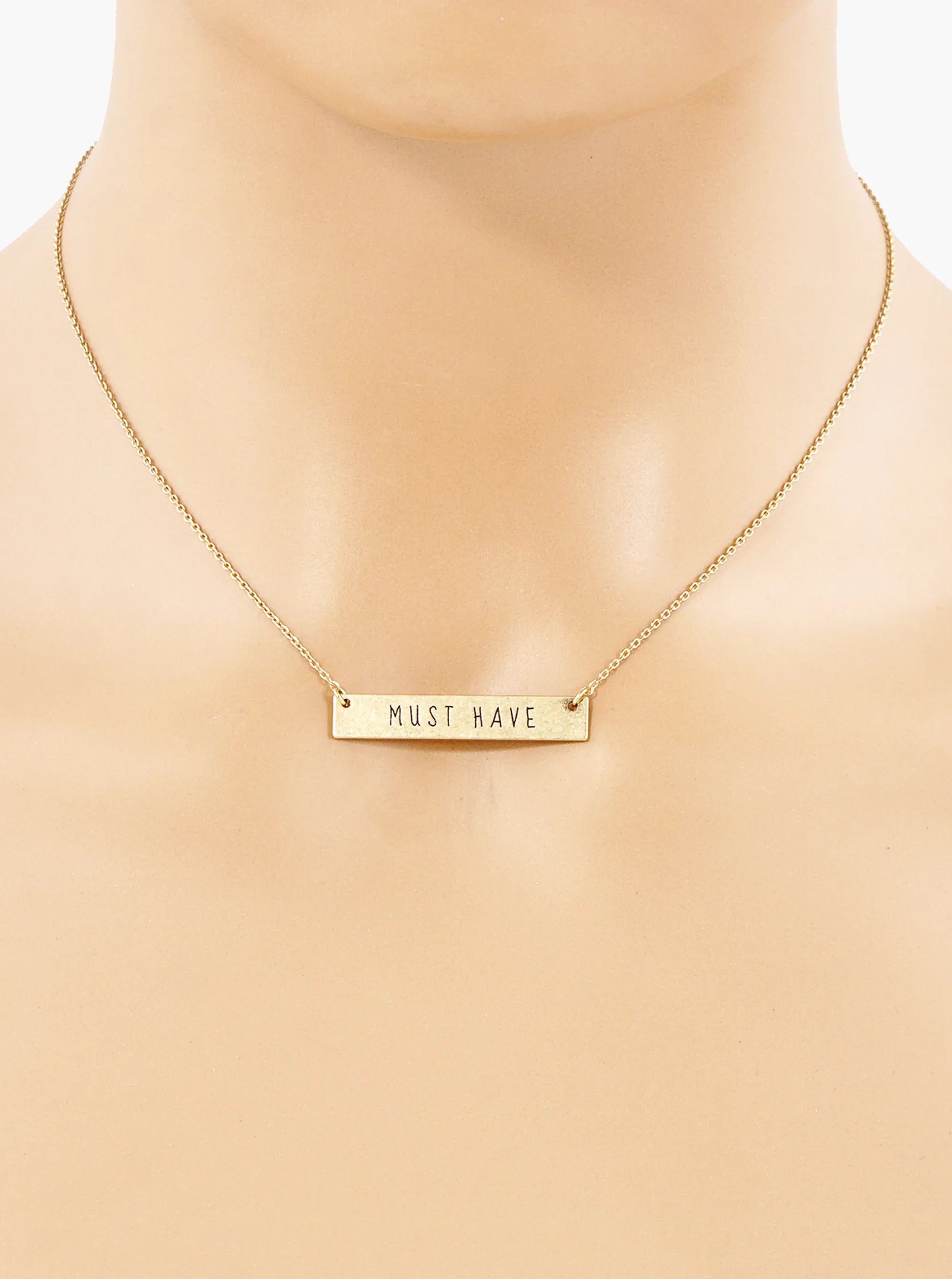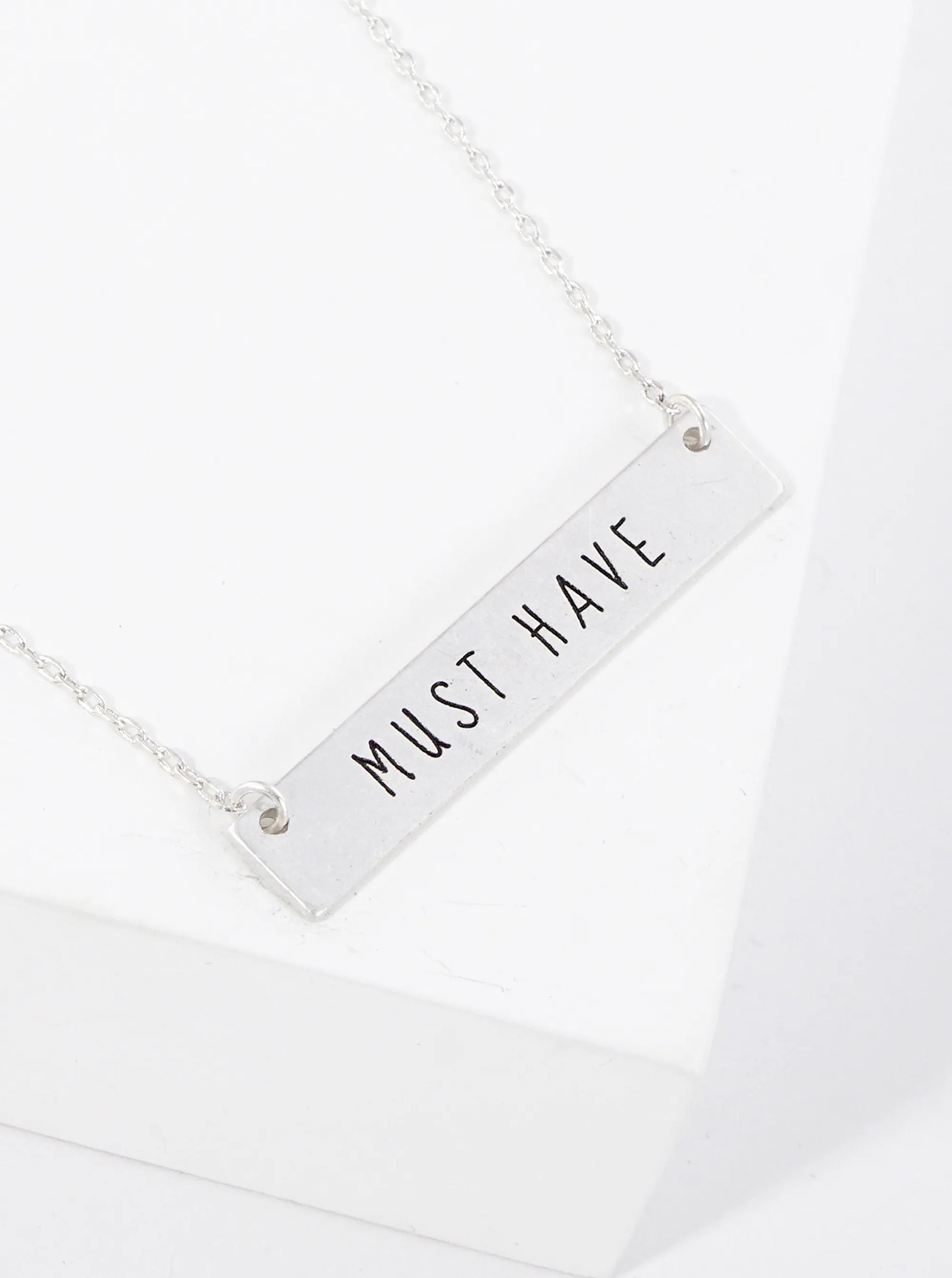Must Have Engraved Horizontal Bar Pendant Necklace