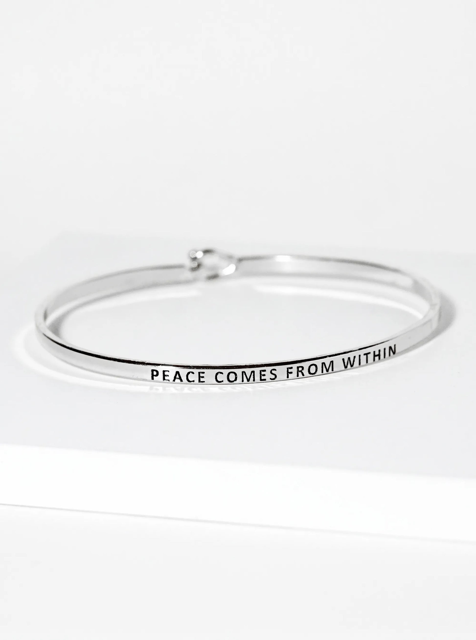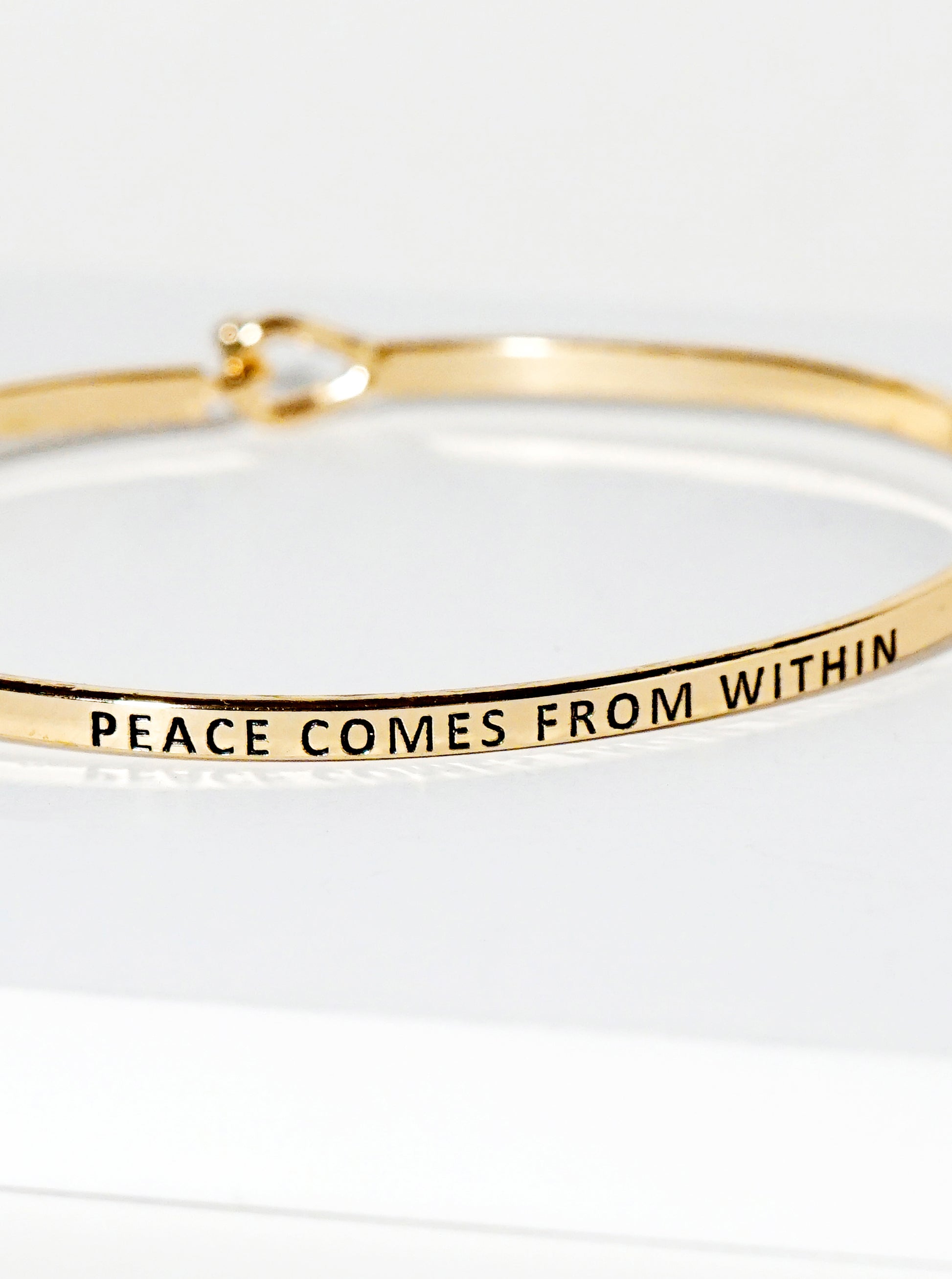 Peace Comes From Within Engraved Inspirational Bangle Bracelet