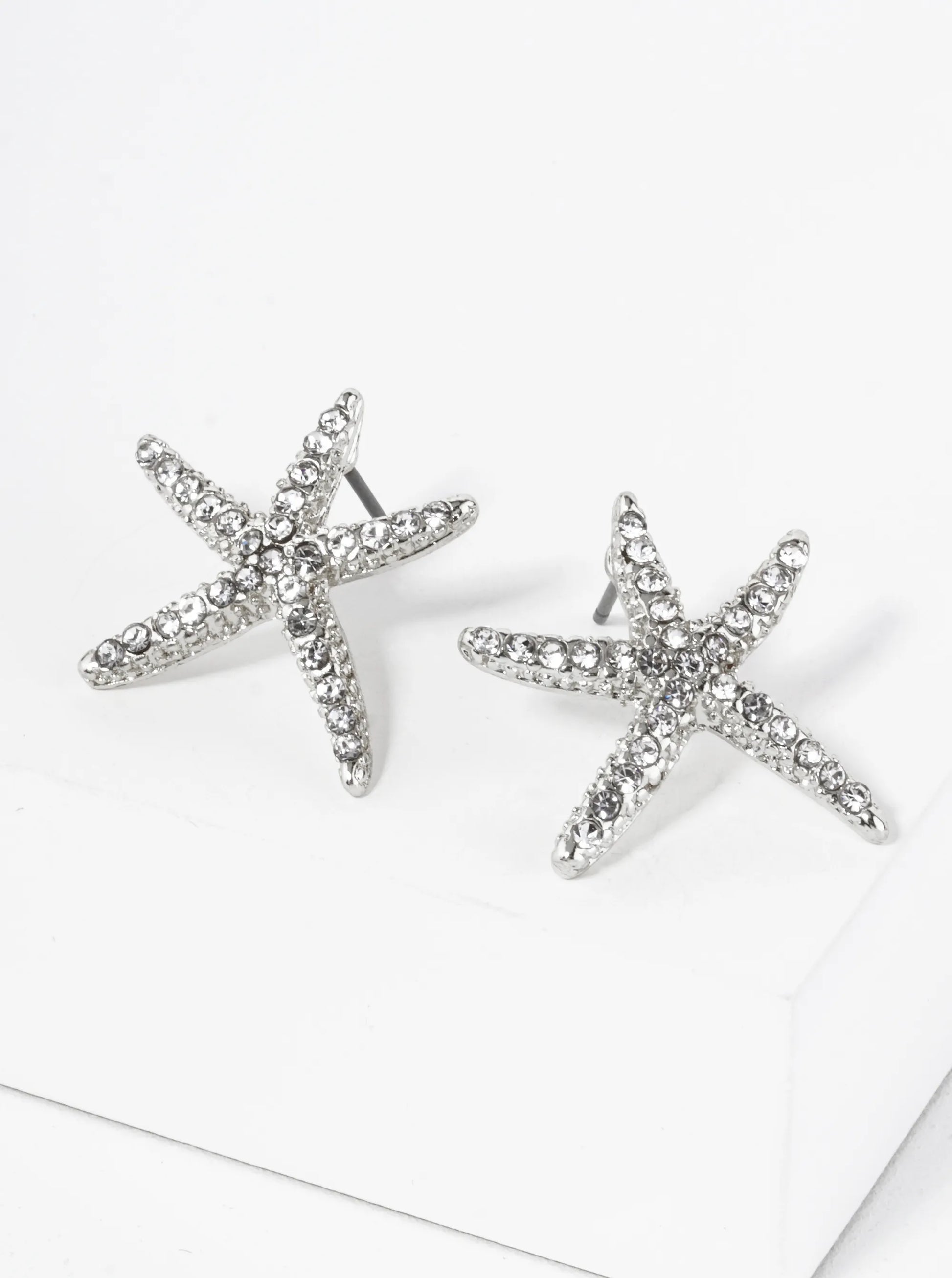 Pearl And Crystal Pave 20mm Starfish Stud Earrings