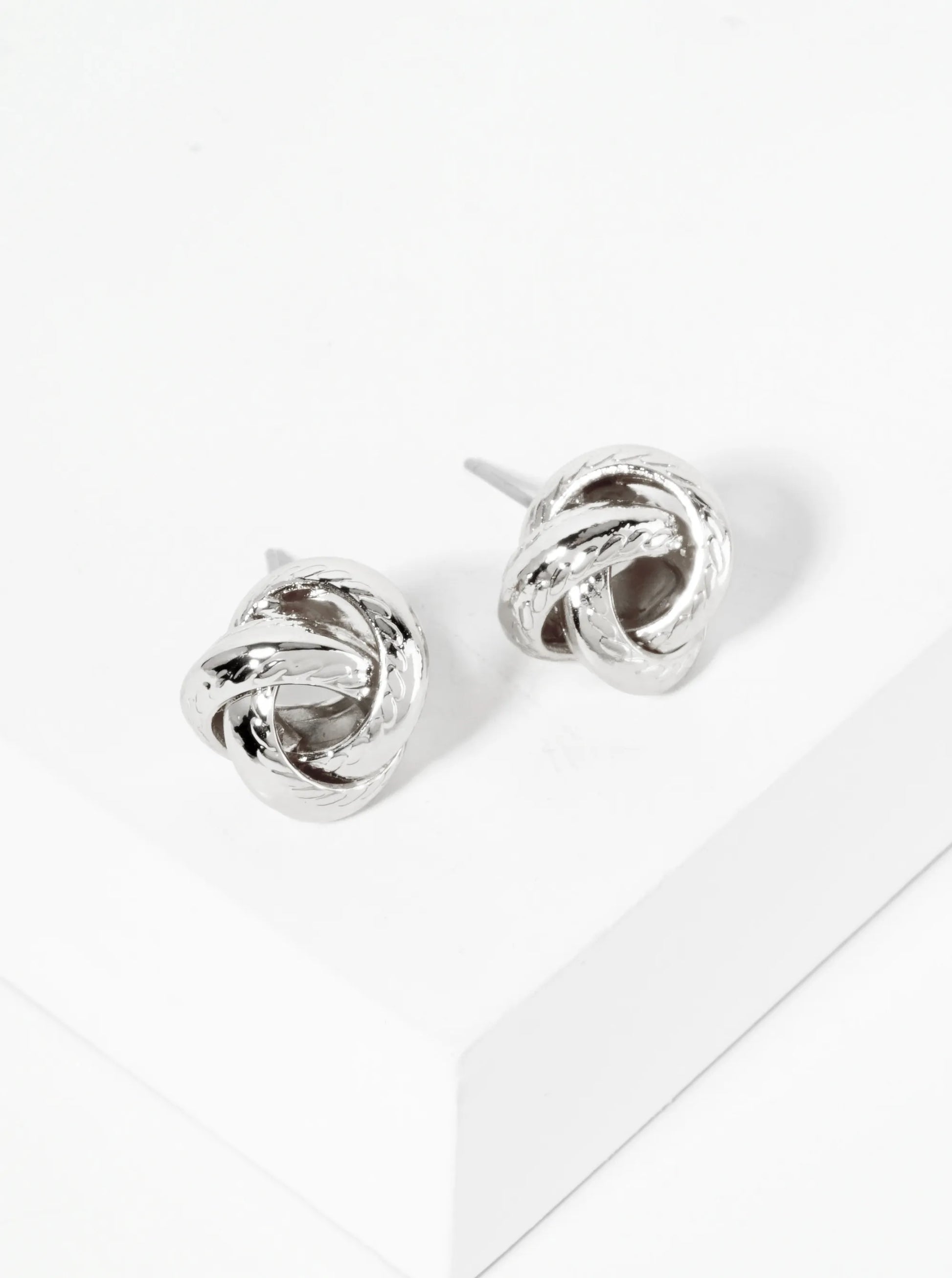 Polished Metal Textured 12mm Love Knot Stud Earrings