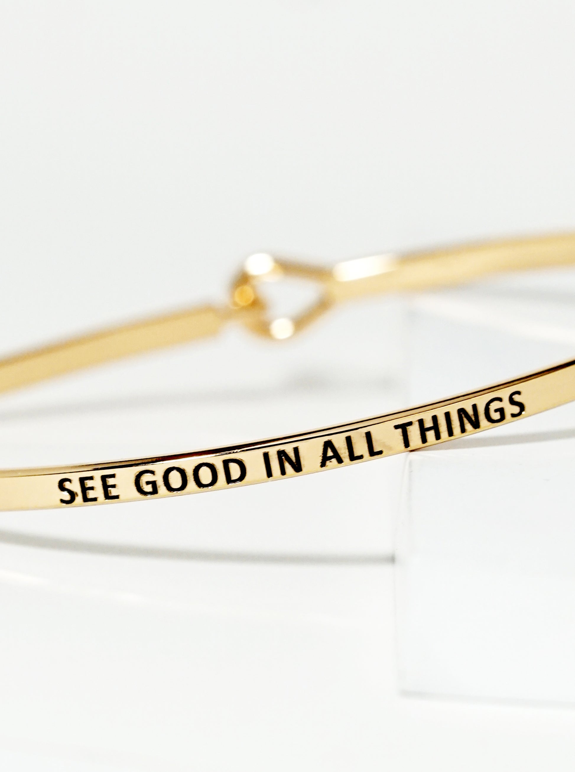 See Good In All Things Engraved Inspirational Bangle Bracelet