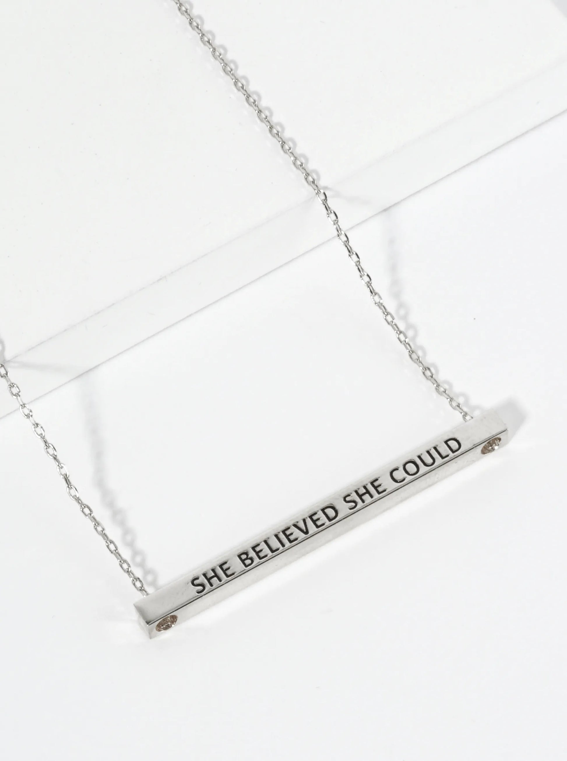 She Believed She Could Engraved 18K Gold Dipped Horizontal Brass Bar Pendant Inspirational Necklace
