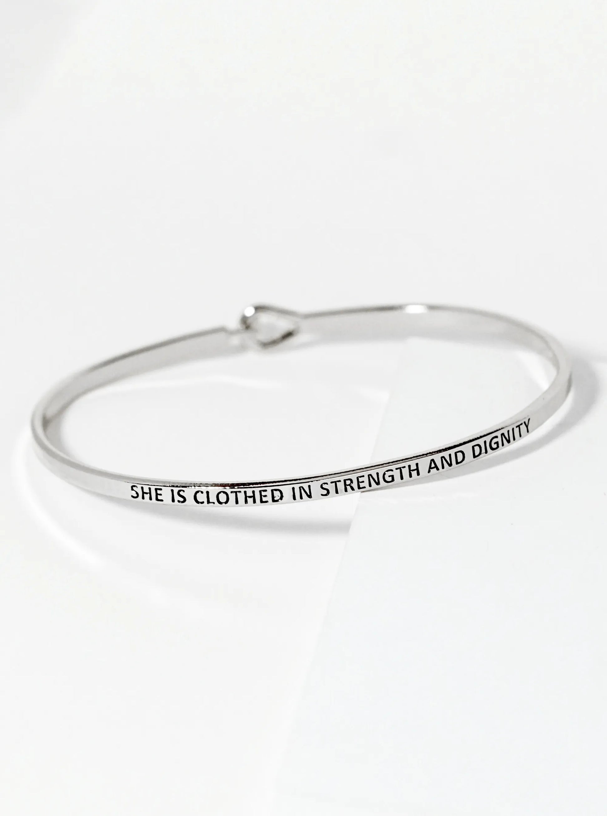 She Is Clothed In Strength And Dignity Engraved Inspirational Bangle Bracelet
